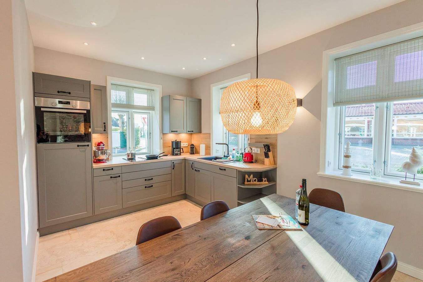 Der exklusive Hausteil 2 im Lokelk Lunhüs wurde in den Jahren 2023/2024 aufwendig renoviert und saniert und verfügt über 3 Schlafzimmer und 2 Bäder und bietet somit komfortabel Platz für bis zu 6 Personen zuzüglich einer Kleinkinderaufbettung. Auch ein Hund ist hier herzlich willkommen. Zu den Highlights der Ferienunterkunft zählen wir u. a. die hauseigene Sauna. Im Erdgeschoss befinden sich der großzügige Wohn- und Essbereich mit offener Küche, ein Hauswirtschaftsraum mit Waschmaschine und Trockner, sowie ein Duschbäder. Über den Wohnbereich gelangen Sie direkt auf die eigene Terrasse. Im Obergeschoss sind die drei Schlafzimmer und ein Vollbad, sowie die hauseigene Sauna gelegen. Zwei Schlafzimmer sind jeweils mit einem Doppelbett ausgestattet, das dritte Schlafzimmer mit zwei Einzelbetten. Ein eigener PKW-Stellplatz rundet das Angebot ab. Die Lage - im schönen Inseldorf Oevenum - ist Ausgangspunkt für ausgedehnte Fahrradtouren, Spaziergänge und Bummel über den dorfeigenen Wochenmarkt, welcher in der Saison immer donnerstags stattfindet. Die Wyker Innenstadt ist 3,4 km entfernt und gut mit dem Fahrrad zu erreichen. Der Nieblumer Strand ist 5,4 km entfernt, der Wyker Strand 4 km. Die Oevenumer Backstube befindet sich in unmittelbarer Umgebung. Den Oevenumer Dorfplatz, an dem sich auch eine Bushaltestelle befindet, erreichen Sie zu Fuß in wenigen Minuten. Mit dem Bus können Sie die gesamte Insel erkunden. Und der beliebte Kinderspielplatz, das "Friesental", ist auch fußläufig zu erreichen. Die Freizeitangebote befinden sich alle in unmittelbarer Umgebung des Objektes. Ein äußerst angenehmer Aufenthalt für unsere Gäste und somit die sorgfältige Reinigung der uns anvertrauten Ferienunterkünfte ist unser höchstes Gebot. Damit wir diesem gerecht werden, weist jede unserer Ferienimmobilien in den Monaten Mai bis einschließlich Oktober einen festgelegten An- und Abreisetag auf. Weitere Infos finden Sie auf unserer Homepage! Mind. 7 Übernachtungstage: Juli - August, Weihnachten und Jahreswechsel Mind. 5 Übernachtungstage: September - Juni Mind. 2 Übernachtungstage: November - März