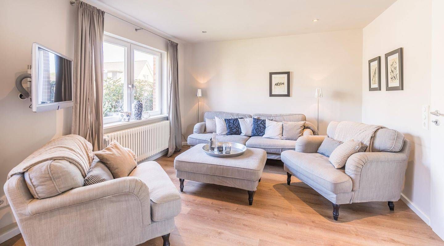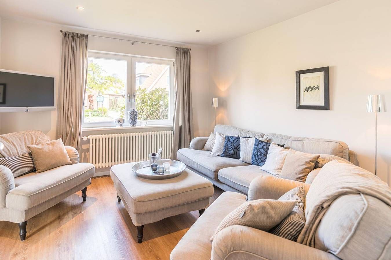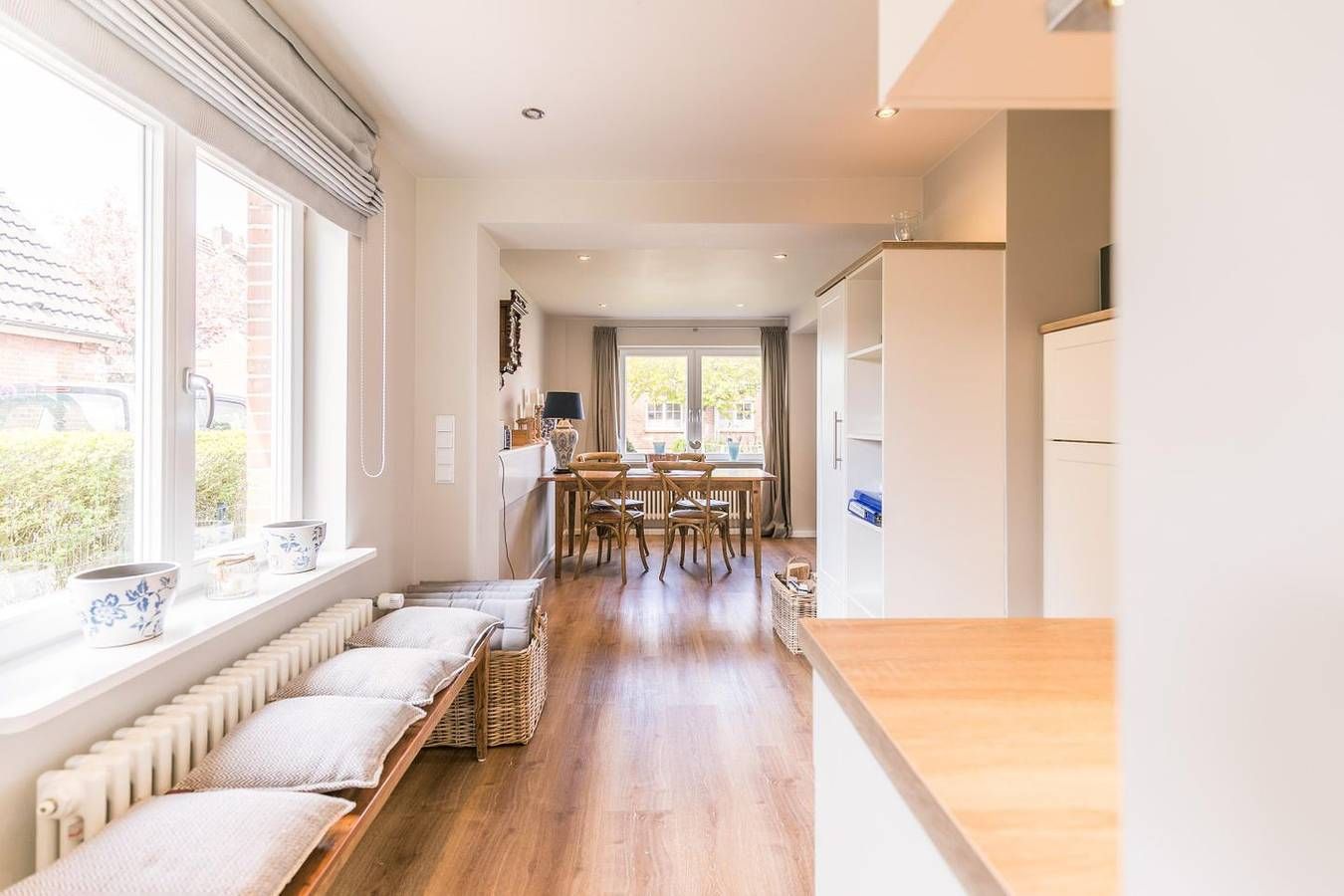In einer ruhigen und zentralen Lage zwischen Hafen und Innenstadt erwartet Sie das Ferienhaus "Anna-Otto" mit seinen rund 100 m² Wohlfühlraum auf zwei Etagen. Egal, ob Sie als Paar, Familie oder Gruppe von Freunden reisen – hier finden Sie den perfekten Ort für Ihre unvergesslichen Urlaubsmomente. Der helle Wohnbereich mit Kaminofen öffnet sich zur Terrasse in den sonnigen Garten. Hier warten Strandkorb, Liegen und eine elektrische Markise für entspannte Stunden an der Nordseeluft. Die offene Küche ist mit allem ausgestattet, was das Herz begehrt, und macht es Ihnen leicht, sich selbst zu versorgen – egal, ob Sie nur ein schnelles Frühstück oder einen gemütlichen Kochabend verbringen möchten. Das Haus ist wie ein gemütliches Zuhause und bietet Platz für bis zu fünf Erwachsene und ein Kind. Drei Schlafzimmer laden zum erholsamen Schlummer ein, während zwei moderne Duschbäder den Tagesablauf erleichtern. Damit Sie sich bei uns rundum wohlfühlen, bieten wir Ihnen WLAN, eine Waschmaschine und einen kostenlosen Parkplatz am Haus. Wir freuen uns, dass bei der Renovierung nur chemiefreie Farben und Lacke verwendet wurden und viele Produkte aus biologischem Anbau stammen. Das ist nicht nur gut für die Umwelt, sondern auch für ein gutes Wohnklima. Die Lage ist im Alltag wirklich klasse: Der Hauptstrand, der Hafen und die Innenstadt sind nur ein paar Gehminuten entfernt, und auch der Bahnhof ist bequem zu Fuß erreichbar. Und wenn du einen Hund hast, ist auch dafür vorgesorgt. So wird "Anna-Otto" zu einem gemütlichen Zuhause auf Zeit – mit Platz, Charme und kurzen Wegen für einen unvergesslichen Büsum-Urlaub. Wohnbereich: Sofa und zwei Sessel, Flachbild-TV, Blu-ray-Player, Sitzecke, Kaminofen, Hocker, Zugang zur Terrasse/Garten Offene Küche: Kühlschrank mit 3-Sterne-Gefrierfach, Geschirrspüler, Backofen, Ceranfeld, Mikrowelle, Wasserkocher, Toaster, Kaffeemaschine, Kapselmaschine (Cafissimo), Eierkocher, CD-Radio, Küchenwaage, Handmixer, Klönschnacktür zum Garten Schlafzimmer 1, EG: Boxspring-Doppelbett (1,60 × 2,00 m), zweitüriger Kleiderschrank, Nachttische, Lampen, Flachbild-TV, Stuhl, Zugang zum Duschbad, Plissee Schlafzimmer 2, OG: Boxspring-Doppelbett (1,60 × 2,00 m), Einbauschrank, Nachttische, Lampen, Flachbild-TV, Sitzbank, Korbstuhl, Plissee Schlafzimmer 3, OG: Einzelbett (0,80 × 2,00 m) mit Bettkästen, Sideboard, Stuhl, Flachbild-TV, Nachttisch, Lampe Bad 1, EG: Ebenerdige Dusche, WC, Spiegel, Kosmetikspiegel, Föhn, Fenster, Waschbecken Bad 2, OG: Ebenerdige Dusche, WC, Spiegel, Kosmetikspiegel, Föhn, Fenster, Waschbecken Diele: Garderobe, Spiegel, Stühle Haus & Service: WLAN, 1 kostenloser Parkplatz, möblierte Terrasse, Strandkorb, zwei Sonnenliegen, elektrische Markise, Spiele und Bücher, Bügeleisen, Bügelbrett, Waschmaschine, Wäscheleine, Wäsche optional buchbar Hunde-Informationen: Hundefreilauffläche Rechenmeisterweg 4, Hundestrände in Büsum/Westerdeichstrich/Deichhausen, Tierarzt ca. 3 km Für kurzfristige Anfragen zu dieser Unterkunft melden Sie sich bitte telefonisch bei uns.