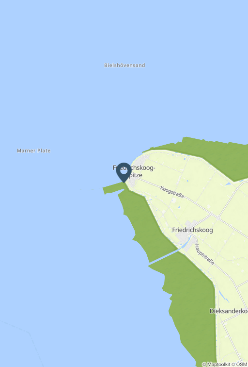 Nach der Eindeichung des Friedrichkooges im Jahr 1856, hatte sich der Priel im Jahr 1935 bis auf etwa 30 Meter dem Deichfuß genähert und eine Tiefe von bis zu zehn Metern erreicht. Um den sich dem Deich nähernden gefährlichen Priel zu durchbrechen, wurde der 2,2 km lange Trischendamm errichtet.