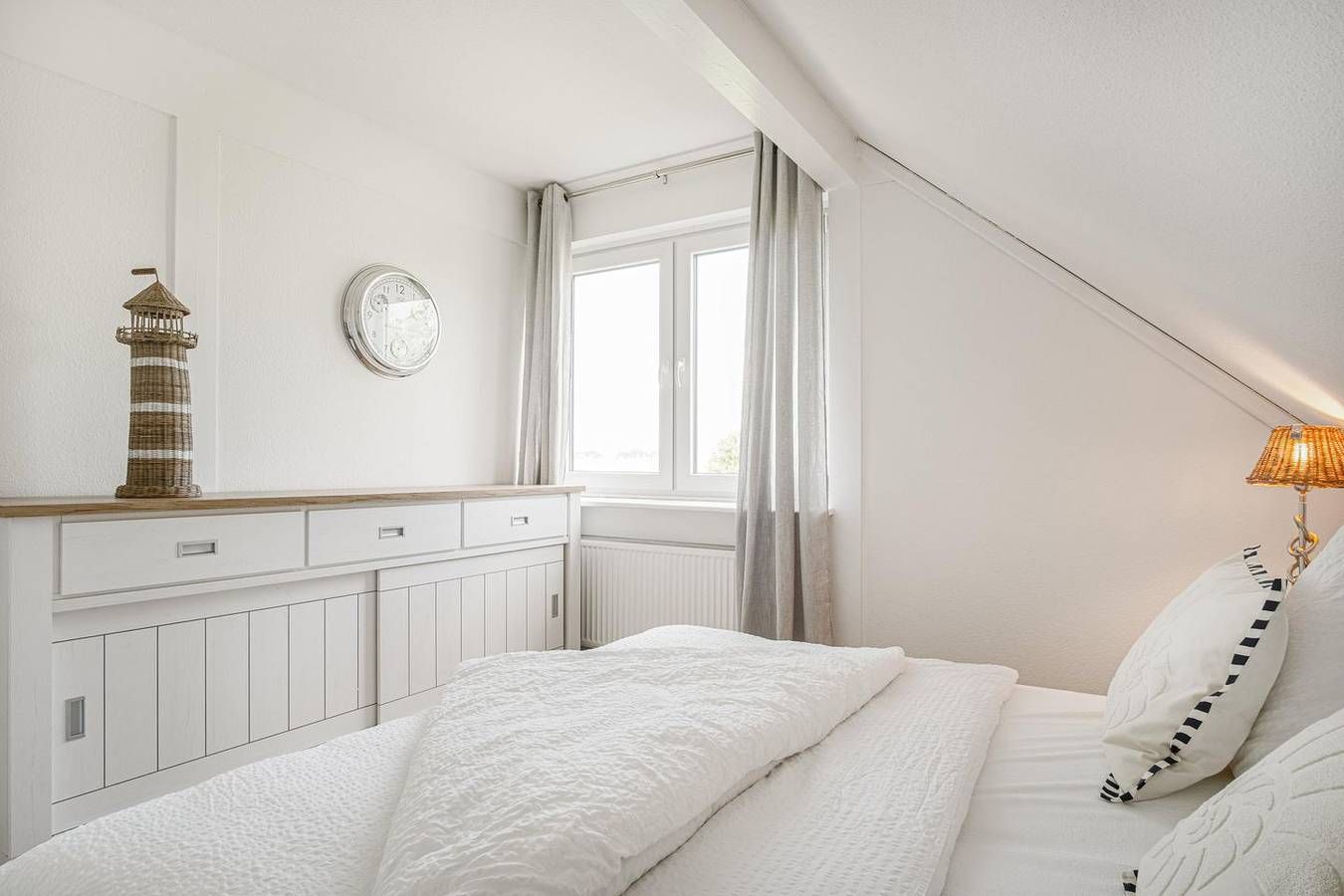 Genieße Deinen Urlaub in unserer wunderschöne Ferienwohnung im Dachgeschoss. Du wachst morgens in Deinem King-Size - Bett im stilvoll eingerichteten Schlafzimmer aus. Nur noch schnell ins Bad für eine angenehme Dusche und dann kannst Du entspannt mit einem Frühstück starten. Die Unterkunft Auf 40 Quadratmetern bietet Dir Deine Unterkunft alle Annehmlichkeiten, die Du für den perfekten Urlaub benötigst: eine voll ausgestattete Küchenzeile mit Geschirrspüler und Kaffeemaschine - eine Mikrowelle, Toaster, Kühlschrank und ein Wasserkocher sind ebenfalls vorhanden. Suchst Du einfach mal Entspannung in der Wohnung, so steht Dir ein Flachbild-TV zur Verfügung. Deine Ferienwohnung wurde in 2022/2023 umfassend renoviert, um Dir hochwertige Möbel und Einrichtungsgegenstände anbieten zu können. Das Inselquartier im Zentrum der Nordseeinsel Pellworm bietet Dir komfortable und gemütliche Quartiere für 2 Personen für Ihren Nordseeurlaub. Deine Unterkunft auf der Nordseeinsel ist zentral und trotzdem ruhig gelegen. Bei uns darfst Du Dich wie Zuhause fühlen. Das Inselquartier liegt vis à vis vom Freizeitbad und den Kureinrichtungen. Eine weitläufige Grünanlage rahmt die Häuser im Fachwerkstil ein und schafft eine Oase der Ruhe. Liegewiesen und Grünanlagen laden zum Entspannen und Verweilen ein. Service im Inselquartier Wir erfüllen Deine Wünsche und informieren Dich stets, was Pellworm aktuell zu bieten hat. So organisieren wir alle Deine kleinen und großen Wünsche, damit der Urlaub zu einem entspannten und unvergesslichen Erlebnis wird. Ob Du Ruhe suchst oder viel unternehmen möchtest - mit unserem Quartierservice sind wir täglich im Insel-Kontor oder über unsere Servicehotline für Euch da. Weitere wichtige Hinweise Die Anreise erfolgt per Fähre von Nordstrand/Strucklahnungshörn. Mit dem Zug gelangst Du über Hamburg nach Husum, von Husum mit dem Bus zum Fähranleger und dann weiter mit dem Schiff. Mit dem Auto fährst Du über Hamburg - A23 bis Husum- Husum Fähranleger- Fähre Pellworm Wir bieten unseren Quartierservice mit Einkaufsservice, Fahrrad Vorbestellung, Brötchenlieferung etc. Es gibt einen kostenlosen Bustransfer vom Anleger bis zur Bushaltestelle am Inselquartier.