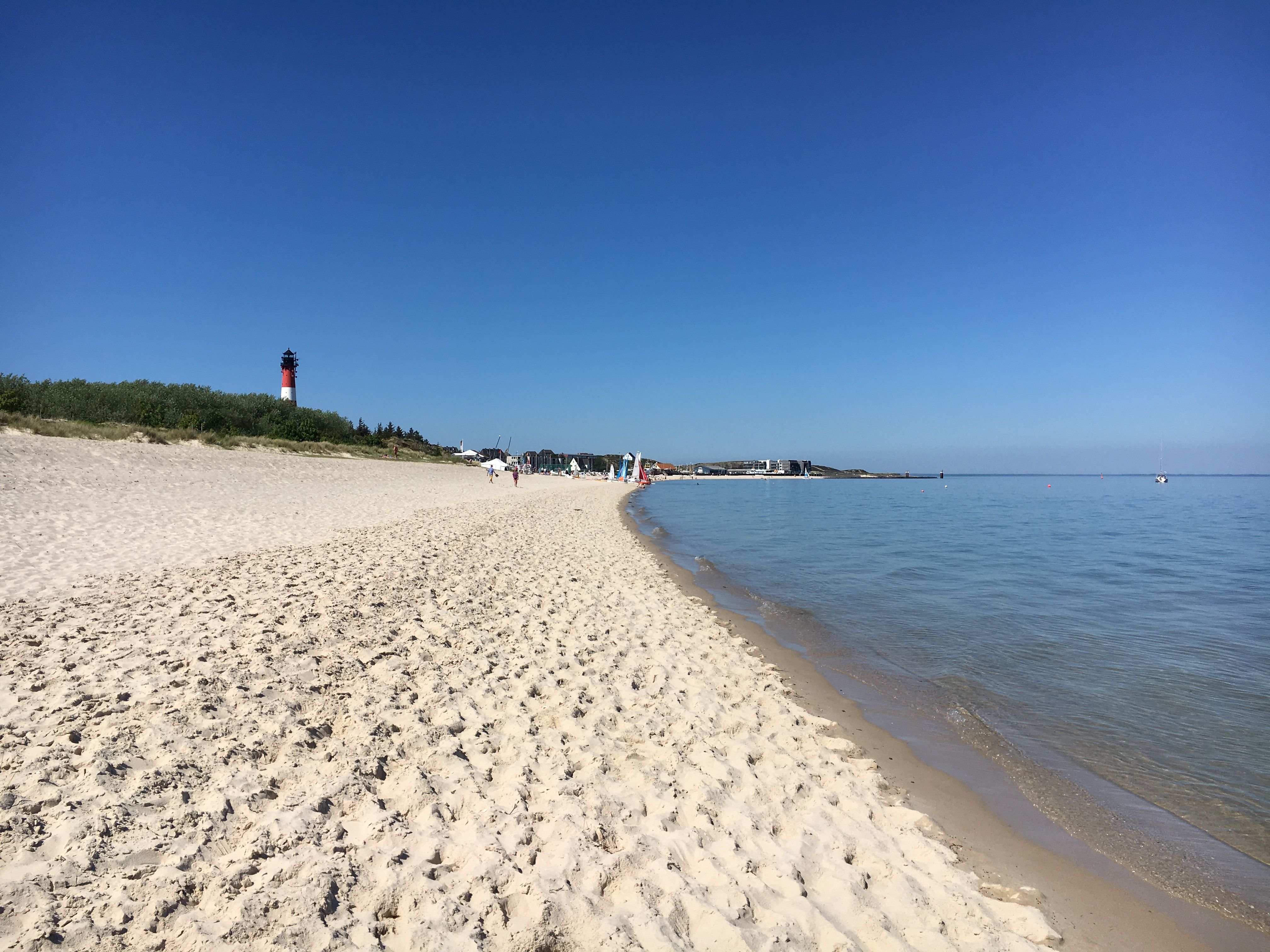 Auch wenn die Hörnum Odde in den letzten Jahren einiges an Fläche verloren hat, ist die Wanderung um die Südspitze immer noch ein Wanderhighlight. Start und Ziel ist der Hörnumer Hafen mit dem ikonischen rot-weißen Leuchtturm. Zunächst wird der Ort durchquert, um zur Westseite zu gelangen. Von dort geht es immer am Strand entlang zwischen Nordsee und Dünen mit kleinen Reetdachhäusern zur Südspitze der Insel. Am südlichsten Punkt angekommen lässt sich der Blick über die Nachbarinseln Amrum (rechts) und Föhr (links) schweifen. Bei guter Sicht lassen sich sogar die einzelnen Strandkörbe am Strand erahnen. An der Ostseite der Insel geht es mit ruhigerer Brandung und Blick auf den Leuchtturm zurück zum Hafen, der mit kulinarischen Genüssen wie Sylter Muscheln und Crêpes lockt.