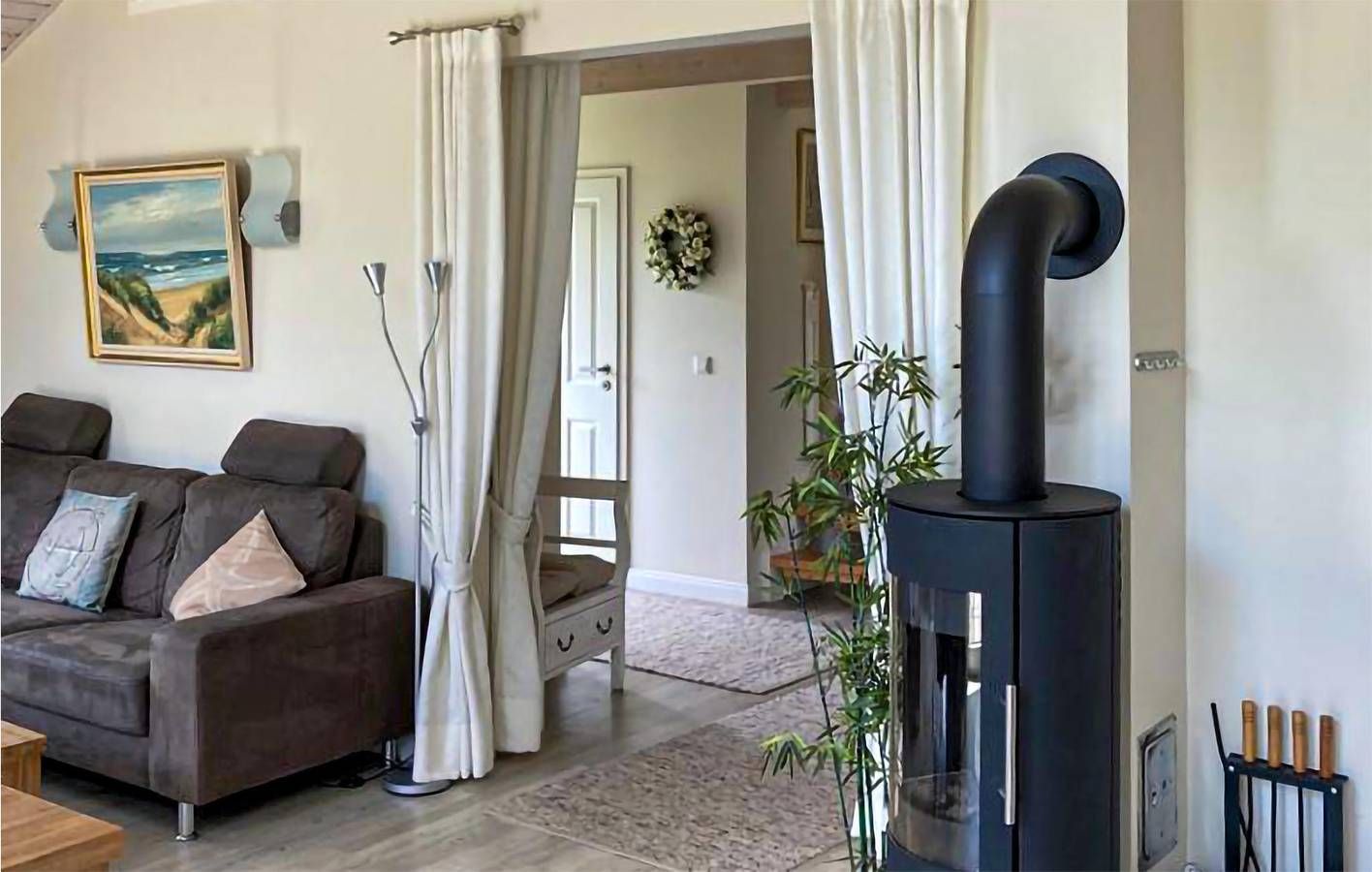Eine besondere Perle in Dagebüll erwartet Sie mit diesem freistehenden Ferienhaus an der Nordsee. Hier können Sie die Seele auf der Terrasse baumeln lassen und die frische Nordseeluft genießen. Erholung pur! Das Haus ist mit hochwertigen Möbeln ausgestattet und alle Räume sind großzügig gestaltet. Dank der hauseigenen Sauna und des gemütlichen Kaminofens ist das Haus auch in der kalten Jahreszeit ein wahres Highlight. Nach einem langen Spaziergang am Deich entlang, können Sie es sich hier herrlich gemütlich machen und sich wieder aufwärmen. Im Sommer lockt natürlich die großzügige Terrasse. Der Blick auf den liebevoll angelegten Garten lässt sich am besten vom Strandkorb aus genießen, der Platz für bis zu drei Personen bietet. Vom Flur aus erreichen Sie über eine steile, schmale Treppe den so genannten "Hems", eine offene Galerie. Aufgrund der sehr niedrigen Deckenhöhe ist der Hems kein vollwertig nutzbarer Aufenthaltsraum, aber die Eigentümerin hat dort drei Fitnessgeräte und zwei Relax-Liegen zur Verfügung gestellt. Die Dagebüll-Häuser haben alle eine abschaltbare Außensteckdose an der Terrasse. Diese ist perfekt geeignet, um E-Bikes aufzuladen. Das Ferienhaus liegt nur 200 m von der Nordsee und Dagebülls immergrünem Strand entfernt, der zum Baden einlädt. Die vielen Deiche rund herum bieten ein perfektes Revier für Radler. Im Ortszentrum von Dagebüll, an das die Ferienhäuser direkt angrenzen, finden Sie kleine Läden, Restaurants und einen Kaufmann. Direkt gegenüber legen die Fähren auf die Nordseeinseln Amrum und Föhr ab. Vom nahen Hafen in Schlüttsiel aus (ca. 8km) erreicht man auch die kleinen Halligen Hooge und Langeneß schnell und entspannt per Schiff. Auch für eine Tagestour nach Sylt liegt Dagebüll ideal, denn vom benachbarten Niebüll aus (ca. 12 km) können Sie in nur einer halben Stunde ganz bequem mit der Bahn direkt bis Westerland durchfahren. Weitere Häuser in diesem Ferienhausdorf: siehe DSH901-969