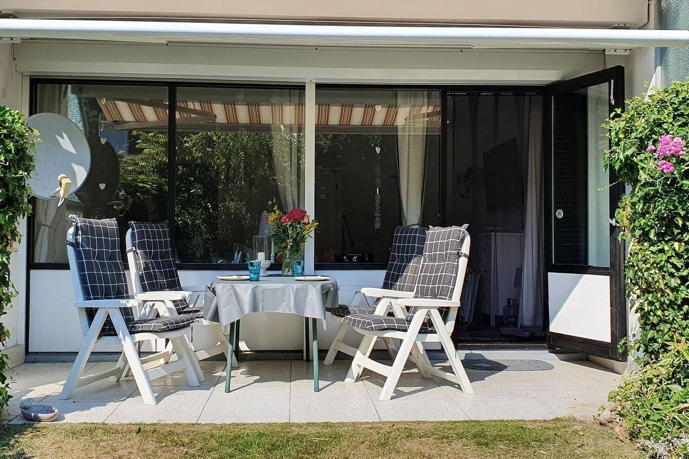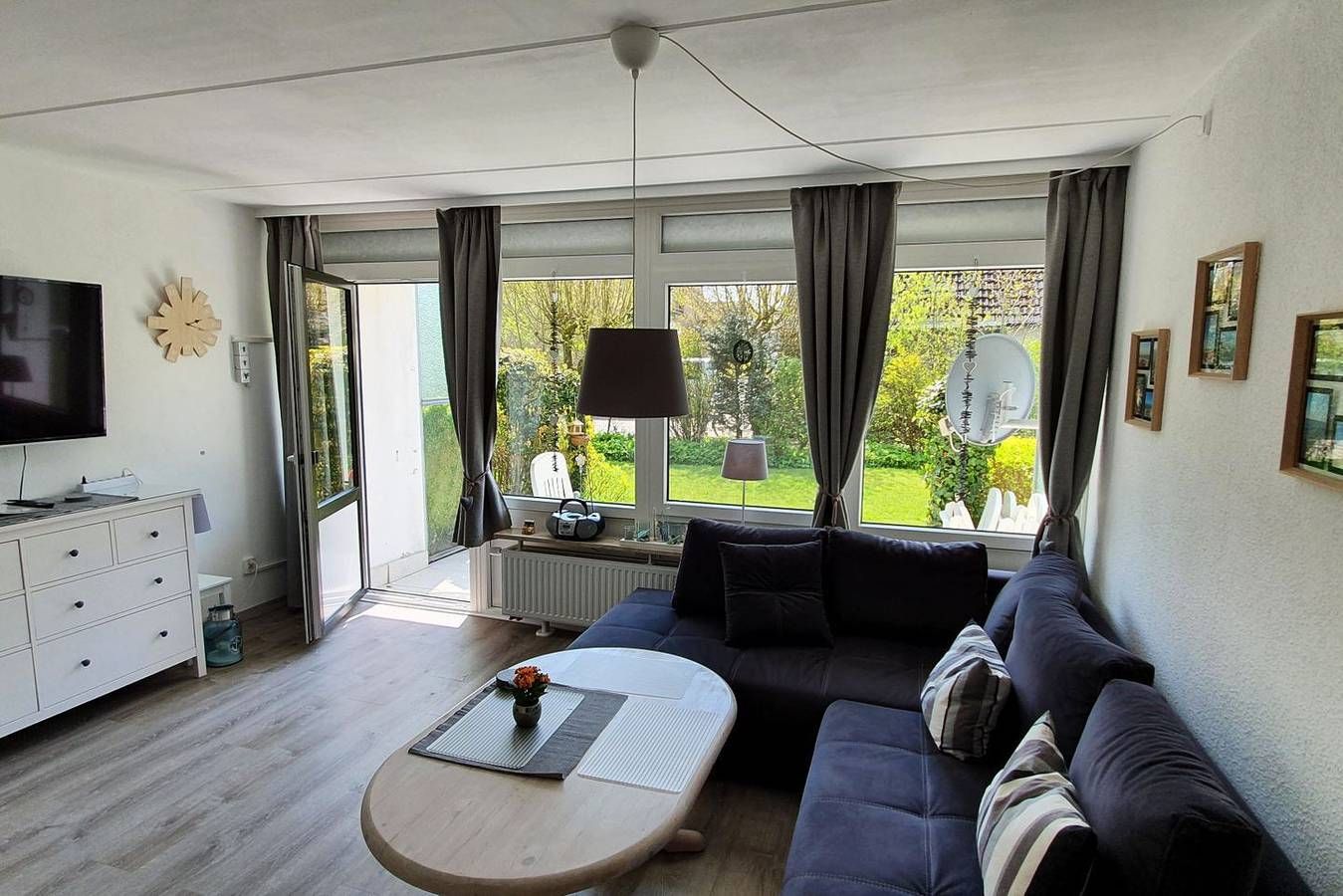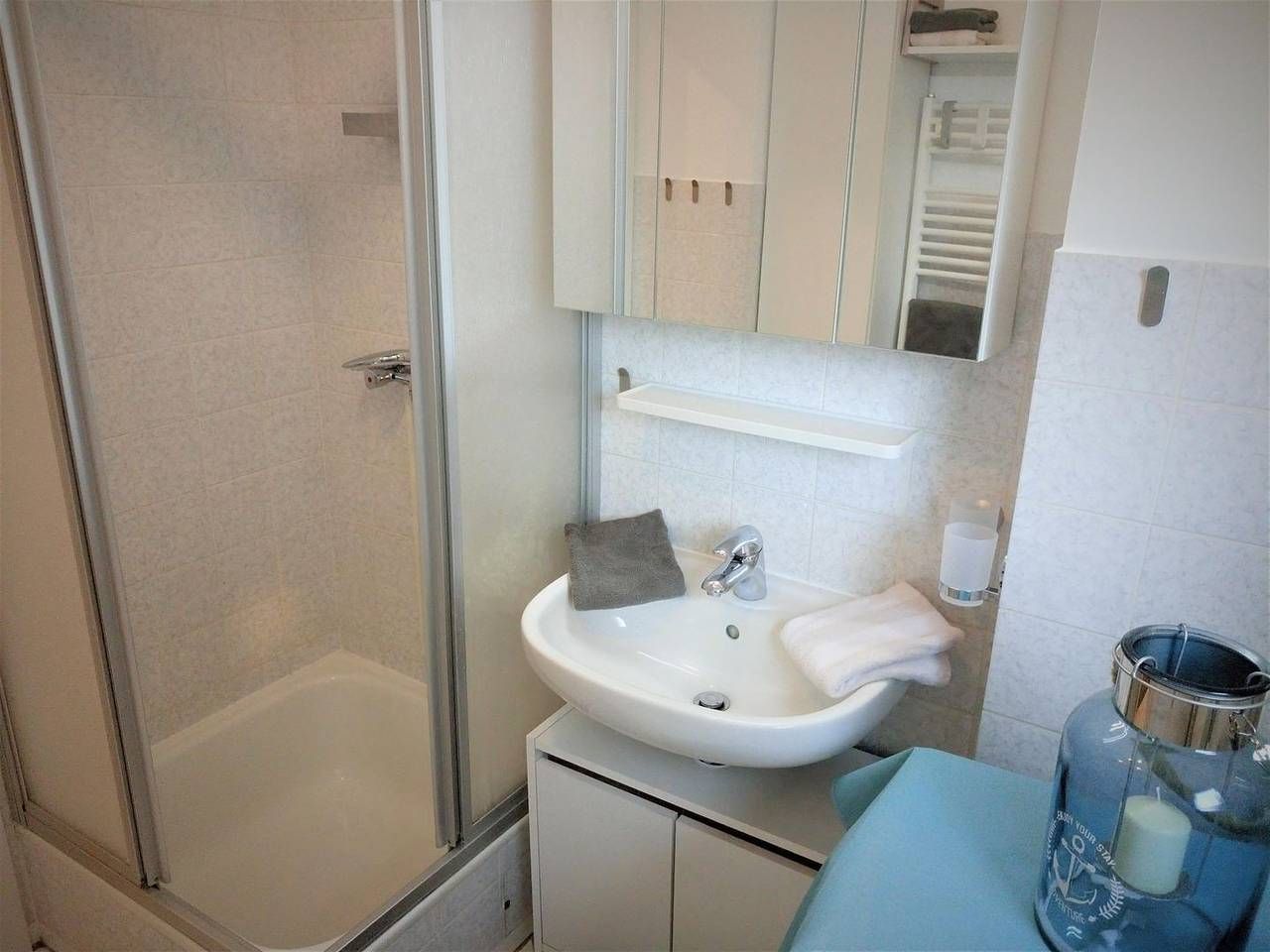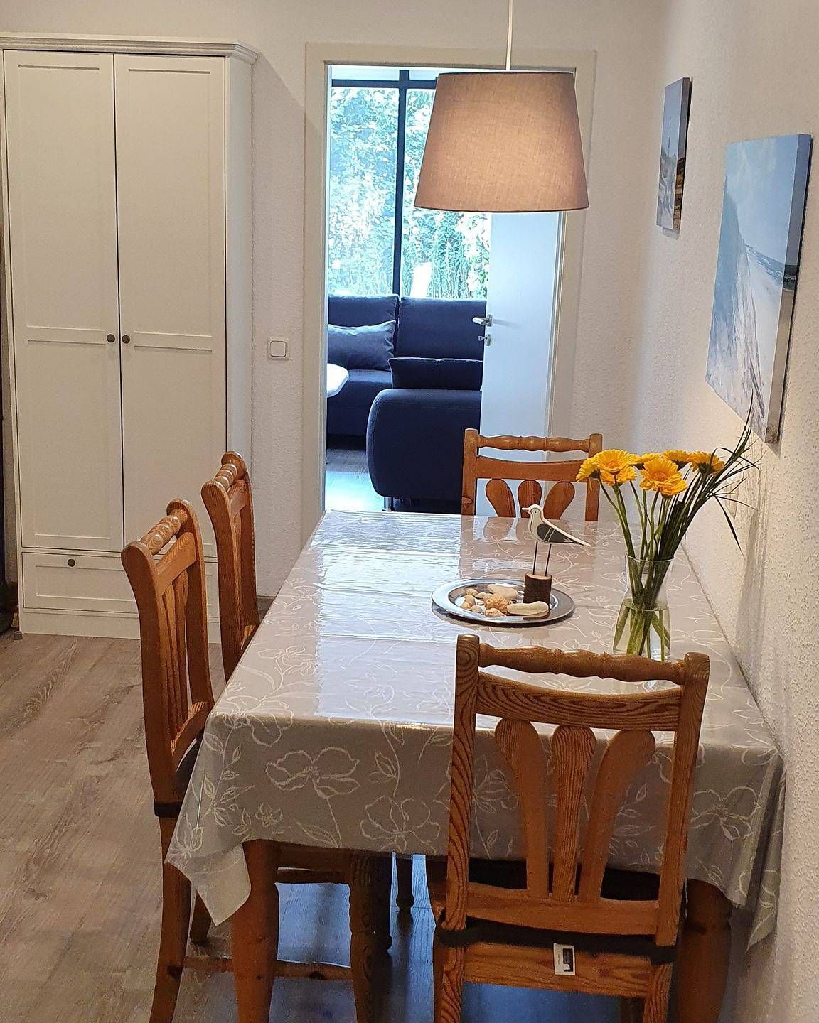 Diese Ferienwohnung, in der Nähe der Familienlagune in Büsum, befindet sich im Erdgeschoss einer kleinen Wohnanlage. Die Süd- West Terrasse der Wohnung liegt rückwärtig am Haus, so dass Sie einen Blick ins Grüne haben und dort die Nordseeluft in Ruhe genießen können. Bei nicht so schönem Wetter bietet Ihnen der großzügige Wohnraum genügend Platz, um sich auf der Wohnlandschaft oder in dem Lesesessel so richtig zu entspannen. Die Wohnlandschaft kann als zusätzliche Schlafmöglichkeit genutzt werden. Ansonsten bietet Ihnen das Schlafzimmer mit den beiden Einzel- Boxspringbetten, die als Doppelbett verbunden sind und eine Außenjalousie den Raum für einen erholsamen Schlaf. In der Küche finden Sie alles vor, was Sie benötigen um sich selber mit den nordischen Köstlichkeiten zu verpflegen. Ein Esstisch mit genügend Platz steht angrenzend zur Küche bereit. Das Tageslicht- Bad verfügt über eine Dusche und einen Handtuchwärmer und rundet diese Wohnung ab. - Bettwäsche und Handtücher sind nicht inklusive, können aber kostenpflichtig dazu gebucht werden - Nah (ca. 250m) an der Familienlagune Watt`n Insel, dem Sandstrand von Büsum, die Fußgängerzone ist fußläufig in einigen Minuten zu erreichen - 1 Hund bis Kniehöhe (50cm) ist erlaubt. Die Rasenfläche vor der Terrasse darf leider nicht genutzt werden - Kostenfreies W- LAN, für Störungen und Ausfälle übernehmen wir keine Haftung - Unterstellmöglichkeit für Ihre mitgebrachten Fahrräder - Es kann im Schlafzimmer leider kein Babybett aufgestellt werden - Waschmaschine und Trockenboden gemeinschaftlich auf dem Dachboden des Hauses. (Kostenpflichtig)