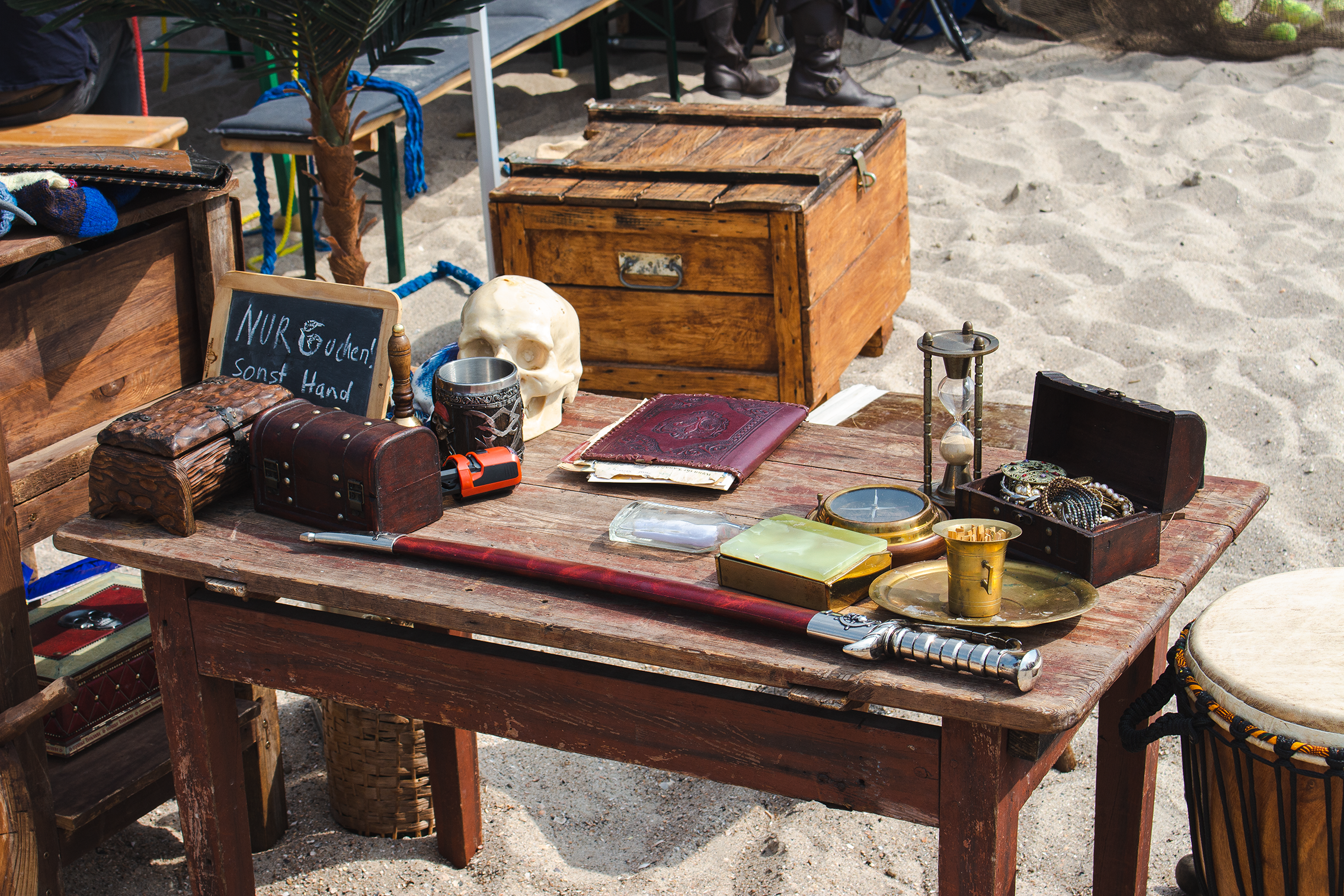 Wer selber zum Pirat werden möchte, kann sich sogar fiese Wunden oder echte Piratentattoos, z.B. einen Anker oder eine Meerjungfrau schminken lassen. Auch Bühnenmoderation und ein buntes Rahmenprogramm stehen zur Auswahl. Wer sich traut, misst sich beim Würfeln oder Klettern mit der Besatzung. Halstücher werden zu Piratenkopftüchern, alte Klamotten zur Piratenkluft. Auch ein Foto mit der Mannschaft kann gebucht werden – um den Landratten zu Hause Beweisfotos mitzubringen.