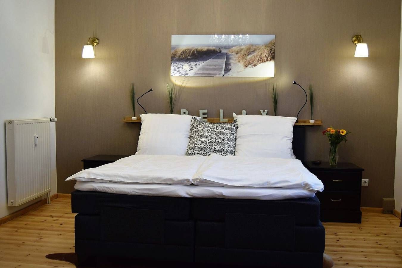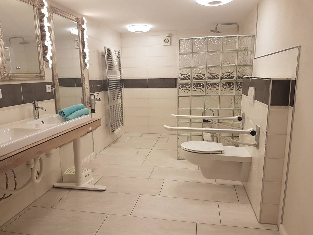 Die Wohnung Hafenzeit stammt aus dem 19 Jahrhundert und wurde im Jahr 2017 mit viel Liebe und Zeit renoviert. Sogar die original Böden wurden vom Eigentümer restauriert. Sie bewohnen den unteren Teil dieses Hauses. Die Wohnung bietet Platz für die ganze Familie. Das tolle an diesem Haus ist, dass auch Menschen mit Rollstuhl sich hier rundum wohlfühlen können. Das Haus besteht aus zwei Schlafzimmern. In dem kleineren Schlafzimmer finden Sie zwei Einzelbetten mit einem Fernseher mit integriertem DVD-Player. Im zweiten Schlafzimmer (schwellenloser Zugang durch große Doppeltür) befindet sich ein Doppelbett, welches elektronisch am Kopf- und Fußteil verstellbar ist auch hier gibt es einen Fernseher. Im Wohnzimmer befindet sich eine gemütliche Couch, diese kann als Schlafsofa genutzt werden (1,40 m x 2,00 m). Die Küche ist voll ausgestattet. Es gibt eine Mikrowelle, einen Backofen, einen Geschirrspüler, ein Induktionskochfeld und einen Kühlschrank mit Gefrierfach. Es gibt eine separate Arbeitsfläche, die in der Höhe verstellbar ist (mit einem Schlüssel, der nach Bedarf rausgegeben wird). Sogar die Dunstabzugshaube kann mit einer Fernbedienung bedient werden. Nutzen Sie diese tolle Küche und servieren Ihr Essen an dem großzügigen Esstisch. Das Badezimmer bietet ebenfalls schwellenlosen Zugang (Türbreite 0,81 cm). Hier finden Sie eine große (3 m²) ebenerdige Dusche. An der Toilette befindet sich an jeder Seite ein Griff. Hier wurde ein barrierefreier Traum erschaffen. >>Bitte beachten Sie, dass sich neben der Wohnung Hafenzeit in der Deichstraße Ecke Oesterstraße aktuell eine Baustelle befindet. Für eventuell anfallendem Baulärm oder Unannehmlichkeiten gewähren wir Ihnen 10% auf den Mietpreis. Wir freuen uns Sie bald bei uns begrüßen zu dürfen.