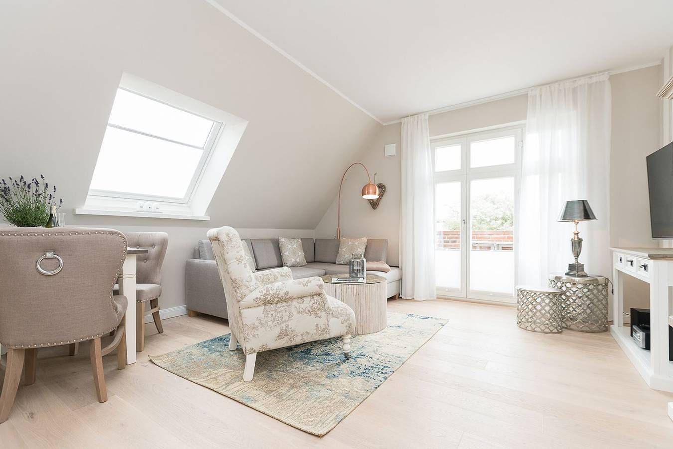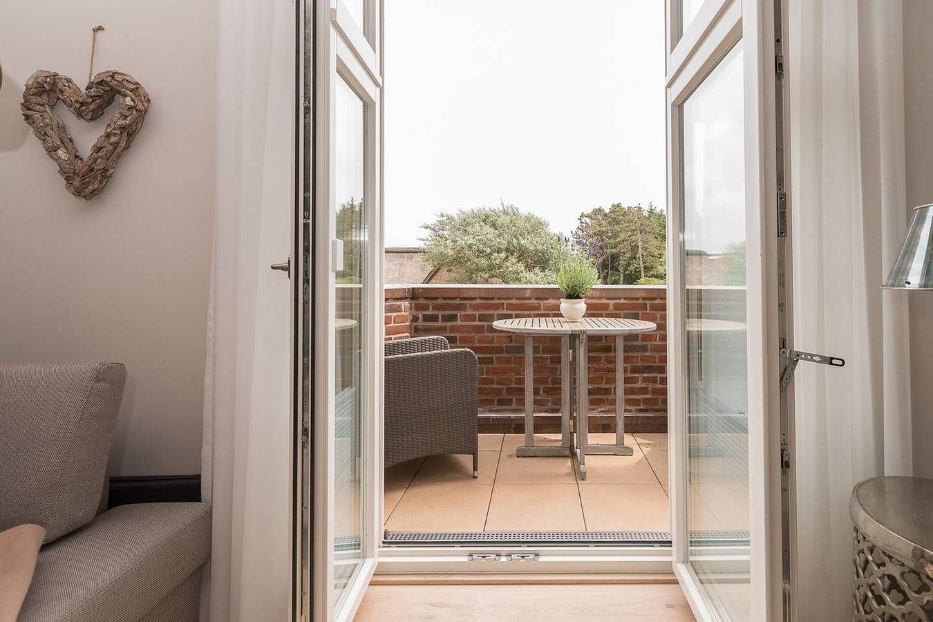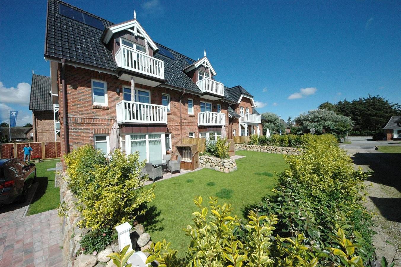 Dieses im April 2016 vollendete Appartementhaus thront im Herzen von Wenningstedt, wo Einkaufsmöglichkeiten in unmittelbarer Nähe liegen und der Weststrand nur etwa 400 m entfernt ist. Der architektonische Stil des Gebäudes harmoniert perfekt mit der bezaubernden Bauweise des Bäderstils. Die außergewöhnlich gestaltete Obergeschoss-/Dachgeschoss-Endwohnung mit Balkon bietet auf großzügigen 56 qm Platz für 3 Personen. Im Dachgeschoss erwartet Sie ein geräumiger Wohnraum mit einer gemütlichen Schlafcouch sowie ein elegantes Duschbad/WC. Im Dachgeschoss befinden sich zudem ein Doppelschlafraum und ein Gäste-WC. Die Küche fügt sich nahtlos in den Gesamtstil ein und ist mit einem Geschirrspüler, Backofen und Herd ausgestattet. Die Einrichtung des Wohnraums besticht durch Erdtöne, während die Bäder im neuesten Design gestaltet sind. Ein Flat TV sorgt für Unterhaltung. In dieser Wohnung lässt sich Urlaub vom Feinsten erleben. Im Untergeschoss steht unseren Gästen ein großzügiger Wellnessbereich zur Verfügung, inklusive Sauna, Dampfbad, Außendusche und Fitnessgeräten. Ein Parkplatz vor dem Haus rundet die Annehmlichkeiten ab.