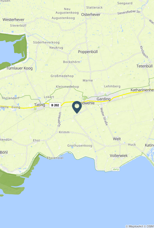 Hier in Kirchspiel Garding hast du deine Ruhe. Der nächste Strand ist nur 4km entfernt. Auch St. Peter-Ording ist ganz in der Nähe. Ein Bahnhof in 1,5km Entfernung lädt zu einer Zugfahrt ein. Der bekannte Westerhever Leuchtturm ist immer wieder ein Ausflug wert.