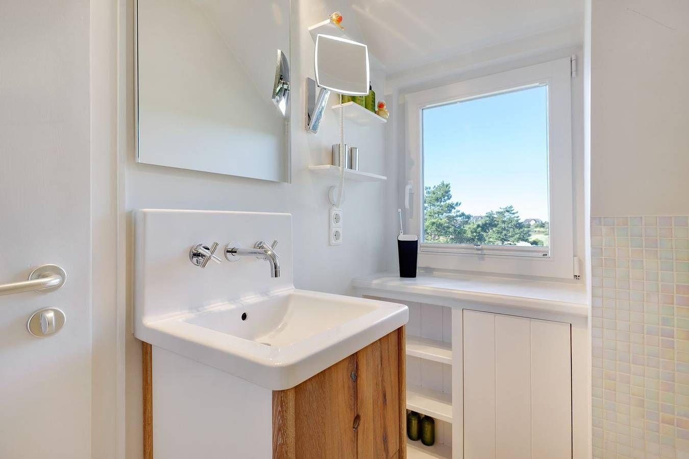 Das charmante Hausteil in einzigartiger Lage wurde äußerst passend „Watt vy“ ( Wattblick ) genannt. Tatsächlich ist das reetgedeckte Haus mit seinem urwüchsigen großen Garten und dem grandiosen Blick auf das Meer der ideale Ort, um einfach mal die Seele baumeln zu lassen. Die Zimmer verteilen sich auf drei Etagen und sind hochwertig und modern ausgestattet. Eine geschmackvolle Gestaltung mit tollen Farbtupfern und besonderen Materialien (Designers Guild/Christian Lacroix) machen dieses kleine Hideaway zu etwas ganz Besonderem. Im Erdgeschoss befindet sich der Wohn- und Essbereich mit offener Küche (Granitarbeitsplatte, KitchenAid Artisan Wasserkocher, Nespressomaschine, Alessi Saftpresse u.a.) mit direktem Blick auf das Wattenmeer, sowie ein Gäste WC. Auch von den zwei möblierten Terrassen – Weishäupl Teak-Gartenmöbel und original weiße Sylter Gartenmöbel - mit Strandkorb ( ca. April - Oktober ) hat man einen phantastischen Ausblick über die Heide, das Wattenmeer und die Blidselbucht und kann den ganzen Tag die Sonne genießen. Eine Etage höher befinden sich zwei traumhaft gemütliche Schlafzimmer - das eine mit Doppelbett (180cm x 200cm low end) und das andere mit komfortablem Kojenbett (140cm x 200cm). Das daneben liegende Duschbad mit exklusiver Ausstattung und Bisazza Mosaik zeigt, dass man auch im Kleinen auf nichts verzichten muss, wenn alles klug angeordnet ist. Konzentrierte Kompaktheit ist hier das Motto, Weite vermisst man – allein durch den Ausblick – trotzdem nicht! Die Treppe ist Obergeschoß ist relativ schmal und steil. Die Dachschräge verleiht dem dritten Schlafzimmer mit breitem Doppelbett (180cm x 200cm low end) und „Ochsenauge“ samt Weitblick kuscheligen Charme. Hochwertige Tischlereinbauten setzen Akzente und runden das Wohlfühlambiente ab. Die Treppe ist dort sehr steil. „Watt vy“ befindet sich in der Westerheide, einer Wohnstraße, die auf halber Strecke zwischen Kampen und List liegt. Dieser privilegierte Teil der Insel wird von den Syltern Sonnenland genannt. Ein traumhafter Ort, zwischen Nordsee- und Wattenmeerseite, eingebettet in der Heidelandschaft im Naturschutzgebiet. Die Strände beider Küsten sind fußläufig zu erreichen. Einkaufsmöglichkeiten z.B. in List oder Kampen (jeweils ca. 4 km), aber auch alle anderen Sylter Annehmlichkeiten sind leicht zu erreichen. Wer mag, kann – außer dem eigenen Auto – den nahegelegenen Fahrradweg (alte Bahntrasse = Teil des Rundweges durch Sylt) oder den Bus für Ausflüge nutzen Der zur Westerheide gehörende unbewachter Strandabschnitt Nr. 21 ist auch in der Hochsaison sehr ruhig und gerade auch für Hundebesitzer klasse. Da dort weit & breit kein Autoparkplatz zur Verfügung steht, wird dieser Strandabschnitt weitestgehend nur von den Bewohnern der Wester- und Süderheide genutzt, dieser ist ca. 15 min zu Fuß entfernt. Haustiere sind herzlich +willkommen ( max. 1 Haustier)