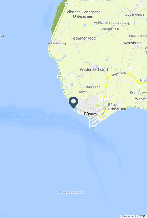 Treffpunkt: 25761 Büsum, 25761 Büsum, Familienlagune (Perlebucht), direkt auf Watt´n Insel am Büsum-Schriftzug