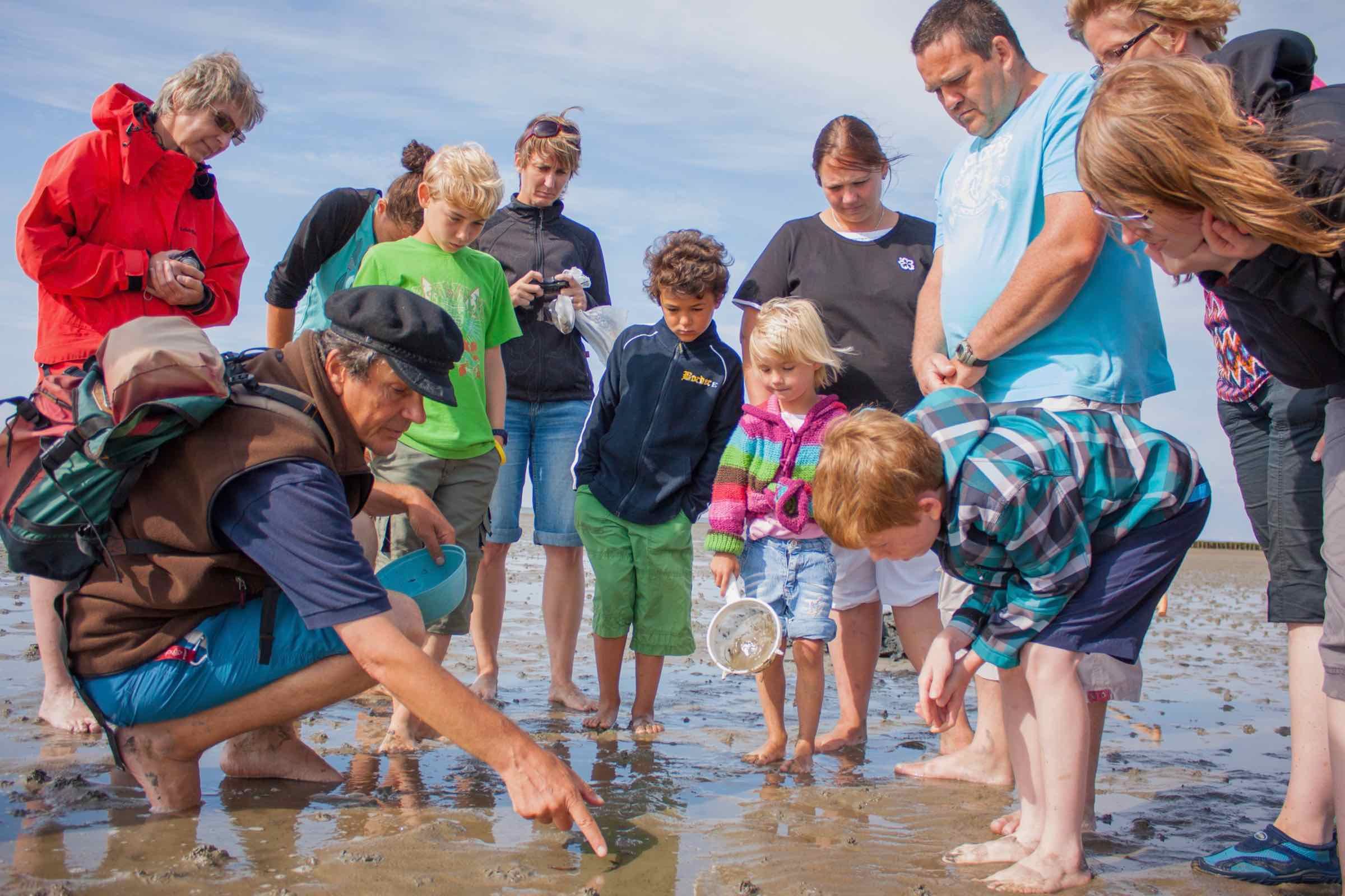 Kindgerecht erkunden wir das Watt unter fachkundiger Leitung. Gemeinsam entdecken wir diesen besonderen Lebensraum und seine Bewohner wie Wattwurm, Strandkrabbe, Strandschnecke und Co.