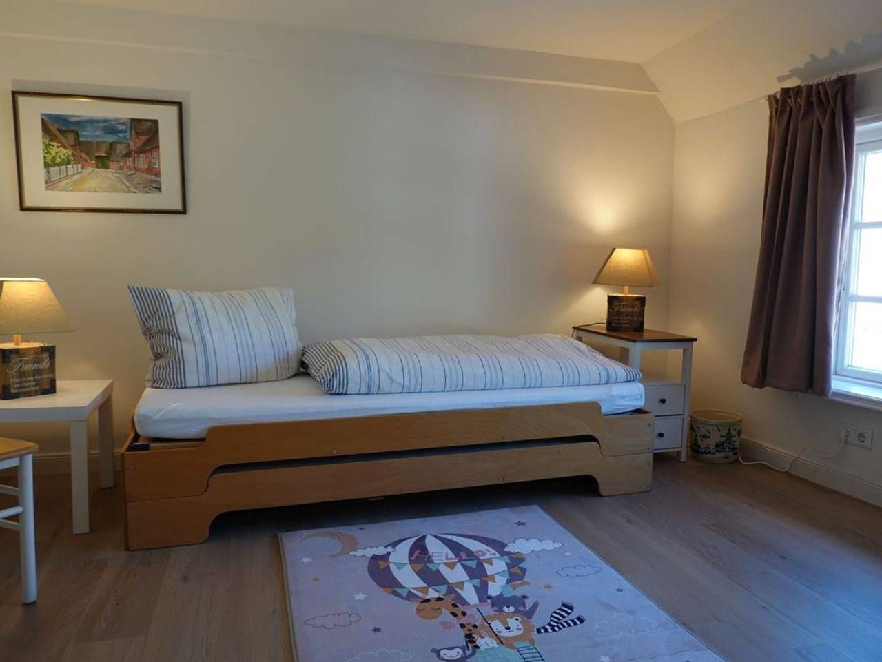 Ferienhaus Welkimen tüs – Wohnung „Tradition“ Oldsum auf Föhr – friesisch. charmant. echt. Inmitten des malerischen Friesendorfs Oldsum liegt unser liebevoll restauriertes Ferienhaus Welkimen tüs. Der Name ist Programm: „Willkommen zu Hause“ – hier verbinden sich friesische Tradition, stilvolles Design und moderner Komfort. Wohnung „Tradition“ empfängt Sie mit besonderem Charme: Die gemütliche Sitzecke fügt sich dezent in das Wohnzimmer ein, dessen Wände noch mit originalen, alten Delfter Kacheln geschmückt sind – ein Stück Geschichte zum Anfassen. Ein antiker Schrank und eine historische Truhe unterstreichen den authentischen Charakter der Räume und schaffen eine Atmosphäre, in der man sich sofort wohlfühlt. Die moderne Einbauküche bietet Ihnen alles, was Sie für einen unbeschwerten Aufenthalt brauchen – ob ausgiebiges Frühstück oder friesischer Kochabend. Im Elternschlafzimmer trifft Tradition auf Komfort: Die Delfter Kacheln setzen auch hier stilvolle Akzente, das neue Doppelbett sorgt für erholsamen Schlaf. Für kleine Gäste stehen zwei separate Kinderzimmer zur Verfügung – jeweils mit Einzelbett, eines davon lässt sich bei Bedarf zu einem zweiten Bett erweitern. Besonders praktisch: Welkimen tüs bietet zwei getrennte Wohneinheiten – „Tradition“ und „Moderne“. Ideal für größere Familien oder Freunde, die gemeinsam Urlaub machen möchten, dabei aber auch ihre eigenen Rückzugsorte genießen wollen. Die Lage der Ferienwohnung ist ein weiterer Pluspunkt: Nur 50 Meter entfernt finden Sie ein Restaurant und Einkaufsmöglichkeiten, ideal für spontane Besorgungen oder um in einem lokalen Restaurant zu schlemmen. Der Strand liegt nur 3000 Meter entfernt, und das Meer ist in 1000 Metern bequem zu erreichen, sodass Ihnen viele Möglichkeiten für Badetage und maritime Aktivitäten offenstehen. Für sportliche Aktivitäten wie Golfen ist der nächste Golfplatz nur 8000 Meter entfernt. Bitte beachten Sie, dass Jugendgruppen nicht erlaubt sind und die Nutzung eines Autos empfohlen wird, um die Umgebung bequem erkunden zu können. Diese moderne Ferienwohnung vereint alles, was man für einen erholsamen Urlaub benötigt, und bietet gleichzeitig zahlreiche Möglichkeiten zur Freizeitgestaltung. Zögern Sie nicht und buchen Sie jetzt Ihren Aufenthalt in der „Welkimen tüs“ Ferienwohnung! Erleben Sie unvergessliche Momente auf der wunderschönen Insel Föhr – Ihr Traumurlaub wartet auf Sie!