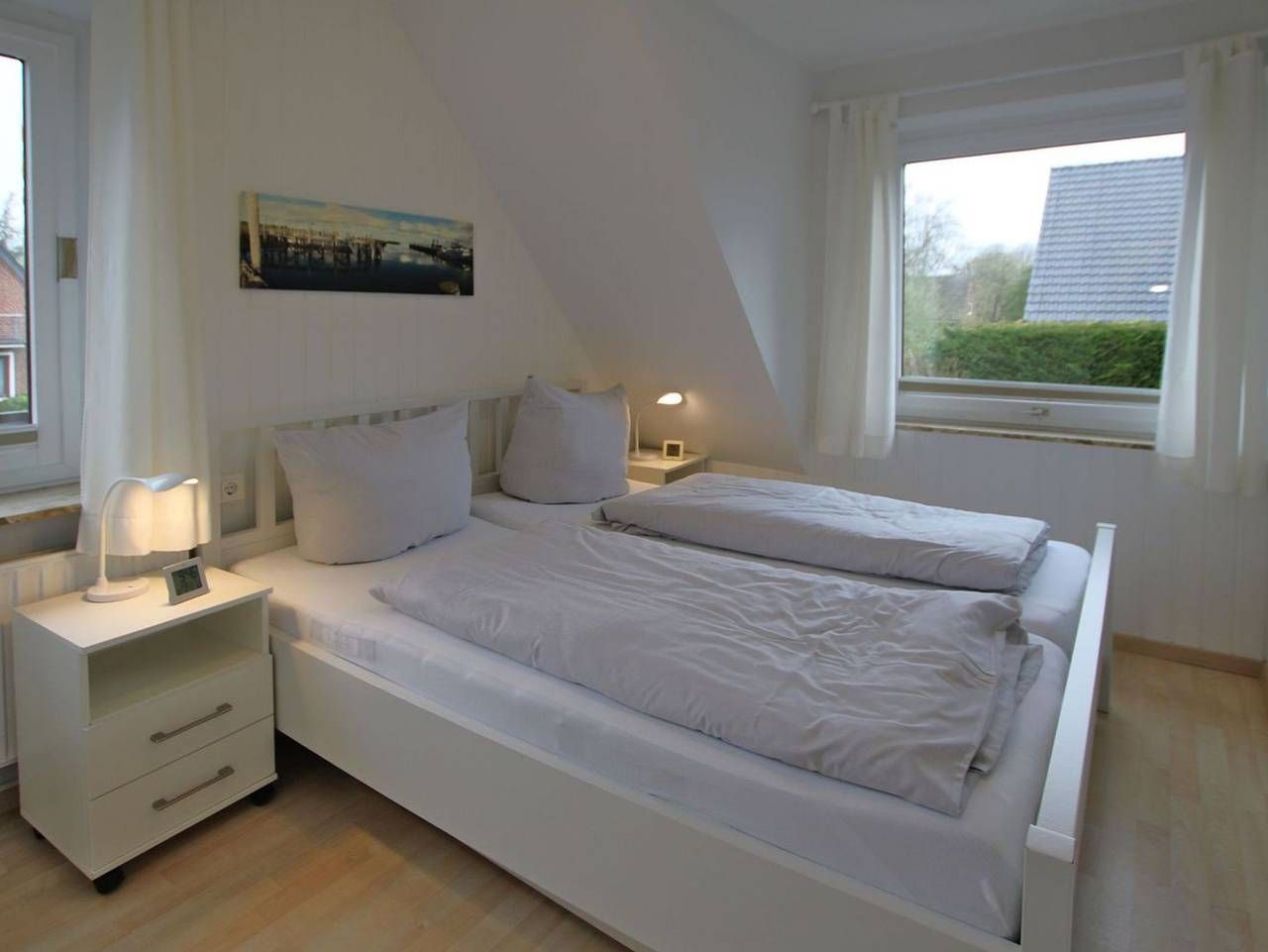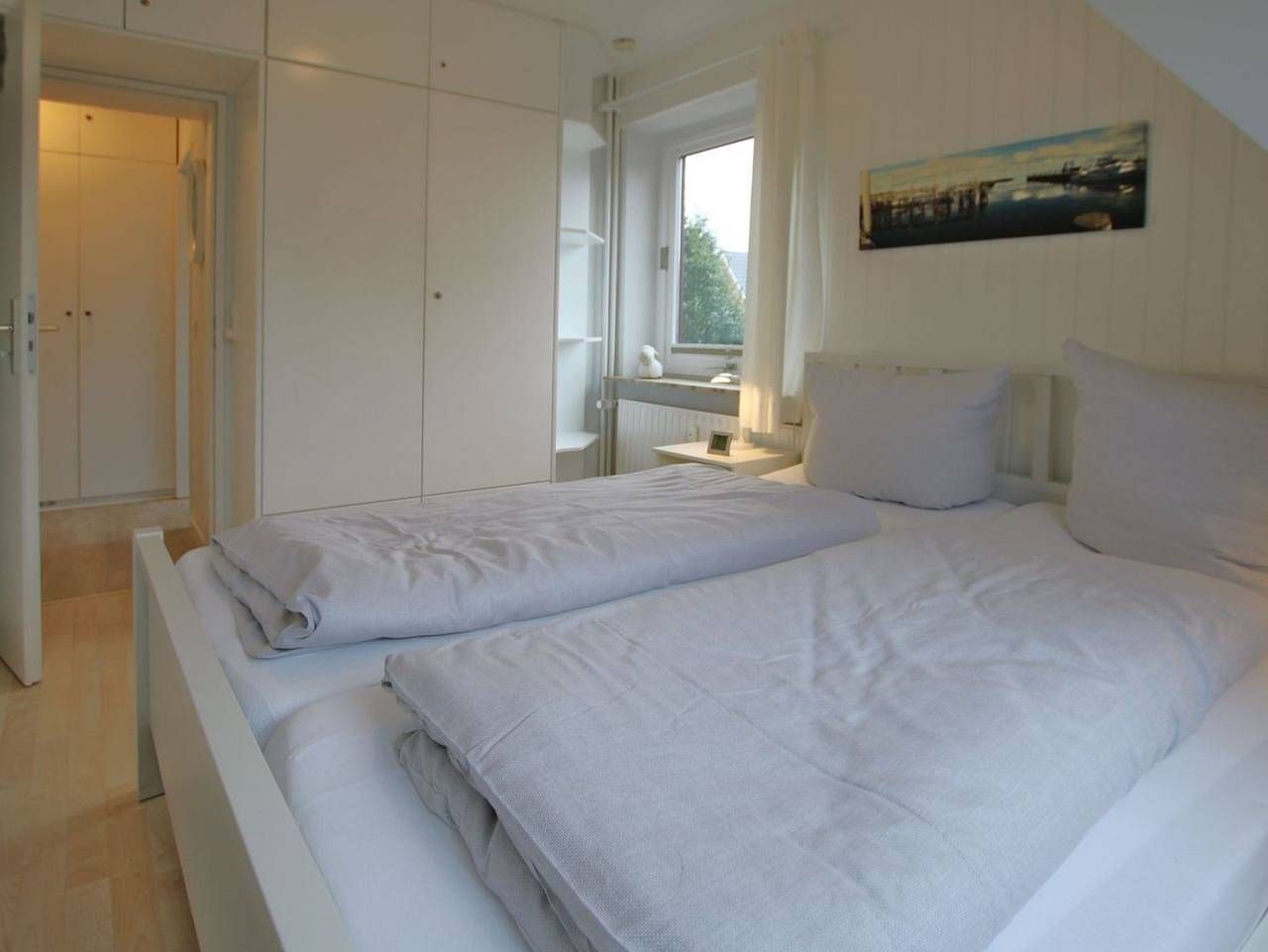 Ferienwohnung in Wyk auf Föhr, Wiesenweg 9,Wohnung Nr.4, Ca. 42 qm 2-Zimmer-Nichtraucherwohnung in der 1.Etage mit 2 Balkonen (Süden und Westen). WOHNZIMMER: gemütlich und neu eingerichtet, Zweierschlafcouch mit Ledersessel (passt auch an den Esstisch) und einen Esstisch mit Stühlen. SEPARATE KÜCHE: Neue Einbauküche mit Cerankochfeld. SCHLAFZIMMER: Doppelbett (1,60 x 2m) und geräumiger Kleiderschrank. BAD: Neu gestaltet mit Dusche/WC und Waschtisch. Fahrradständer am Haus. W-LAN Internetanschluss. Im Gemeinschaftskeller können Sie eine Münzwaschmaschine und ein Münztrockner benutzen. Ca. 10 Minuten Fußweg zum Zentrum und 5 Minuten zum Wellenbad, Kurmittelhaus sowie zum Strand. Wohnung ist mit Laminatboden ausgelegt. Unsere Meinung: Gemütliche und freundliche neue Einrichtung, zentrale und ruhige Lage.