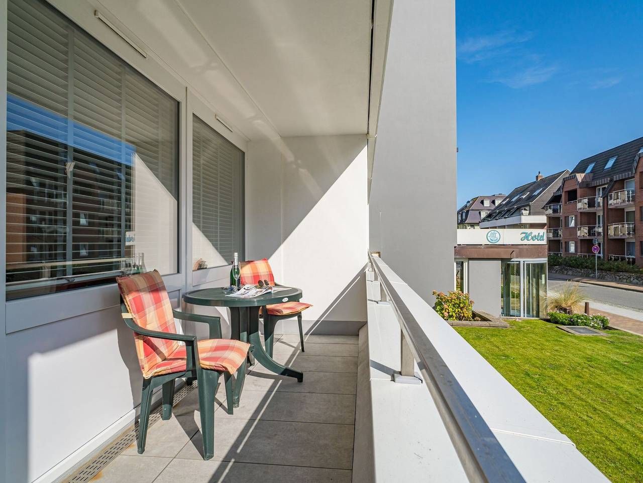 Großzügige 1-Zimmer-Ferienwohnung Besonders komfortable, mit großformatigen, schönen Fliesen ausgelegte 1-Zimmer-Nichtraucher-Ferienwohnung (ca. 36 qm) im Parterre zur Landseite mit Ostloggia (Morgensonne, mit Balkonmöbeln...