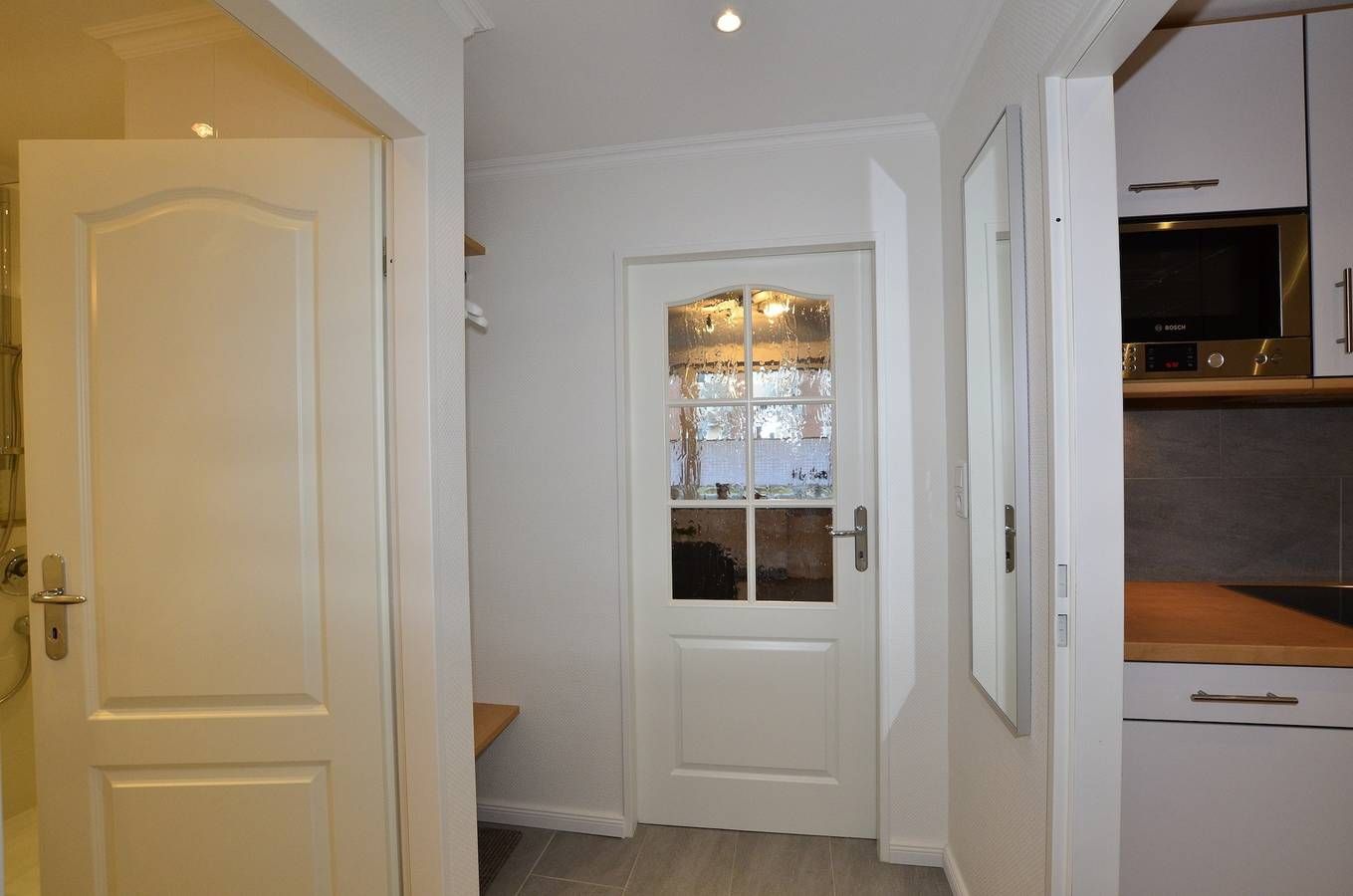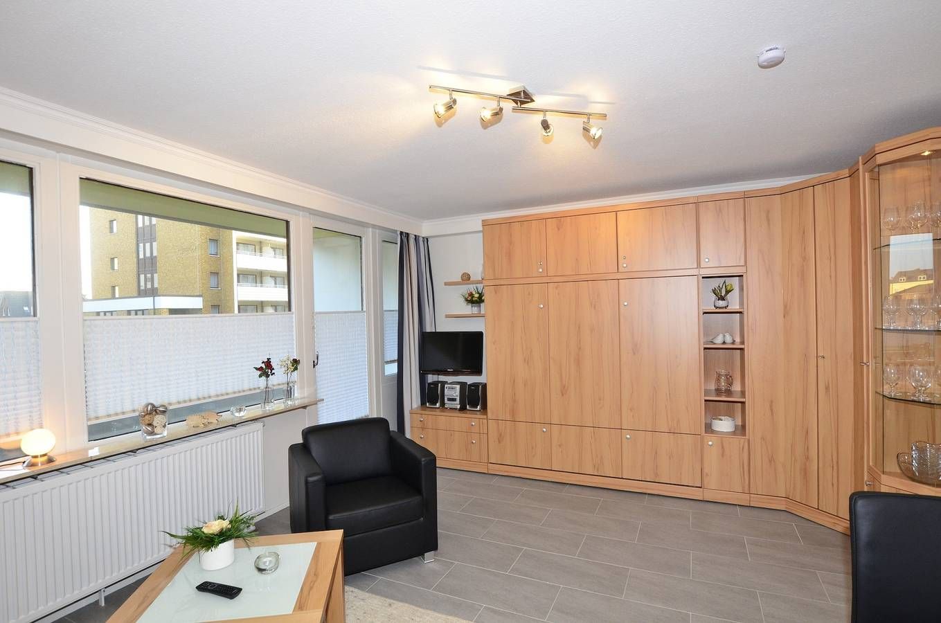 Großzügige 1-Zimmer-Ferienwohnung Besonders komfortable, mit großformatigen, schönen Fliesen ausgelegte 1-Zimmer-Nichtraucher-Ferienwohnung (ca. 36 qm) im Parterre zur Landseite mit Ostloggia (Morgensonne, mit Balkonmöbeln...