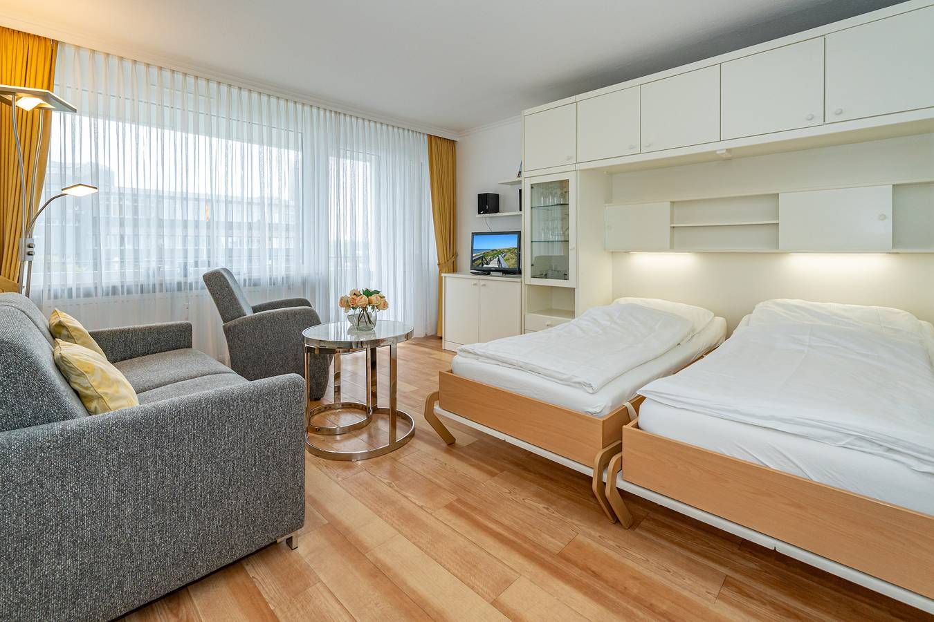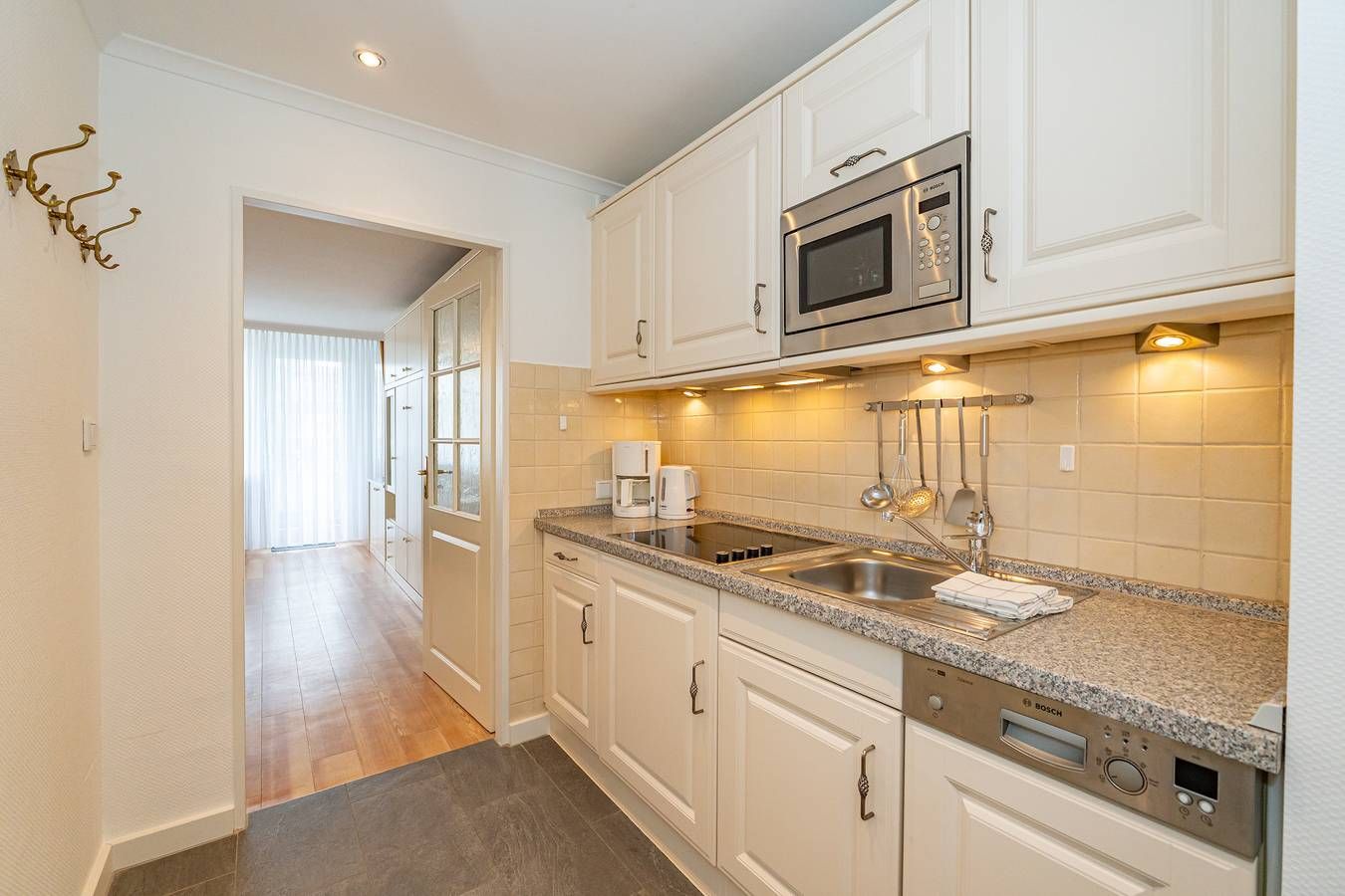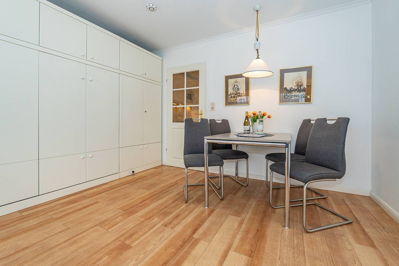 1-Zimmer-Nichtraucher-Ferienwohnung (ca. 32 qm) in der 1. Etage zur Seeseite mit Westloggia (Nachmittagssonne, mit Balkonmöbeln und Auflagen) für max. 2 Personen. Vom Vorflur mit Garderobe und Küchenzeile gelangt man in das kombinierte Wohn-/Schlafzimmer (mit Austritt zum Balkon) und in das Wannenbad/WC. Der Wohn-/Schlafraum mit Laminatboden besteht aus einer Sitzgarnitur (2-Sitzer-Couch, 2 Sessel), einem Doppelschrankbett (einzeln klappbar), Essplatz, Kabel-Flachbild-TV und kostenloser Internetnutzung per W-Lan. Die neue Küchenzeile hat einen Geschirrspüler, eine Mikrowelle und ein Ceranfeld mit 4 Kochstellen. Kaffeemaschine, Wasserkocher und Toaster gehören zur Grundausstattung. Im Bad befinden sich eine Dusche, ein WC, ein Waschtisch und ein Handtuchtrockner. ��️ Stellplatz zu buchbar Eine Duplex-Garage kann für 8,00€/Tag oder ein PKW-Außenstellplatz für 14,00 €/Tag mit gemietet werden (begrenztes Kontingent!). �� Haustiere sind willkommen! Bei Mitbringen eines Haustieres erhöht sich der Tagespreis um 5,00 € pro Haustier zzgl. einer einmaligen Endreinigungspauschale von 10,00 € pro Haustier auf die übliche Endreinigung. Im Haus befindet sich ein kostenloses W-Lan-Netz, das für alle Appartements zugänglich ist.