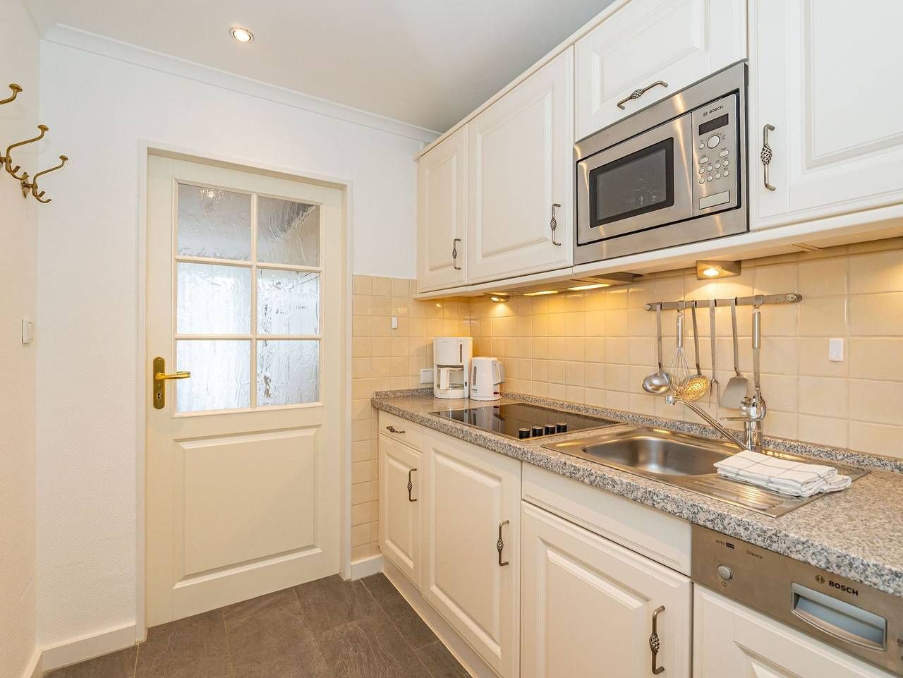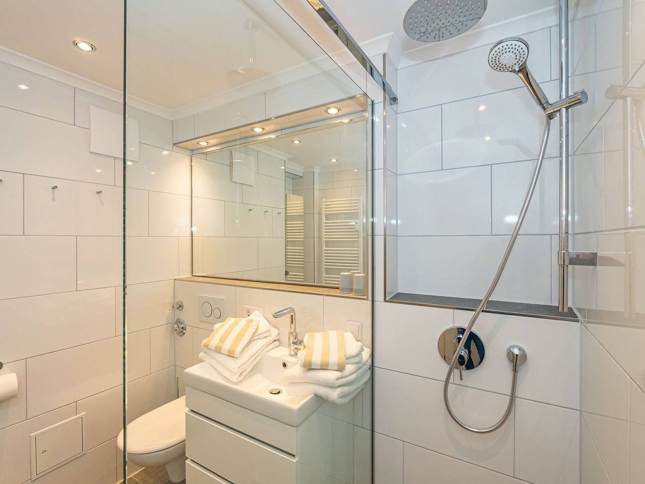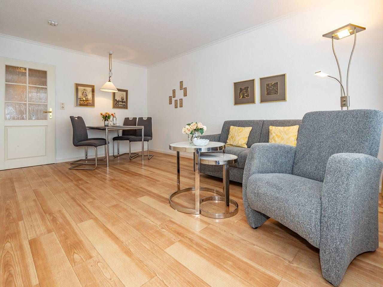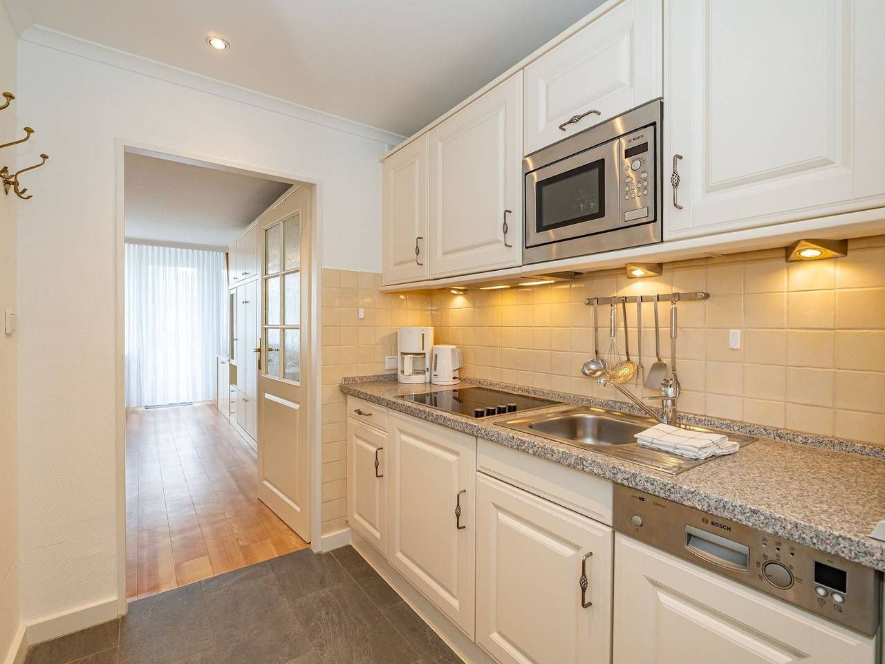 1-Zimmer-Nichtraucher-Ferienwohnung (ca. 32 qm) in der 1. Etage zur Seeseite mit Westloggia (Nachmittagssonne, mit Balkonmöbeln und Auflagen) für max. 2 Personen. Vom Vorflur mit Garderobe und Küchenzeile gelangt man in das...