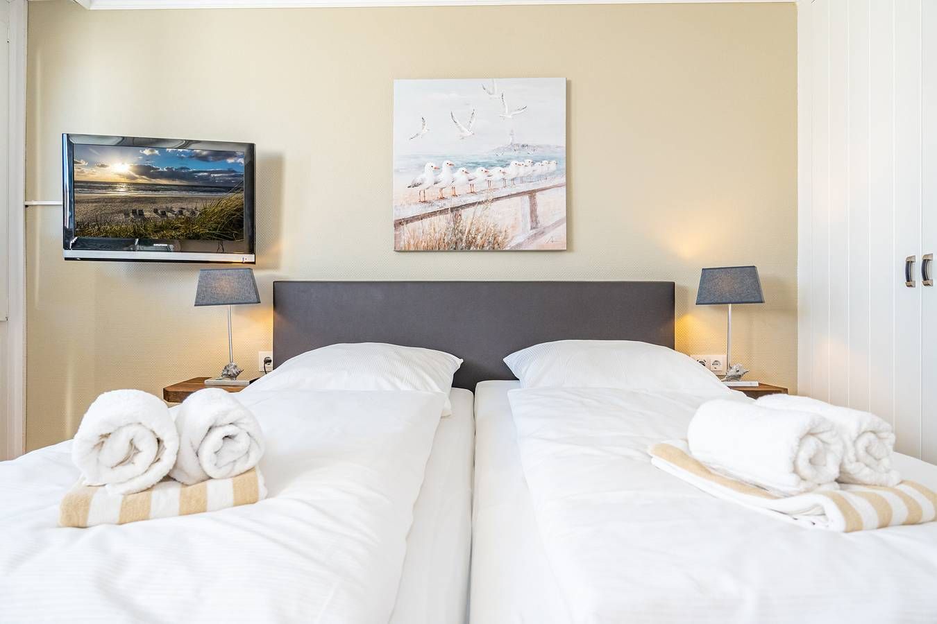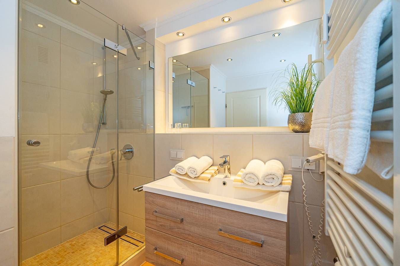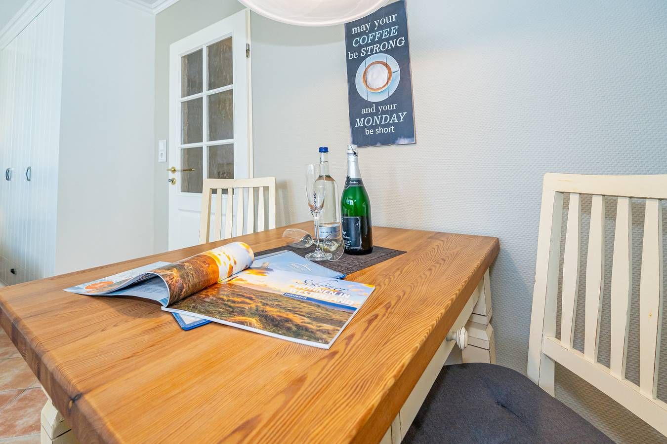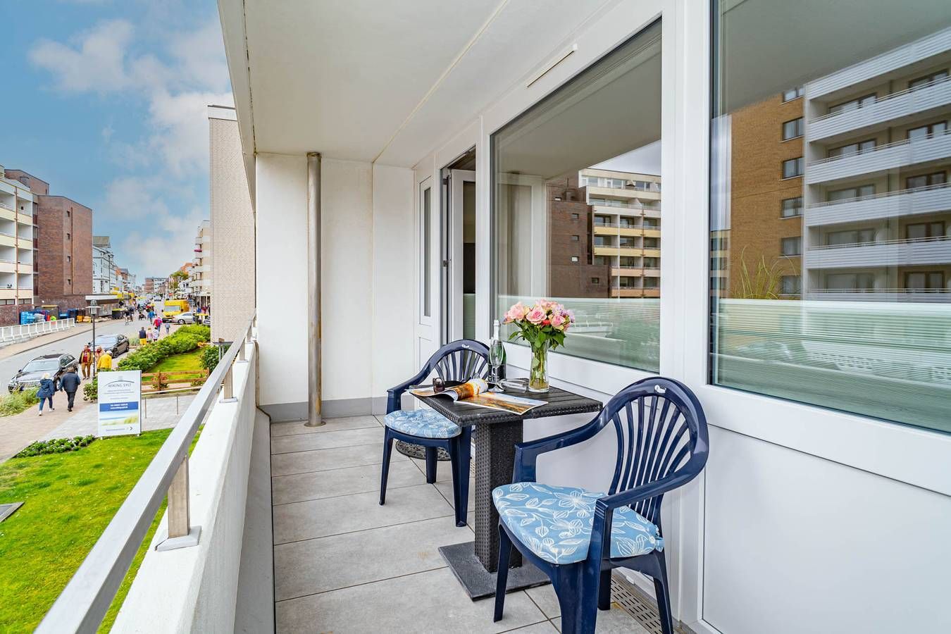 Großzügige City-Ferienwohnung mit feststehendem Doppelbett! Komfortable, komplett mit Fliesen ausgelegte 1-Zimmer-Nichtraucher-Ferienwohnung (ca. 38 qm) in der 1. Etage zur Landseite mit Ostloggia (Morgensonne, Balkonmöbel vorhanden) für max. 2 Personen. Vom Vorflur (mit Garderobe) gelangt man in das kombinierte Wohn-/Schlafzimmer (mit Austritt zum Balkon), in die separate Küche und in das neue Duschbad/WC. Der Wohn-/Schlafraum besteht aus einer gemütlichen Sitzgarnitur (Zweisitzer und einem Sessel mit Fußhocker), einem neues Boxspringbett (zwei Einzelmatratzen), einem Essplatz, Kabel-Flachbild-TV, Radio. Die separate Küche hat einen Geschirrspüler, einen Herd mit Backofen, ein Cerankochfeld und einen Kühlschrank mit 3*-Gefrierfach. Kaffeemaschine, Wasserkocher und Toaster gehören zur Grundausstattung. Das neue, helle Badezimmer ist mit einer Dusche mit extraflachem Einstieg, einem Waschtisch, ein WC und einem festinstallierten Fön ausgestattet. Eine Duplex-Garage kann für 8,00 €/Tag oder ein PKW-Außenstellplatz für 14,00 €/Tag mit gebucht werden (begrenztes Kontingent!). Im Haus befindet sich ein kostenloses W-Lan-Netz, das für alle Appartements zugänglich ist.