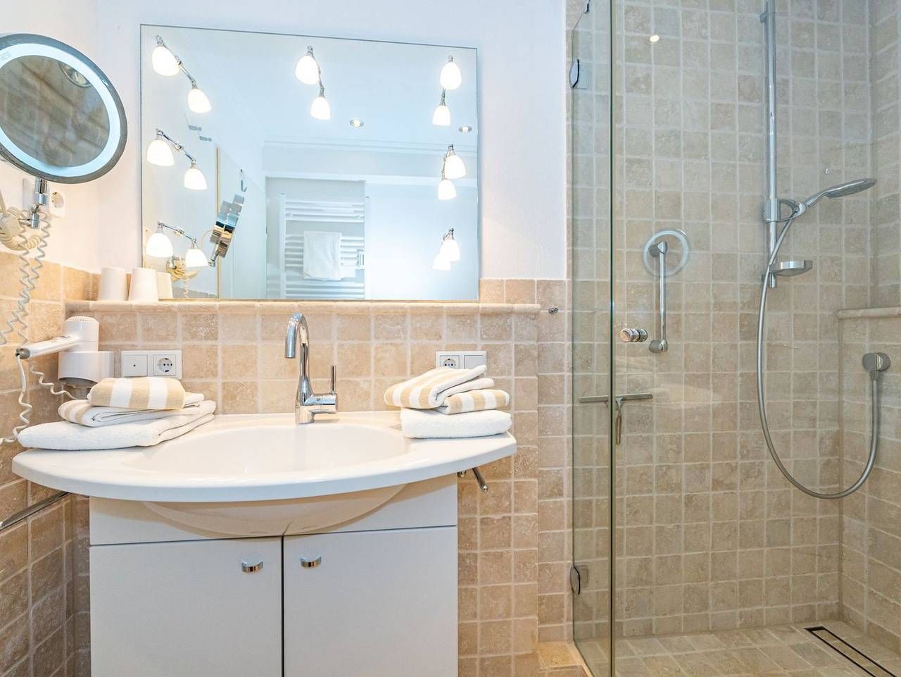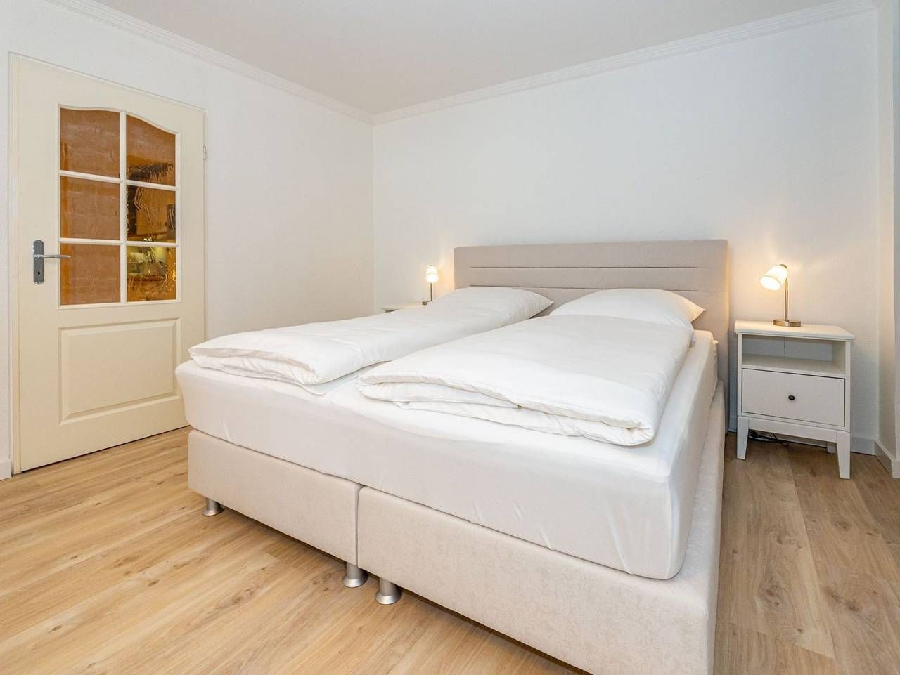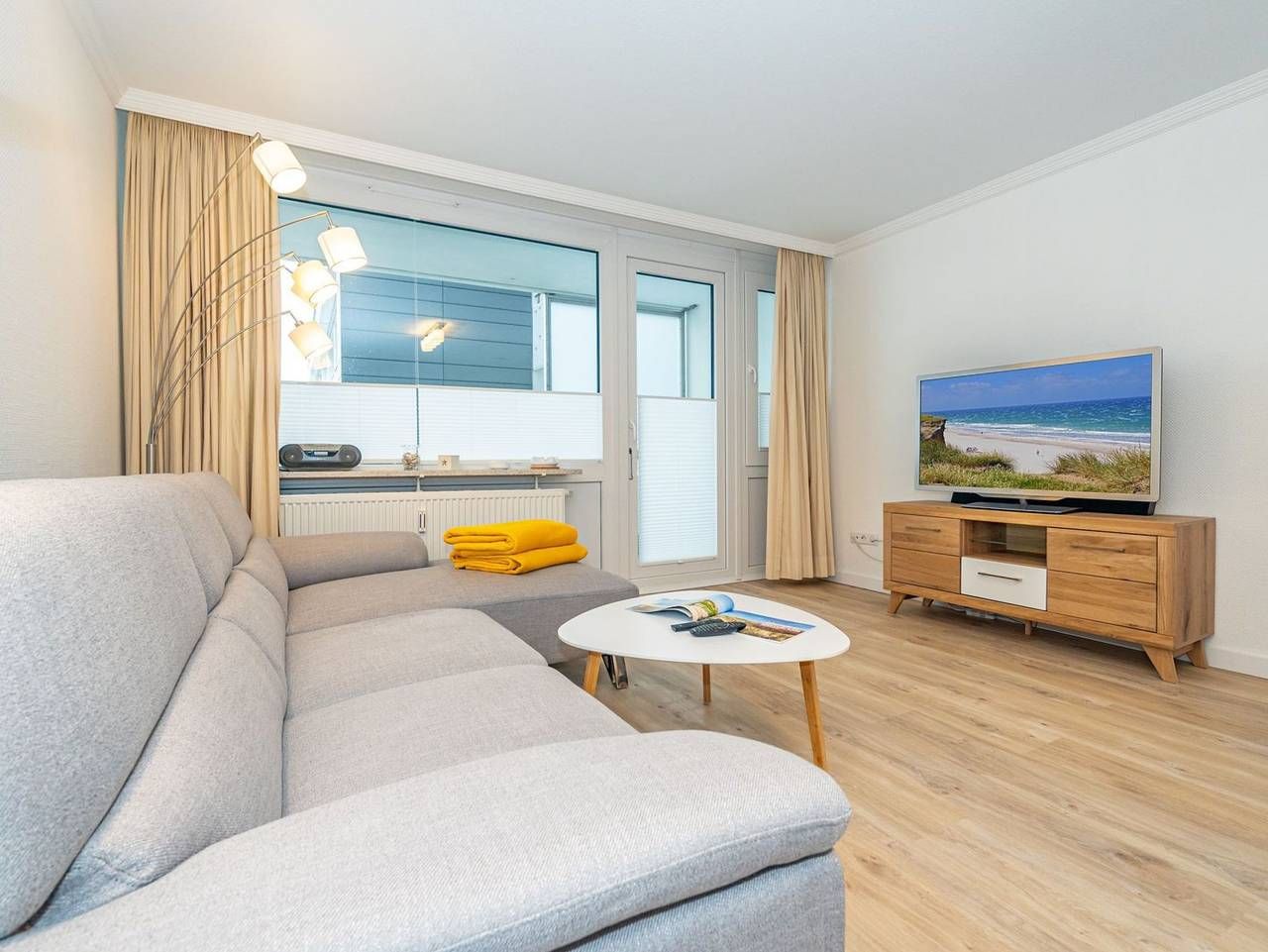 Frisch renovierte großzügige City-Ferienwohnung mit Meerblick! Gemütliche und großzügige 1-Zimmer-Nichtraucher-Ferienwohnung (ca. 44 qm) in der 3. Etage mit Nordloggia und Meerblick (mit Balkonmöbeln und Auflagen) für max. 2 Personen. Vom Vorflur mit Garderobe gelangt man in das kombinierte Wohn-/Schlafzimmer (mit Austritt zum Balkon), die neue Küche und das neue, moderne Duschbad/WC. Das gut geschnittene Zimmer besteht aus einer komfortablen Couch, einem Essplatz, einem Doppelpolsterbett (zwei Einzelmatratzen und Topper), Kabel-Flachbild-TV. Die[nbsp] Küche hat einen Geschirrspüler, ein Cerankochfeld, eine Mikrowelle und ein Kühlschrank mit 3*-Gefrierfach. Kaffeemaschine, Wasserkocher und Toaster gehören zur Grundausstattung. Im[nbsp] modernen Bad befinden sich eine flache Dusche, ein WC, ein Bidet, ein Waschtisch, ein Handtuchtrockner und ein Fön. Eine Duplex-Garage kann für 8,00 €/Tag oder ein PKW-Außenstellplatz für 14,00 €/Tag mit gebucht werden (begrenztes Kontingent!). Haustiere sind nicht gestattet! Im Haus befindet sich ein kostenloses W-Lan-Netz, das für alle Appartements zugänglich ist.