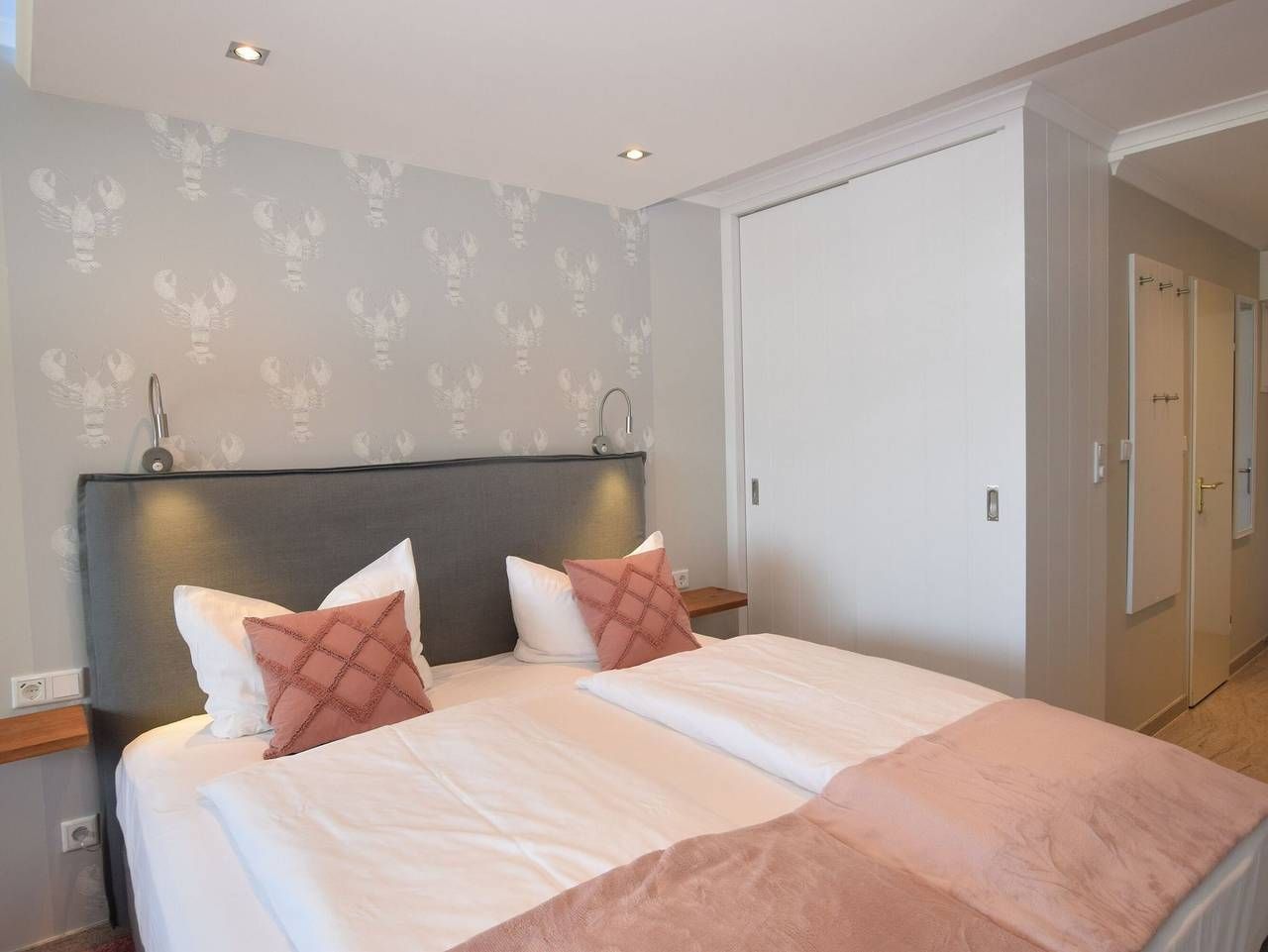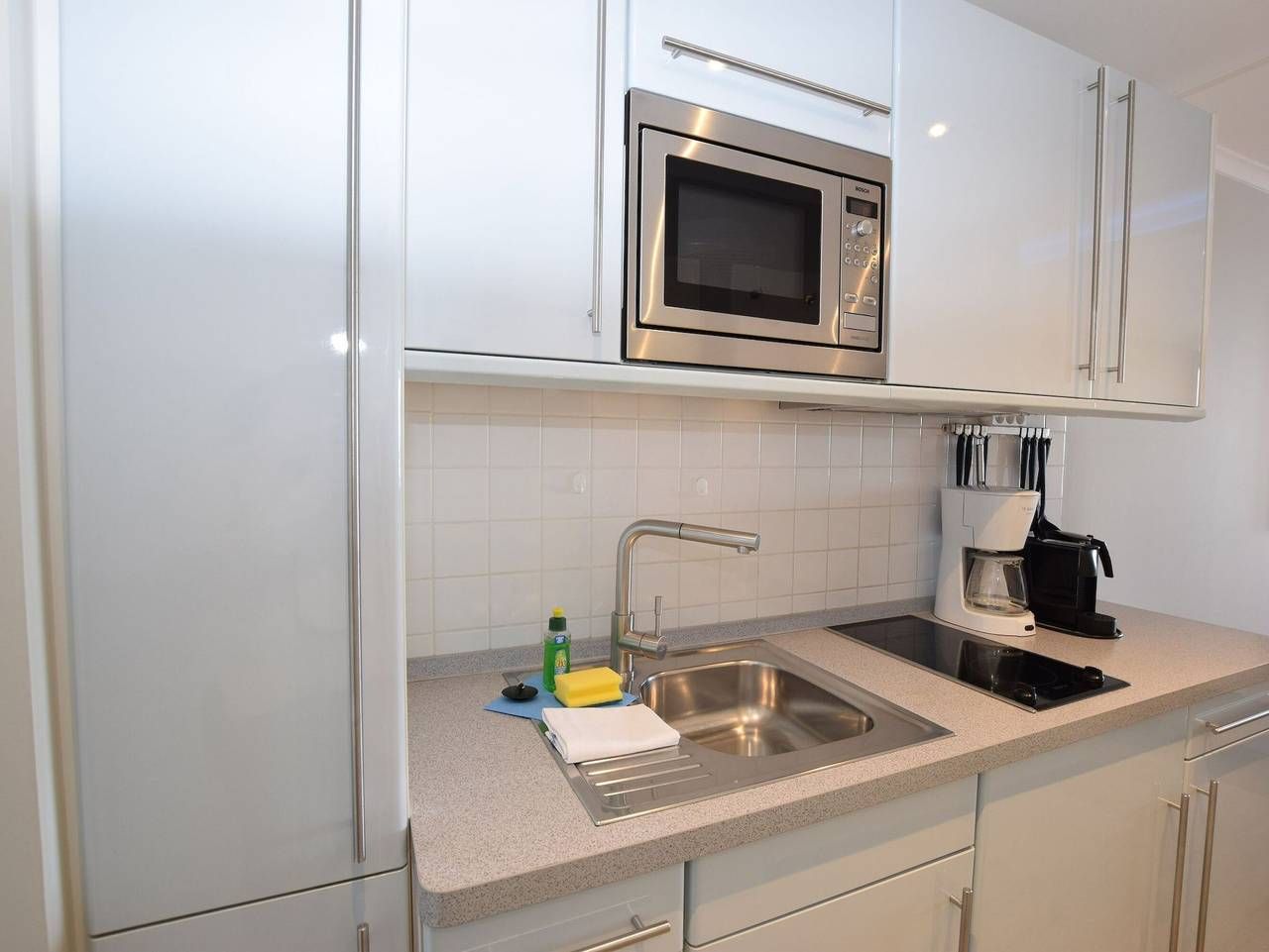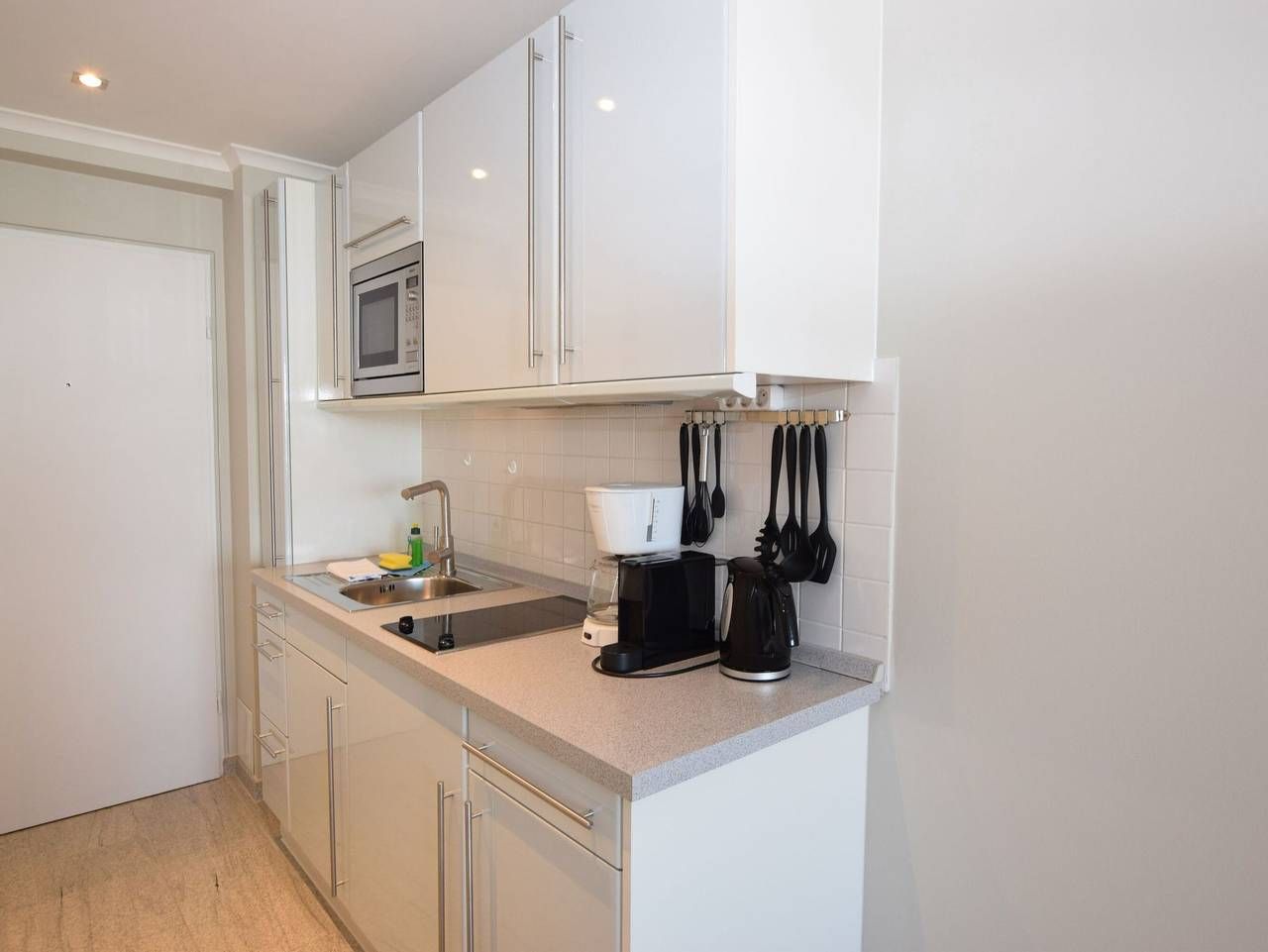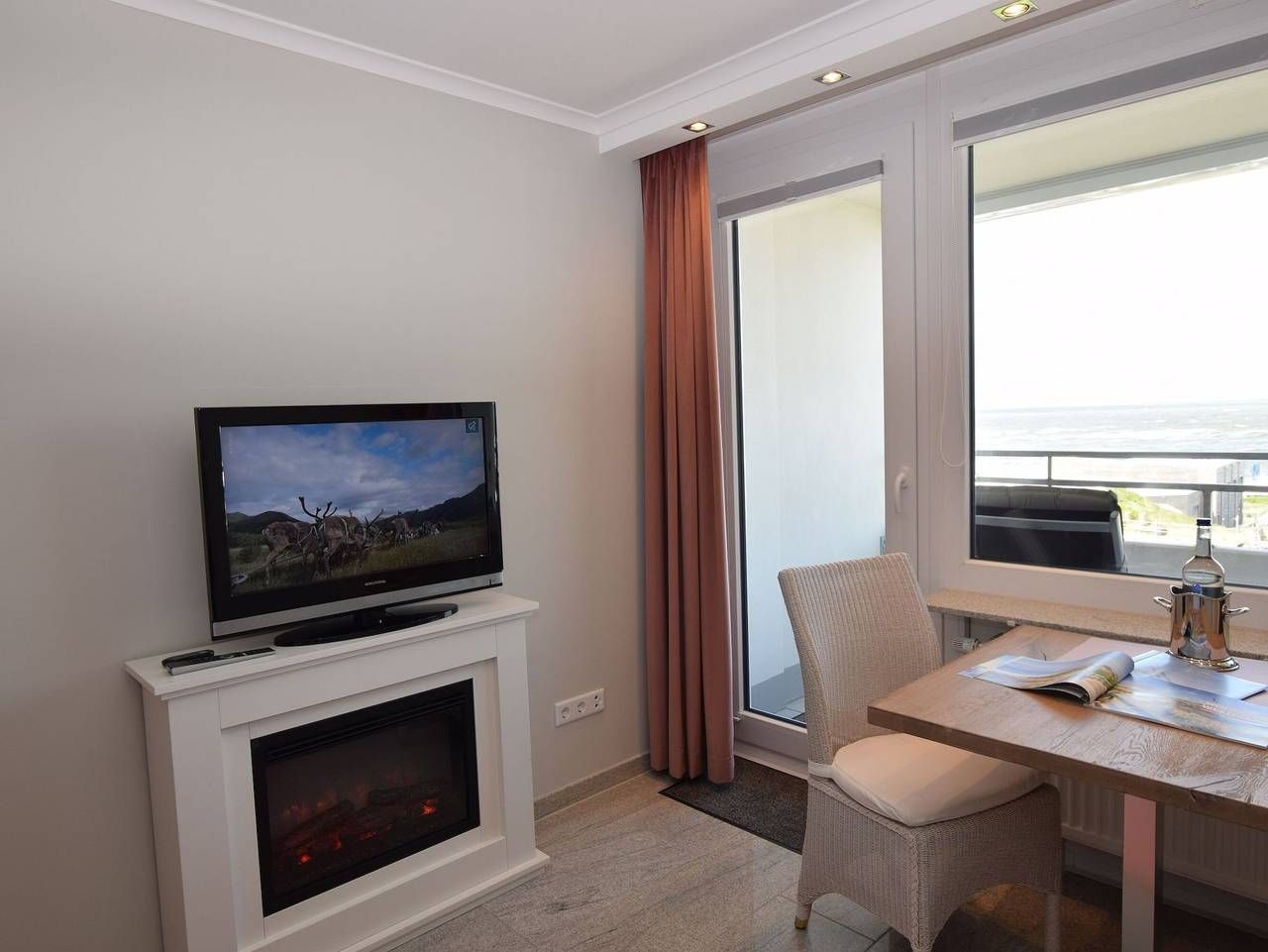 Exklusive Spitzenlage mit herrlichem Meerblick! Schicke, komplett geflieste 1-Zimmer-Nichtraucher-Ferienwohnung (ca. 25 qm) in der 6. Etage (letzte Etage zu Fuß) zur Seeseite mit Westloggia und herrlichem Meerblick (Nachmittagssonne mit Balkonmöbeln und Auflagen) für max. 2 Personen. Vom Vorflur mit Garderobe und Küchenzeile gelangt man in das kombinierte Wohn-/Schlafzimmer (mit Austritt zum Balkon) und in das moderne Duschbad/WC. Der gemütliche Wohn-/Schlafraum mit Marmorboden besteht aus einem Essplatz, einem guten feststehenden Doppelbett, Flachbild-TV, Digitalradio. Die moderne Küchenzeile hat ein Cerankochfeld, eine Mikrowelle mit Grillfunktion und einen Kühlschrank mit 3*-Gefrierfach. Nespresso- und Filterkaffeemaschine, Wasserkocher und Toaster gehören zur Grundausstattung. Im Bad befinden sich eine flache Dusche, ein WC, ein Waschtisch, ein Handtuchtrockner und ein Fön. Die 5.-te Etage erreicht man zügig über die zwei Doppel-Fahrstühle im Haus, die letzte Etage ist nur zu Fuß erreichbar. Eine Duplex-Garage kann für 8,00 €/Tag oder ein PKW-Außenstellplatz für 14,00 €/Tag mit gebucht werden (begrenztes Kontingent!). Haustiere sind hier leider nicht gestattet. Im Haus befindet sich ein kostenloses W-Lan-Netz, das für alle Appartements frei zugänglich ist. Die zwei Doppelfahrstühle im Haus bringen Sie zügig in die 5. Etage, die letzte Etage erreicht man über das Treppenhaus zu Fuß. [nbsp]