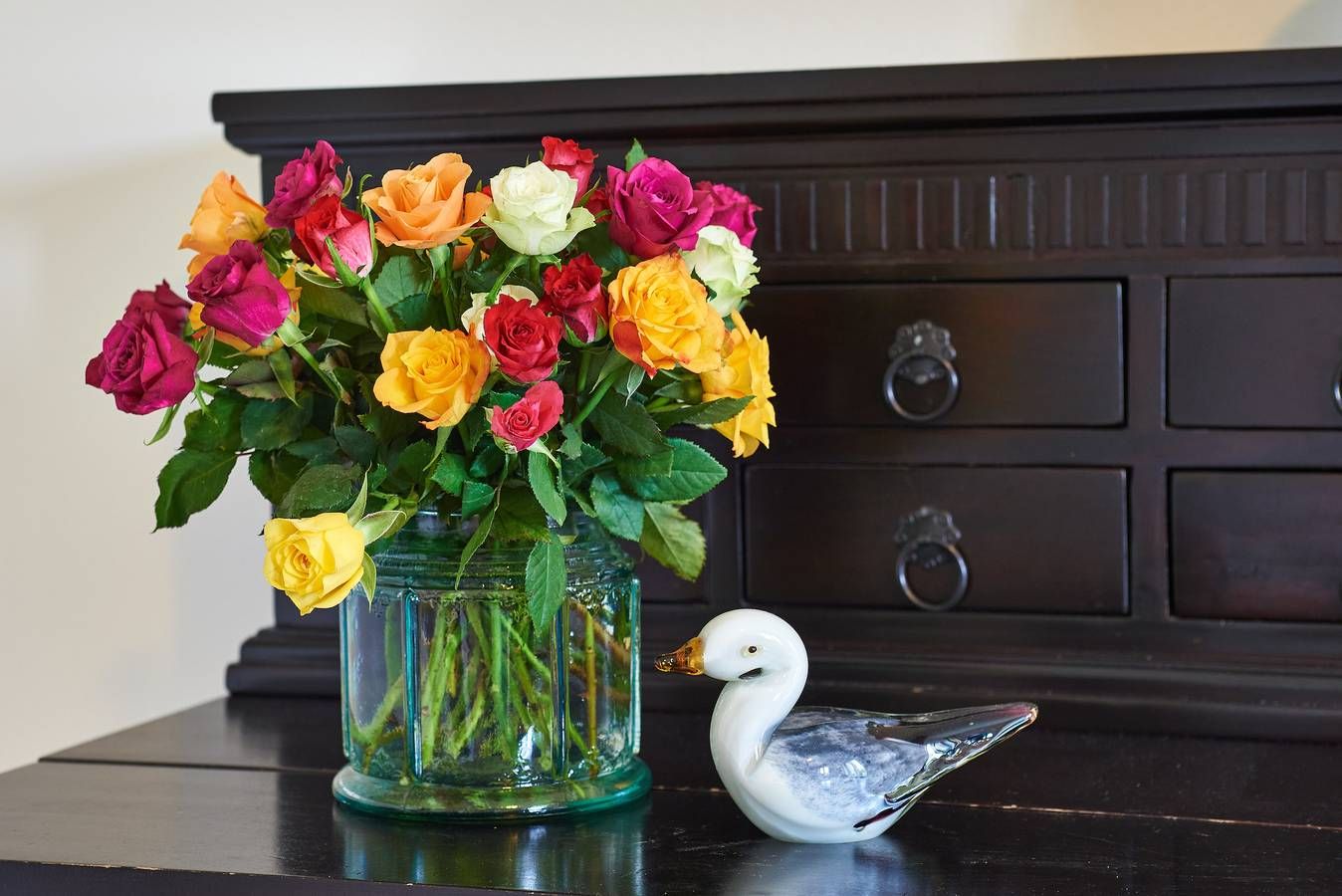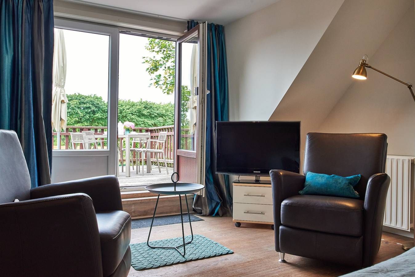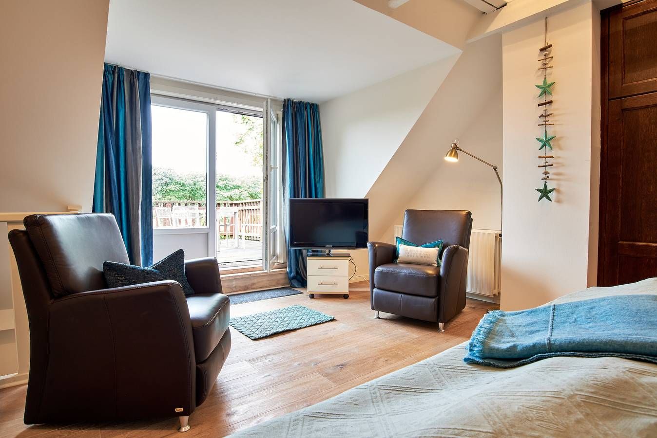 In idyllischen Friesendörfchen Nieblum liegt unser charmantes Domizil Wildrose mit einer schönen Dachterrasse und einem kleinen Garten. Mitten im Herzen des wunderschönen und idyllischen Ortes Nieblum, welcher unter vielen Liebhabern der Insel als schönster Ort auf Föhr gilt, befindet sich dieses Juwel nur wenige Meter entfernt vom schön angelegten und gepflegten Nieblumer Ententeich. Nieblum ist ein kleines Inseldorf, nur ca. 5 Km von der Stadt Wyk entfernt und bietet alles, was man zum täglichen Bedarf benötigt. Es gibt einen kleinen Einkaufsladen, eine Bäckerei mit hervorragenden Brötchen, Broten und süßen Gaumenfreuden, mehrere Restaurants und Cafes, eine unter den Föhrern sehr beliebte Eisdiele und natürlich einen schönen Strand mit Surfschule. Und genau in diesem hübschen Dorf liegt unsere Haushälfte Wildrose mit seinen 65 qm. Schon beim Betreten des Hauses werden Sie die offene und großzügige Bauweise der Doppelhaushälfte bemerken. Der geräumige Flur bietet reichlich Platz und von hier führt eine Treppe hinauf in den Schlafbereich, welcher mit der offenen Balkenlage, den dunklen, edlen Möbeln im Kontrast zum hell gestalteten Raum sogleich Gemütlichkeit ausstrahlt. Zugleich befindet sich im Schlafraum neben dem Boxspringbett (160x200cm) eine weitere Sitzgruppe zum Lesen, Fernsehschauen, Telefonieren oder einfach zum Entspannen und Zurückziehen. Von hier aus gelangen Sie auch auf die große Dachterrasse, die im Sommer (ca. April bis Ende September Anfang Oktober) mit Gartenmöbeln zum Verweilen einlädt. Die übrigen Räume befinden sich im Erdgeschoss der Wohnung und sind, ebenso wie das Schlafzimmer, farblich harmonisch aufeinander abgestimmt und mit hochwertigen Möbeln ausgestattet. Genießen Sie Ihre Urlaubstage und Relaxen Sie im behaglich eingerichteten Wohnzimmer mit internetfähigem TV und Bluetooth-fähiger Anlage mit CD und Radio. Hier befindet sich ein ausziehbares Schlafsofa mit einer Liegefläche von 140x200 cm für einen dritten Gast oder als Ausweichmöglichkeit. In der seitlichen Bettbox sind Decken und Kissen schnell verstaut, um in den Tag zu starten. Probieren Sie sich an friesischen Rezepten, denn in der voll ausgestatteten, offenen Küche macht Kochen richtig Freude. Das wunderschöne Bad mit riesigem Spiegel, Handtuchheizkörper und hochwertiger Dusche lässt Sie gut in den Tag starten. Am Haus befindet sich ein PKW-Stellplatz und im Garten eine weitere Sitzecke. Die Wildrose bietet Gästen einen zusätzlichen Aufenthaltsraum im Keller, der von außen begehbar ist. Hier steht Ihnen ein vollwertiges Badezimmer und eine Sauna mit Aufenthaltsraum und Sitzgruppe zur Verfügung sowie die kostenfreie Nutzung von Waschmaschine und Trockner. Diese Annehmlichkeiten erhöhen den Komfort und die Flexibilität während ihres Aufenthalts. Ihr Hund (max. 2) ist bei uns ebenfalls in der Wildrose willkommen. Verbringen Sie Ihren Urlaub in dieser bezaubernden Haushälfte im idyllischen Nieblum und schauen Sie gleich nach, ob Ihr Wunschtermin noch verfügbar ist. Die Eigentümerin stellt einen Grill zur Verfügung, solange dieser von den Gästen pfleglich behandelt und nach Gebrauch gereinigt wird. Bei Auswahl eines Kinderreisebetts wird dieses anstelle eines normalen Bettes bezogen. Sollten Sie das Kinderreisebett zusätzlich benötigen, buchen Sie bitte ein weiteres Wäschepaket hinzu, da wir nur bezogene Kinderreisebetten verleihen. Im vom außen begehbaren im Keller liegenden Zusatzraum befindet sich noch ein zusätzliches Vollbad mit Dusche und Ruheraum. Hier befindet sich auch die Sauna. ---------------------------------------- 2025: Infos zum Wäschepaket (obligatorisch): Unser Wäschepaket besteht aus der bezogenen Bettwäsche, 1 Duschtuch, 2 Handtüchern, 1 Geschirrtuch und einem Badvorleger und gehört obligatorisch zur Buchung dazu. Ab 21 Übernachtungen bieten wir auf Wunsch einen kostenfreien Wäschewechsel an. Zusätzlich können Handtücher und Duschtücher optional nach Bedarf einzeln hinzugebucht werden. Ab 2026 mehr Flexibilität und Individualität: Das bekannte Wäschepaket ist nicht mehr buchbar. Die Bettwäsche bleibt aus hygienischen Ansprüchen eine obligatorische Serviceleistung. Sie finden die Betten weiterhin bezogen vor. Doch Hand- und Duschtücher können Sie künftig entweder selbst mitbringen oder auf eigenen Wunsch einzeln optional hinzubuchen. Diese Variante ist aus betrieblichen Gründen erst für Buchungen in 2026 buchbar und entspricht dem Gästewunsch laut Umfrage nach mehr Flexibilität, Individualität und Nachhaltigkeit! Infos zum Präsentkorb Föhrer Inselkäse für 2 oder 4 Personen (Inhalte nicht austauschbar) Der Föhrer Präsentkorb für 4 Personen enthält: 200g Föhrer Naturkäse, 200g roten Föhrer Fruchtaufstrich, 430g Alkersumer Gemüsetopf, 6 Stangen (ca. 160g) Wattwürmer, 150g Landleberwurst , 125ml Föhrer Chutney und 0,33l Föhrer Biar. Der Föhrer Präsentkorb für 2 Personen enthält: 200g Föhrer Bärlauch-Käse, 200g Föhrer Fruchtaufstrich Apfel-Zimt, 430g vegane Linsenbolognese und ca. 130g mildem Landschinken vom Schwein.