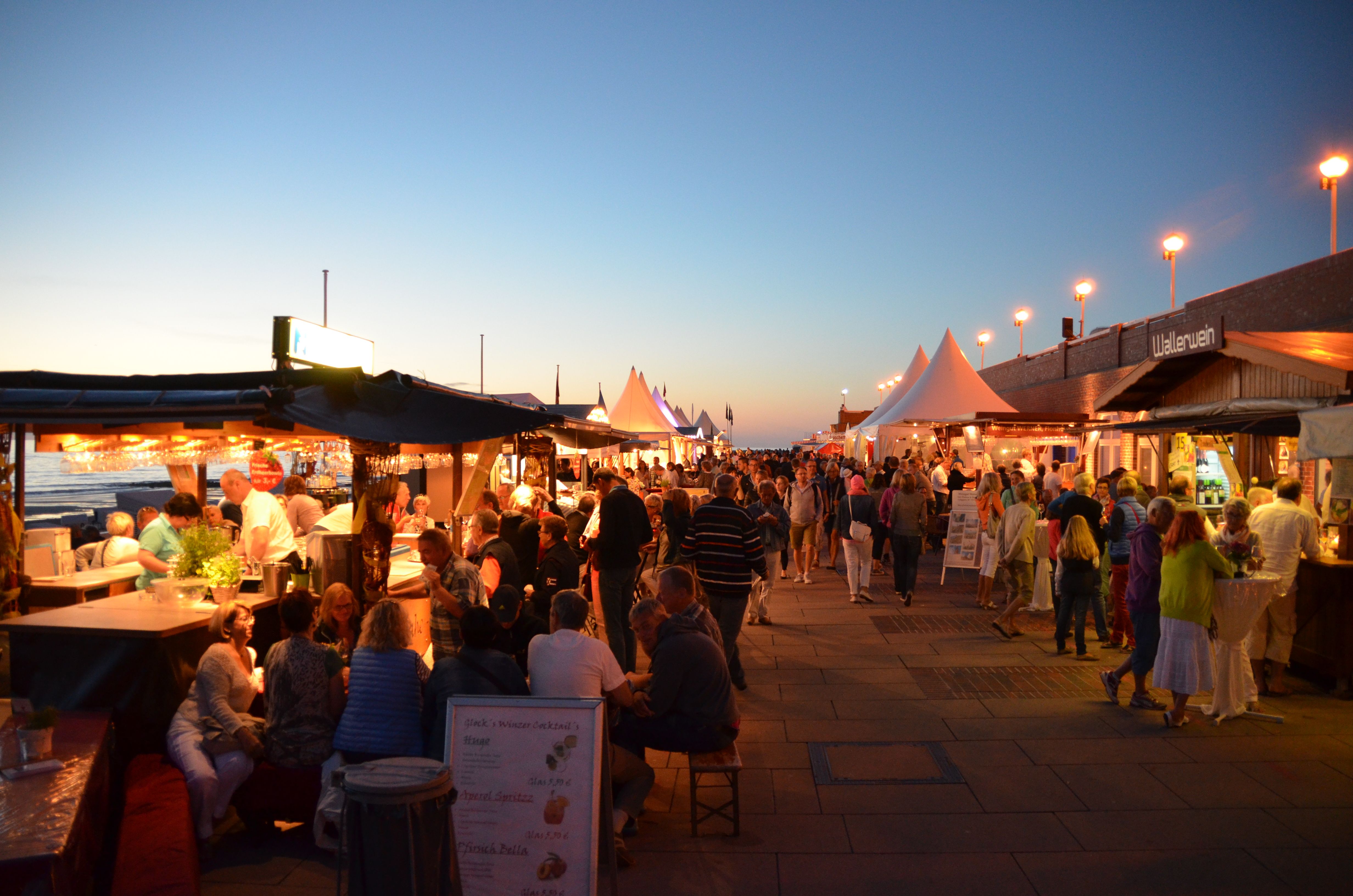 Begleitet wird das Weinfest an der Nordsee von einem vielfältigen kulinarischen Angebot: Zahlreiche Stände bieten passende Spezialitäten an – von feinem Käse bis zu mediterranen Häppchen. Für die passende Stimmung sorgt täglich Live-Musik an der Musikmuschel, die mit stilvollen Klängen den Abend untermalt. Die einzigartige Kulisse der Strandpromenade, die frische Nordseeluft und die gesellige Atmosphäre machen das Winzerfest zu einem ganz besonderen Highlight im Sylter Veranstaltungskalender. Die entspannte Stimmung lädt dazu ein, neue Weine zu entdecken, ins Gespräch zu kommen, zu tanzen oder einfach den Moment zu genießen. Besonders die farbenprächtigen Sonnenuntergänge über dem Meer verleihen dem Fest einen unvergesslichen Zauber. Hier feiern Urlauber und Insulaner gemeinsam in lockerer, sommerlicher Atmosphäre – ein perfekter Treffpunkt für Genießer, Musikliebhaber und Sylt-Fans. Das Westerländer Winzerfest ist weit mehr als eine Weinverkostung – es ist ein Fest für alle Sinne.