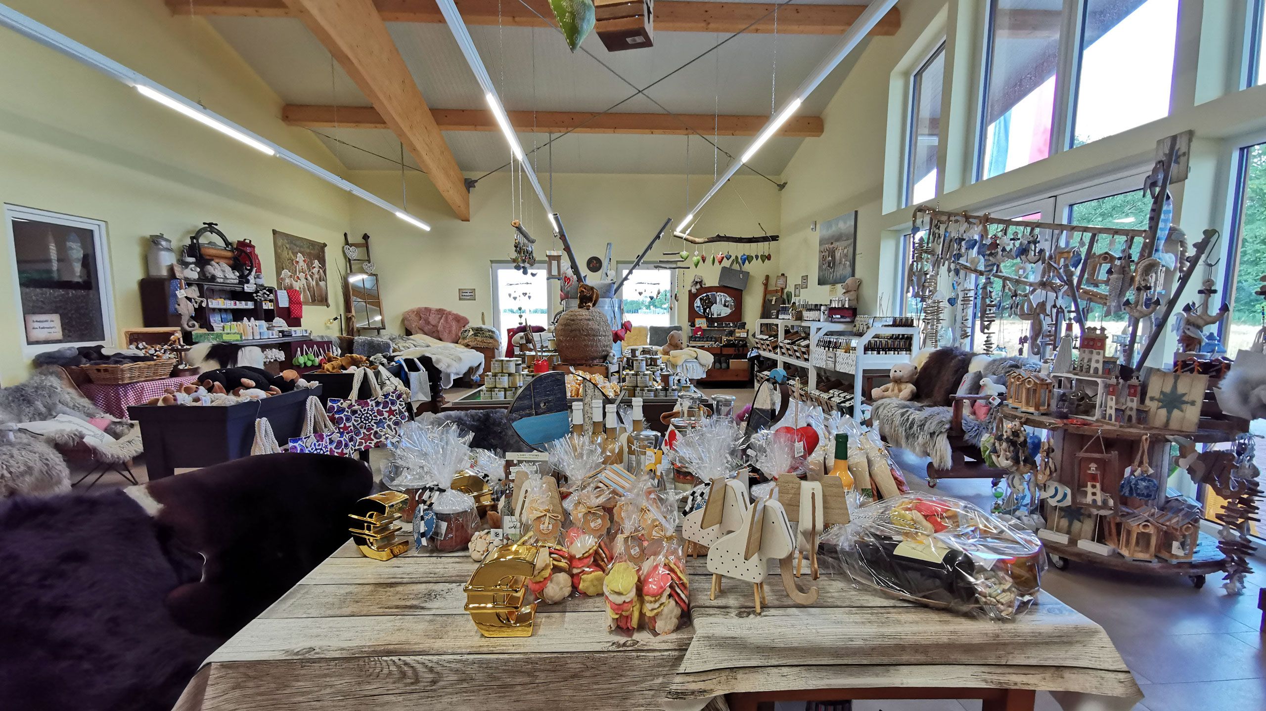 Zudem können Sie sich zwischen zahlreichen Schafsfellen, von denen jedes einzelne ein Unikat ist, wohlfühlen. Außerdem gibt es hier Dithmarscher Honig, selbstgekochte Marmeladen, eingelegtes Gemüse, Süßes, Seifen und Schönes zum Dekorieren.