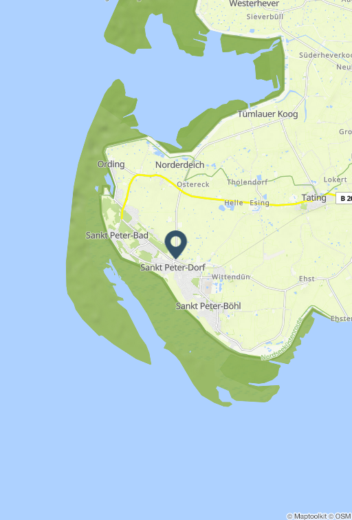 Fewo für zwei mit Hund samt großem Südbalkon Die Wogemann II, Wohnung 12 im 2.OG/DG ist 55qm groß und bietet ausreichend Platz für bis zu 2 Personen, die mit ihrem Hund Urlaub machen möchten. Im Wohn-Essbereich sitzen Sie gemütlich unter der Dachschrägen auf dem großen Sofa vor dem Flat-TV, surfen via WLAN im Internet, lesen eins der vorrätigen Bücher oder hören Musik über die Stereoanlage. Die Fensterfront lässt angenehm viel Tageslicht herein und lockt möbliert mit einer Sitzgruppe und Sonnenliegen nach draußen. Hier oder am Esstisch starten Sie mit einem gemeinsamen Frühstück in Ihren Urlaubstag. Die offene Küche verfügt über eine umfangreich ausgestattete Küchenzeile mit u.a. Elektro-Gasherd mit 4 Kochstellen, Mini-Backofen, Mikrowelle und Geschirrspülmaschine. Abends kommen Sie im separaten Schlafzimmer auf dem Doppelbett zur Ruhe. Eine weitere Schlafmöglichkeit lässt sich durch die Schlaffunktion der Couch schaffen. Ein Babyreisebett mit Matratze ist ebenfalls kostenfrei nutzbar und im Objekt vorhanden. Das Duschbad verfügt über ein Waschbecken mit Spiegelschrank, geräumige Ablagen und ein WC. Wäschepakete, nur Bettwäsche oder separate Handtuch-Sets können Sie gerne bei uns nach individuellem Bedarf dazu buchen. Die Wohnung hat einen separaten Eingang und der große Balkon (Rasenteppich) ist m und für Ihr Auto einen Stellplatz pro Wohnung auf dem Parkplatz des Hauses. Für Ihre Räder gibt es einen Fahrradunterstand oder einen abschließbaren Schuppen und für Ihr Auto einen Stellplatz pro Wohnung auf dem Parkplatz des Hauses. Die großzügige Ferienanlage liegt in St.Peter-Ording im Ortsteil 'Dorf' am Ortsrand mit Blick auf das Eiderstedter Marschenland. Das Zentrum mit seinem historischen Ortskern, dem Marktplatz, Museum, zahlreichen Cafés, Restaurants und Einkaufsmöglichkeiten erreichen Sie mühelos in wenigen Gehminuten. Der Nordseedeich mit dem Strandabschnitt Süd ist ebenfalls gut erreichbar.