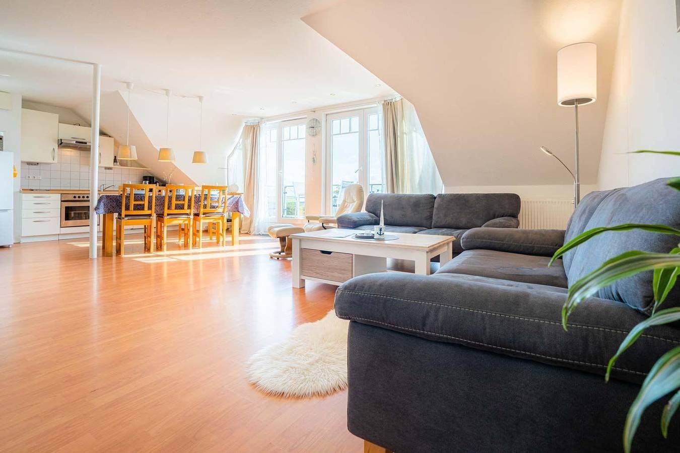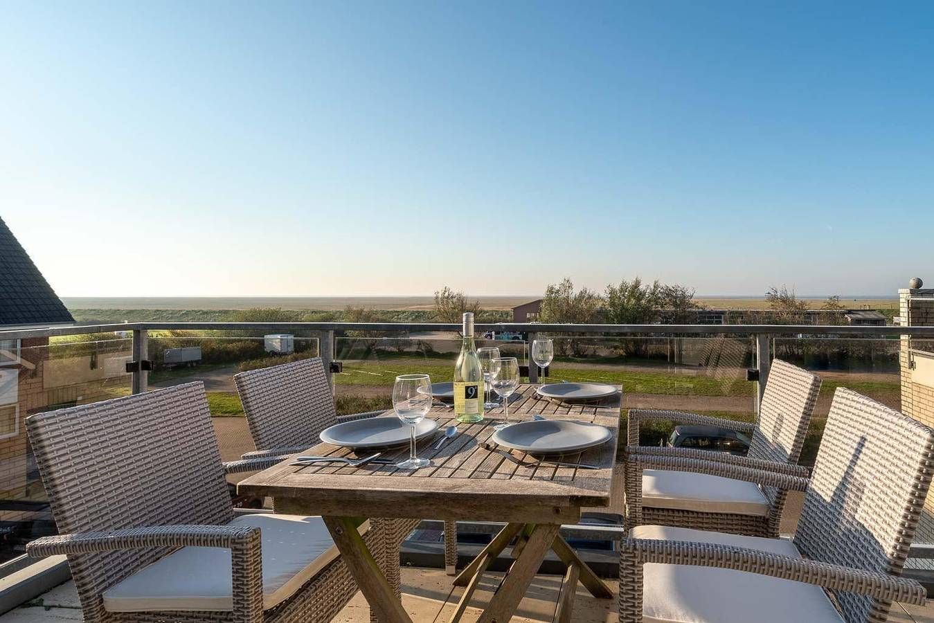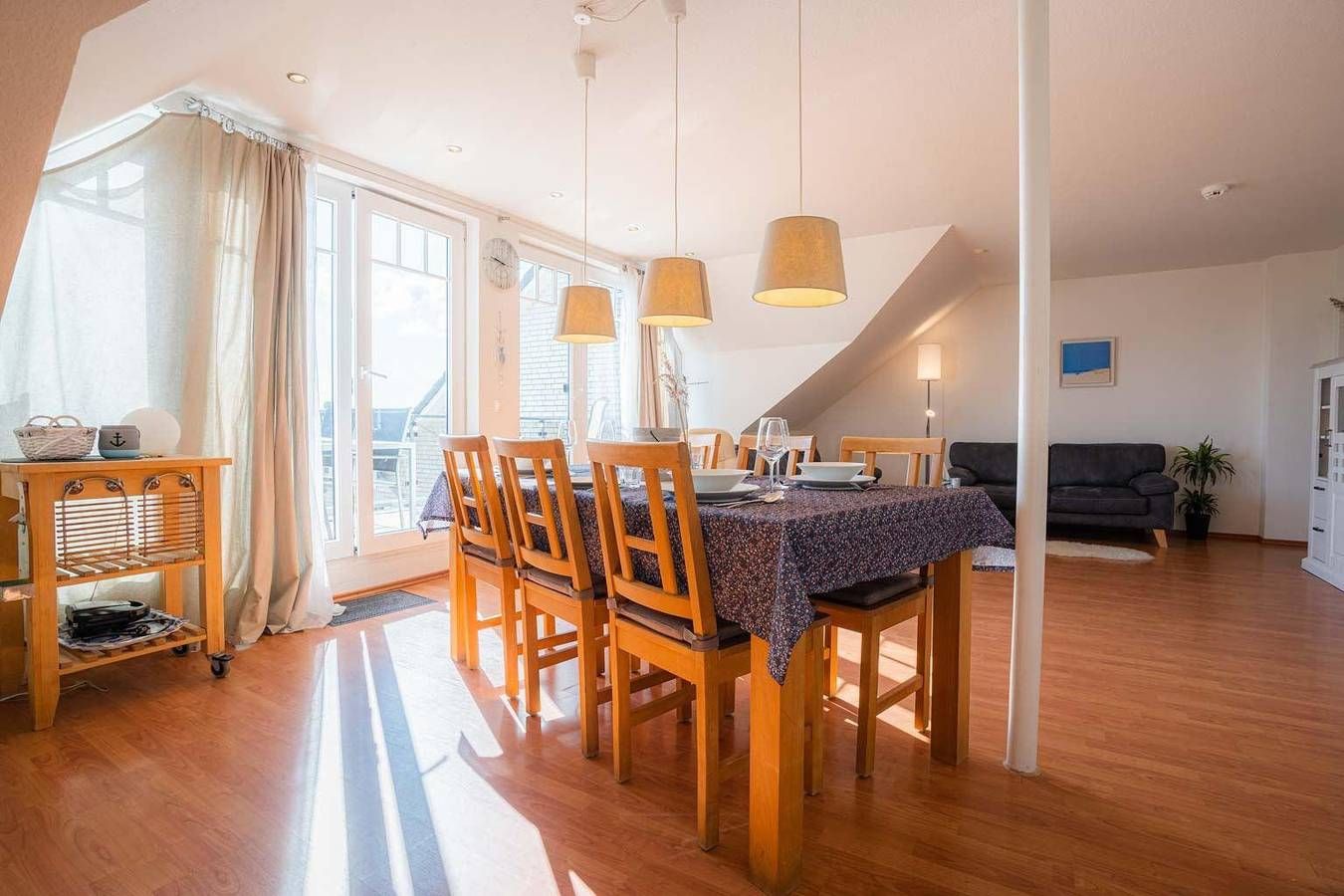 Komfortable Fewo am Strand - mit Meerblick. Hund willkommen. Kostenloses WLAN. Komfortabel. Strandnah. Am Golfplatz. Exklusive 3-Zimmer-Ferienwohnung 'frei & salzig' im Haus 'Nordseeblick' mit ca. 72 m² auf 2 Ebenen (1. OG, 2. OG) für bis zu 4 Personen. In ruhiger Lage direkt am Strandübergang im Ortsteil Böhl in St. Peter-Ording. Zum Deich und dem Meer sind es nur wenige Gehminuten und das Grundstück grenzt an den Nordsee Golfclub. Ideal für Familien mit Kindern oder für Naturliebhaber, aber auch für Golfer. Genießen Sie den einmaligen Panorama-Meerblick vom sonnigen Südbalkon und aus dem komfortablen Wohnzimmer. Hunde sind herzlich willkommen. Wohnzimmer mit zwei Sofas, Ledersessel mit Fußhocker, großem TV (Sat), BluRay-Player, Bluetooth-Soundanlage, Esstisch mit 6 Stühlen und direktem Zugang zum großen möblierten Südbalkon mit Meerblick bis zu den Pfahlbauten. Offene Küche mit Backofen, Mikrowelle, Kühl-Gefrier-Kombination und Geschirrspüler. 1. Schlafzimmer mit Doppelbett (2x 90x200cm), Kleiderschrank und kleinem Arbeitsplatz. 2. Schlafzimmer mit 2 Einzelbetten (je 90x200cm), Kleiderschrank, kleinem Arbeitsplatz sowie Regal mit Spielsachen und Kinderbüchern. Badezimmer (Duschbad) mit Dusche, WC und Föhn. Flur mit Garderobe, Spiegel und Schuhregal im Eingangsbereich im 1. OG. Sehr praktisch, um Gummistiefel, Strandspielzeug und nasse Jacken nicht in den Wohnbereich mitnehmen zu müssen. Pkw-Stellplatz vorhanden, Fahrradständer direkt vor der Haustür. Abschließbarer Fahrradabstellraum, gemeinschaftliche Waschmaschine und Trockner gegen Gebühr im Keller des Hauses. Alle Fenster verfügen über Verdunklungsrollos. Kinderreisebett (nur Gestell) und Kinderhochstuhl kostenlos vorhanden. Kostenloses WLAN (LTE, unbegrenztes Datenvolumen). Die Bettwäsche wird gestellt. Handtücher können dazugebucht werden. Rauchen ist nicht erlaubt. Bitte beachten Sie, dass eine eventuell anfallende Kurabgabe nicht im Gesamtpreis enthalten ist. Diese ist vor Ort zu leisten.