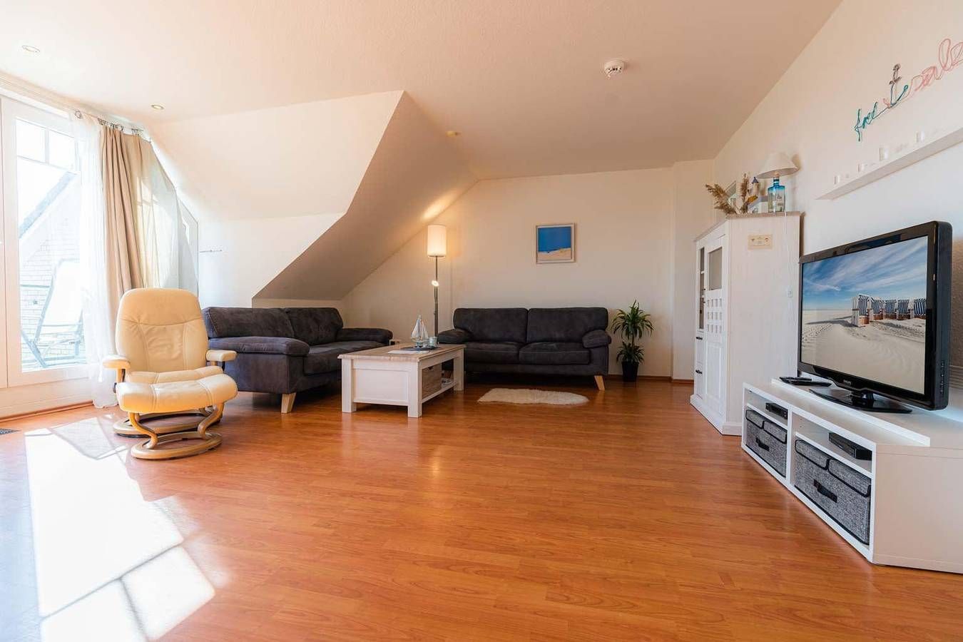 Komfortable Fewo am Strand - mit Meerblick. Hund willkommen. Kostenloses WLAN. Komfortabel. Strandnah. Am Golfplatz. Exklusive 3-Zimmer-Ferienwohnung 'frei & salzig' im Haus 'Nordseeblick' mit ca. 72 m² auf 2 Ebenen (1. OG, 2....