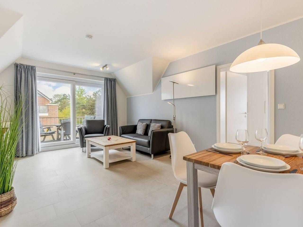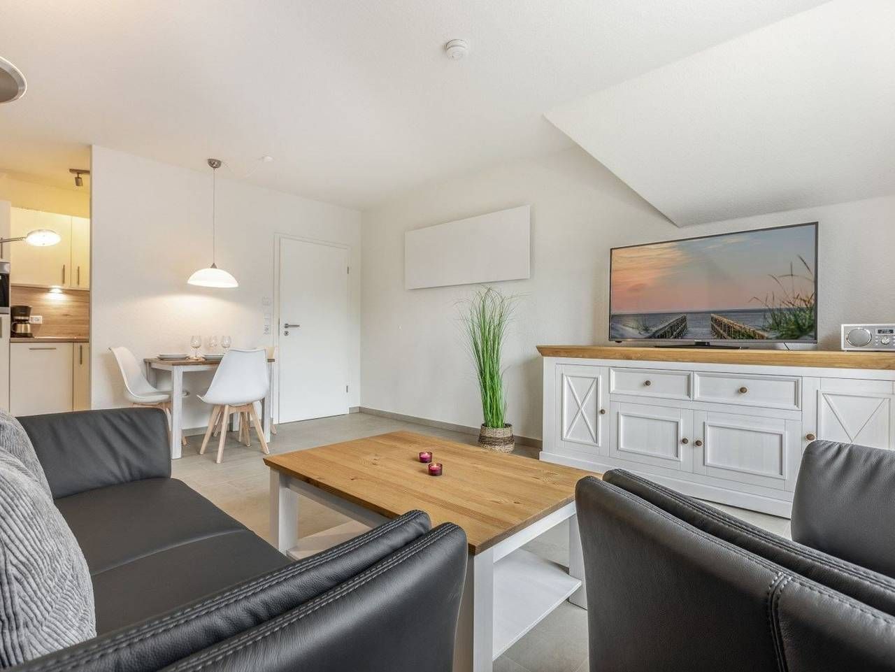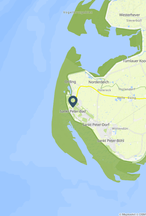 Zentrumsnah. Gemütlich. Mit Südwest-Balkon. Schöne, helle 2 1/2-Zimmer-Ferienwohnung im Haus Dreilanden mit ca. 55 m² auf 1 Ebene (2. OG) für bis zu 3 Personen. In einer der begehrtesten, weil ausgesprochen zentralen Lage im Ortsteil Bad in St. Peter-Ording. Das Kurzentrum beginnt buchstäblich vor der Haustür und somit sind alle Restaurants und Geschäfte, die Dünentherme sowie die Seebrücke zum Strandabschnitt in wenigen Minuten bequem und schnell zu Fuß erreichbar. Ein Spitzendomizil in Bestlage. Wohnzimmer mit Sofa (2er), 1 Sessel, großes SMART-TV (Kabel) und Esstisch mit 3 Stühlen. Direkter Zugang zum möblierten Balkon nach Südwesten. Halboffene Küche mit Kombibackofen mit Mikrowelle, Kühlschrank mit Gefrierfach und Geschirrspüler. 1. Schlafzimmer mit Doppelbett (2x 90x200cm) und Kleiderschrank. 2. Schlafzimmer mit Einzelbett (90x200cm), einem Stuhl und einer Kommode. Zugang durch das 1. Schlafzimmer (befangen). Badezimmer (Duschbad) mit Dusche (ca. 70x85cm), WC, Waschmaschine (Toploader), Heizlüfter, Föhn und Tageslicht. Flur mit Garderobe, Schuhbank und Spiegel. Pkw-Stellplatz und Fahrradabstellmöglichkeit hinter dem Haus. Staubsauger und Wäscheständer vorhanden. Kostenloses WLAN. Die Bettwäsche wird gestellt. Handtücher können dazugebucht werden. Rauchen und Haustiere sind nicht erlaubt. Sie wohnen am Rande des ausgedehnten Kurwaldes in der Nähe des Zentrums von St. Peter-Bad. Das Kurzentrum mit Kurmittelhaus und Dünentherme erreichen in nur 5 Gehminuten, zahlreiche Einkaufsmöglichkeiten und Restaurants sind in der Nähe. Da die Seebrücke ebenfalls nur wenige Gehminuten von der Wohnung entfernt ist, kommen Sie auch zum Strand von St. Peter-Bad bequem zu Fuß. Alle volljährigen Mitreisenden sind kurabgabenpflichtig.