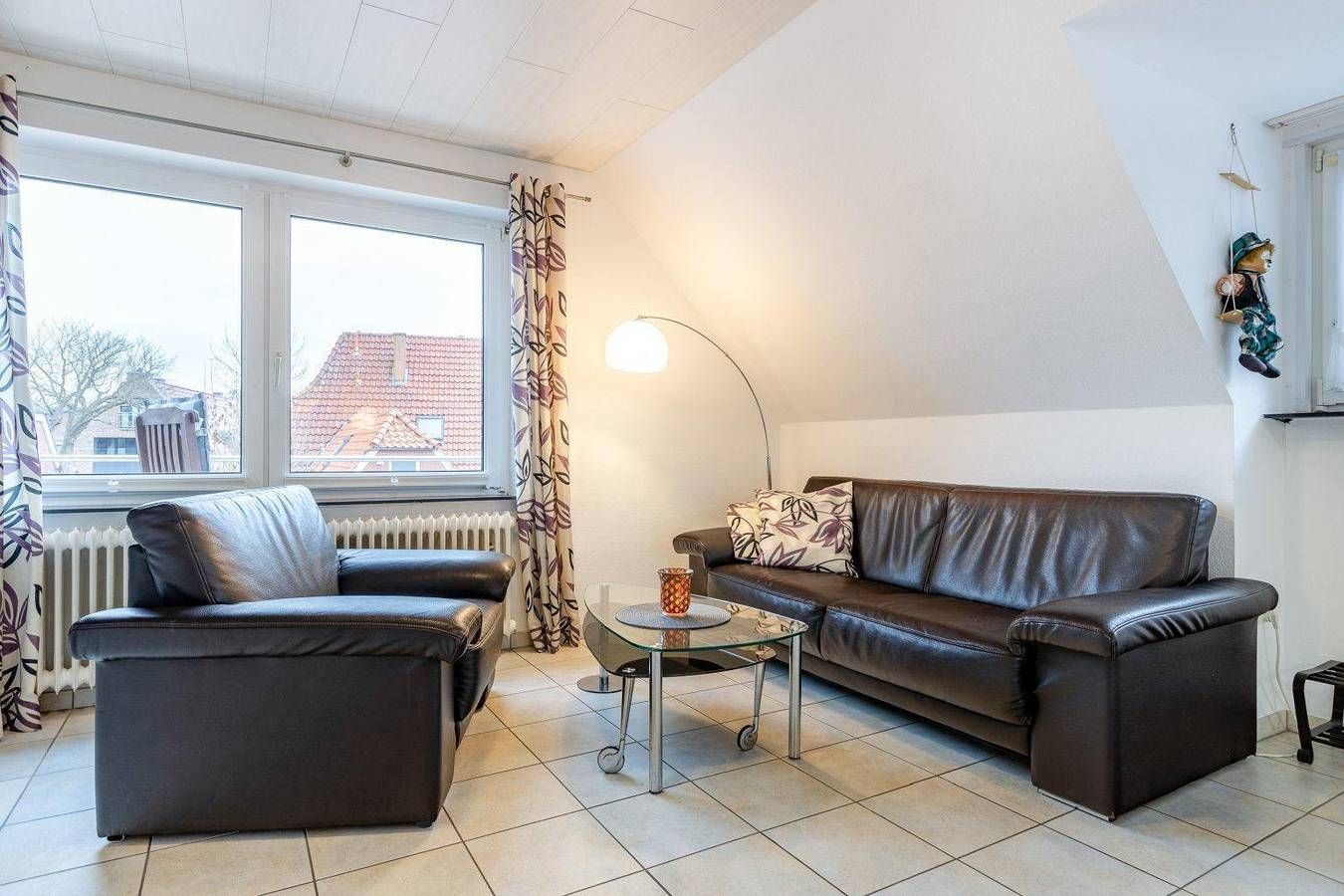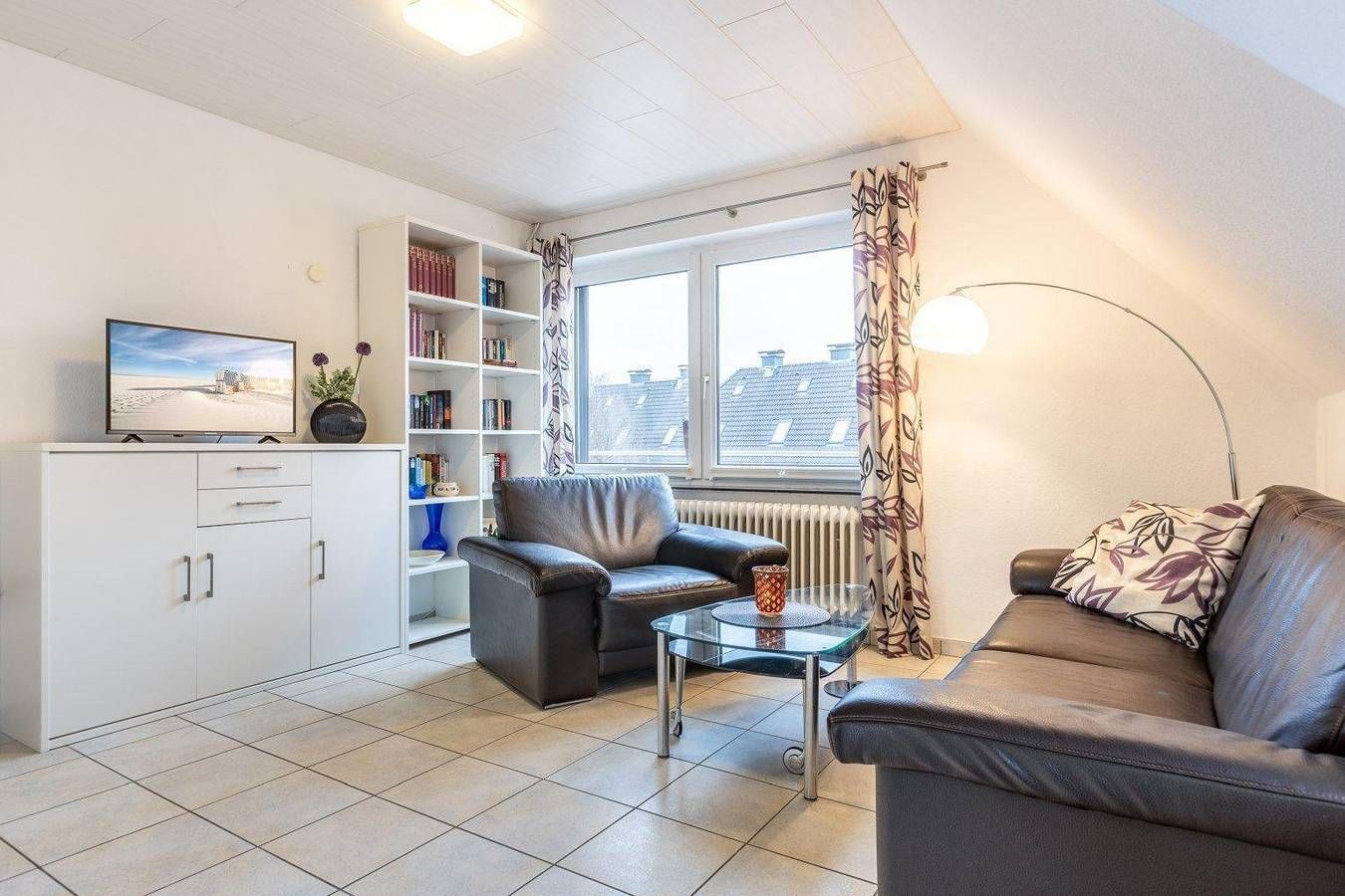 Komfortable 2-Zimmer-Wohnung an der Dorfstraße. Kostenloses WLAN. Zentral. Gemütlich. Komfortabel. Komfortable 2-Zimmer-Ferienwohnung mit ca. 50 m² auf 1 Ebene (1. OG) für bis zu 2 Personen. In absolut zentraler Lage an der Einkaufsstraße im Ortsteil Dorf in St. Peter-Ording. Alle Einkaufsmöglichkeiten und Restaurants befinden sich buchstäblich vor der Haustür. Zum Norseedeich und Strandübergang sind es nur wenige Gehminuten. Ideal für alle, die im Urlaub aktiv sein möchten. Wohnzimmer mit Ledersofa, Ledersessel und kl. TV (Sat). Schlafzimmer mit Doppelbett (2x 90x200cm), Stuhl, Kleiderschrank und direktem Zugang zum möblierten Balkon nach Osten (zur Dorfstraße). Badezimmer (Duschbad) mit Dusche, WC, Handtuchwärmer und Föhn. Im Flur befindet sich eine Küche mit Mikrowelle, Kühlschrank (ohne Gefrierfach) und Doppelkochplatte. Die Garderobe befindet sich in einer Abstellnische des Flurs. Ein Pkw-Stellplatz vor dem Haus gehört zur Wohnung. Fahrräder können in einem Verschlag hinter dem Haus abgestellt werden (nach Verfügbarkeit). Kostenloses WLAN (Glasfaser). Die Bettwäsche wird gestellt. Handtücher können dazugebucht werden. Rauchen und Haustiere sind nicht erlaubt. - Das Haus Dibello liegt zentral im Kern des Ortsteils St. Peter-Dorf an der Einkaufsstraße 'Dorfstraße'. Eine Bäckerei befindet sich direkt nebenan. Genießen Sie alle Annehmlichkeiten des Ortes - wie verschiedenste Einkaufsmöglichkeiten und gute Restaurants - direkt vor der Haustür. Den Seedeich erreichen Sie in wenigen Gehminuten, dahinter beginnt das Wattenmeer mit schönen Fußwegen zum Strand von St. Peter-Dorf. Bitte beachten Sie, dass eine eventuell anfallende Kurabgabe nicht im Gesamtpreis enthalten ist. Diese ist vor Ort zu leisten.