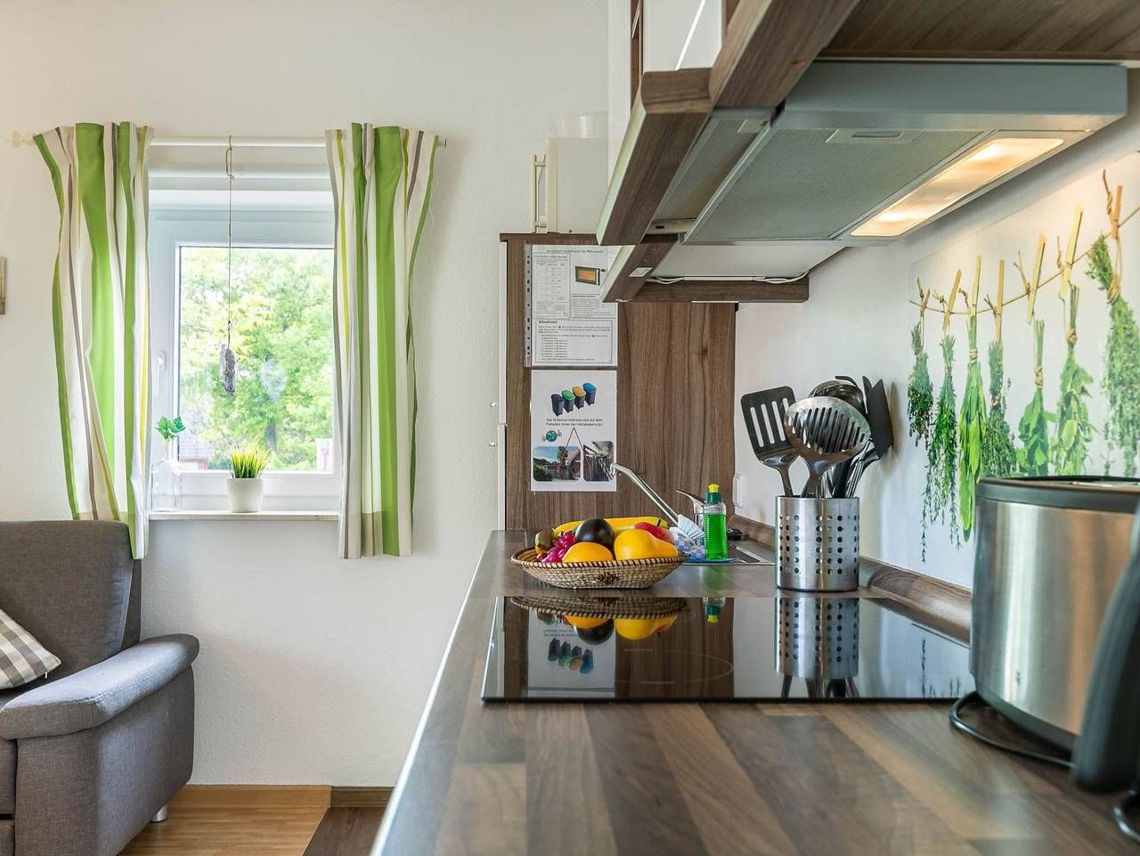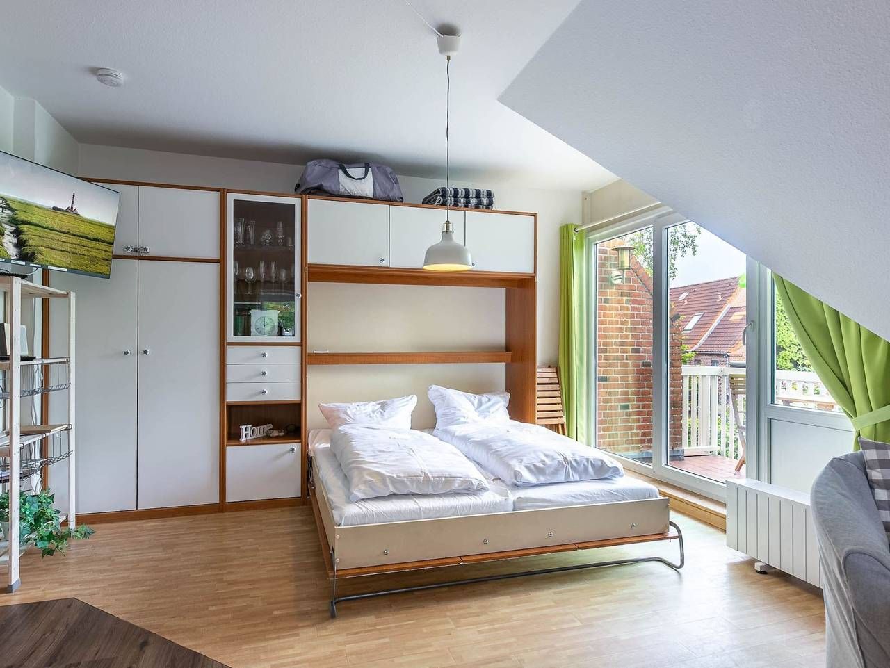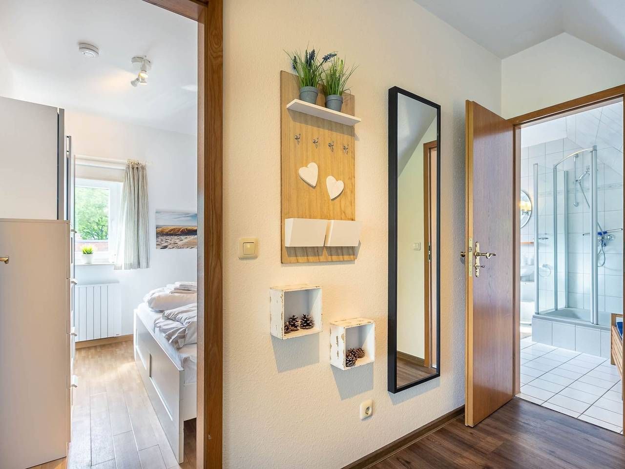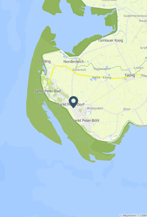 Modern. Elegant. Mit Südbalkon. Geschmackvoll eingerichtete 2-Zimmer-Ferienwohnung im Haus Wanlik Hüs mit ca. 50 qm auf 2 Ebenen (EG, OG) für bis zu 4 Personen. In zentraler Lage im Ortsteil Dorf in Sankt Peter-Ording. Die Wohnung befindet sich auf der straßenabgewandten Seite des Anbaus an das historische Wanlik Hüs, dem ältesten Reetdachhaus weit und breit auf Eiderstedt, in welchem sich heute ein exquisites Restaurant befindet. Alle Geschäfte der Dorfstraße befinden sich in direkter Nachbarschaft. Wohnzimmer mit Ecksofa (bis zu 5 Personen), Schrank-Doppelbett (2x 80x200cm), Sessel, großem TV (Kabel), Stereoanlage und Esstisch mit 4 Stühlen. Direkter Zugang zum möblierten Balkon nach Süden mit Blick auf grüne Gärten und prächtige Reetdachhäuser. Offene Küche mit Backofen, Mikrowelle, Kühlschrank, separatem Gefrierschrank und Geschirrspüler. Schlafzimmer mit Doppelbett (2x 90x200cm), Kleiderschrank und Kommode. Badezimmer (Duschbad) mit Dusche, WC, Tageslicht und Föhn. Flur mit Garderobe und Schuhablage im Eingangsbereich im Erdgeschoss. Pkw-Stellplatz auf dem Grundstück. Überdachte Fahrradabstellmöglichkeiten vorhanden. Kostenloses WLAN (Glasfaser). Die Bettwäsche wird gestellt. Handtücher können dazugebucht werden. Rauchen und Haustiere sind nicht erlaubt. Der Nordseedeich ist nur 5 Gehminuten entfernt, Einkaufsmöglichkeiten und Restaurants finden Sie in der Nachbarschaft der Wohnanlage. Sie können den Strand von St. Peter-Dorf gut zu Fuß durch die Dünen und das Wattenmeer erreichen - oder Sie nehmen den Ortsbus, den Sie mit Kurkarte kostenlos nutzen können. Alle volljährigen Mitreisenden sind kurabgabenpflichtig.