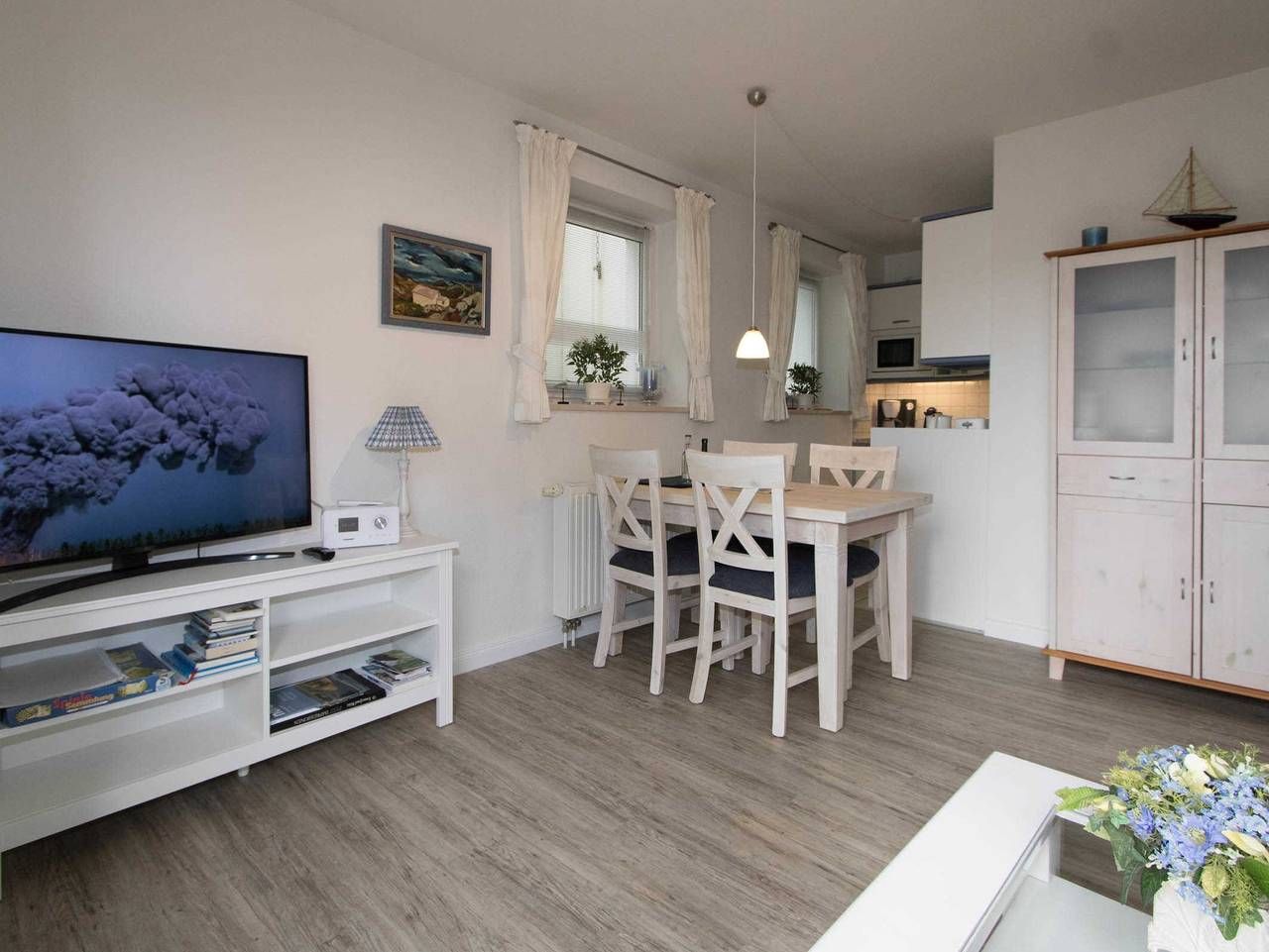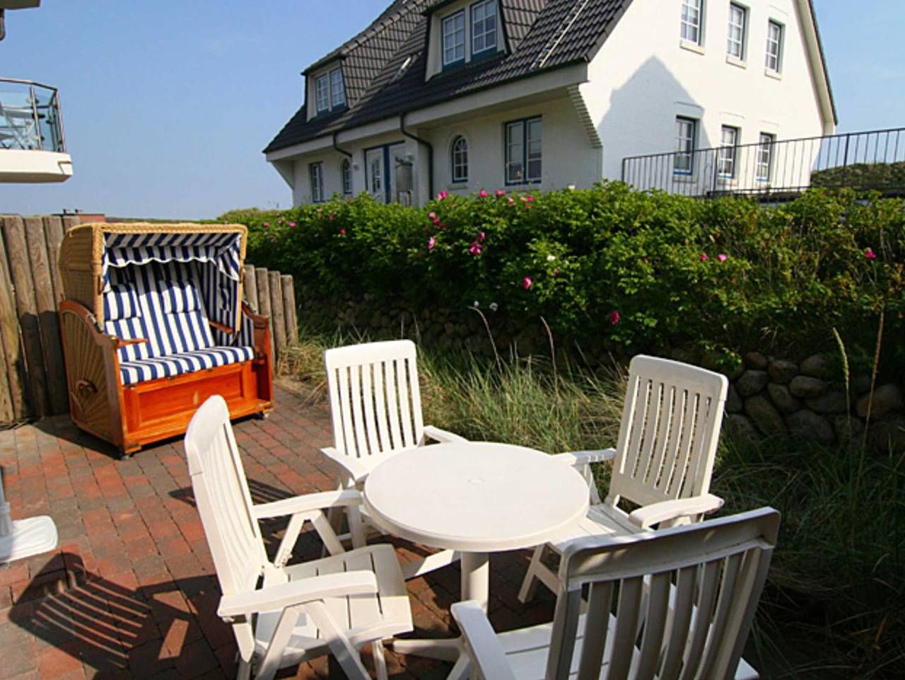 Die in 2002 gebaute Anlage befindet sich direkt am Weststrand umgeben von der Dünenlandschaft Hörnums. Absolut ruhig am Ende einer Sackgasse gelegen, haben Sie es nur wenige Meter zum Strand. Sehr liebevoll und persönlich eingerichtete Ferienwohnung. Die großzügige, gepflegte Terrasse nach Süden ist mit einem Strandkorb und Gartenmöbeln ausgestattet. Umgeben von Dünengras und einem Friesenwall können Sie bei morgendlicher Sonne Ihr Frühstück geniessen. Urlaub, Ruhe und Erholung in absolut strandnaher Umgebung ist hier gegeben. Diese sehr gepflegte Anlage ist mitten in den Dünen sehr ruhig gelegen. Der Weststrand (Nordsee) ist in wenigen Minuten zu Fuss zu erreichen. Die örtlichen Einkaufsmöglichkeiten sind ca. 15-20 Gehminuten entfernt. Am Besten Sie leihen sich ein Fahrrad und haben somit den morgendlichen Frühsport schon erledigt. Die Wohnung liegt im Gartengeschoss und ist aufgeteilt in einen gemütlichen Wohn-/Essbereich mit komplett ausgestatteter Küchenzeile, einen Schlafraum mit Doppelbett und ein Duschbad. Im zweiten Schlafraum kann auch eine Schlafcouch für die 3. oder 4. Person ausgezogen werden.