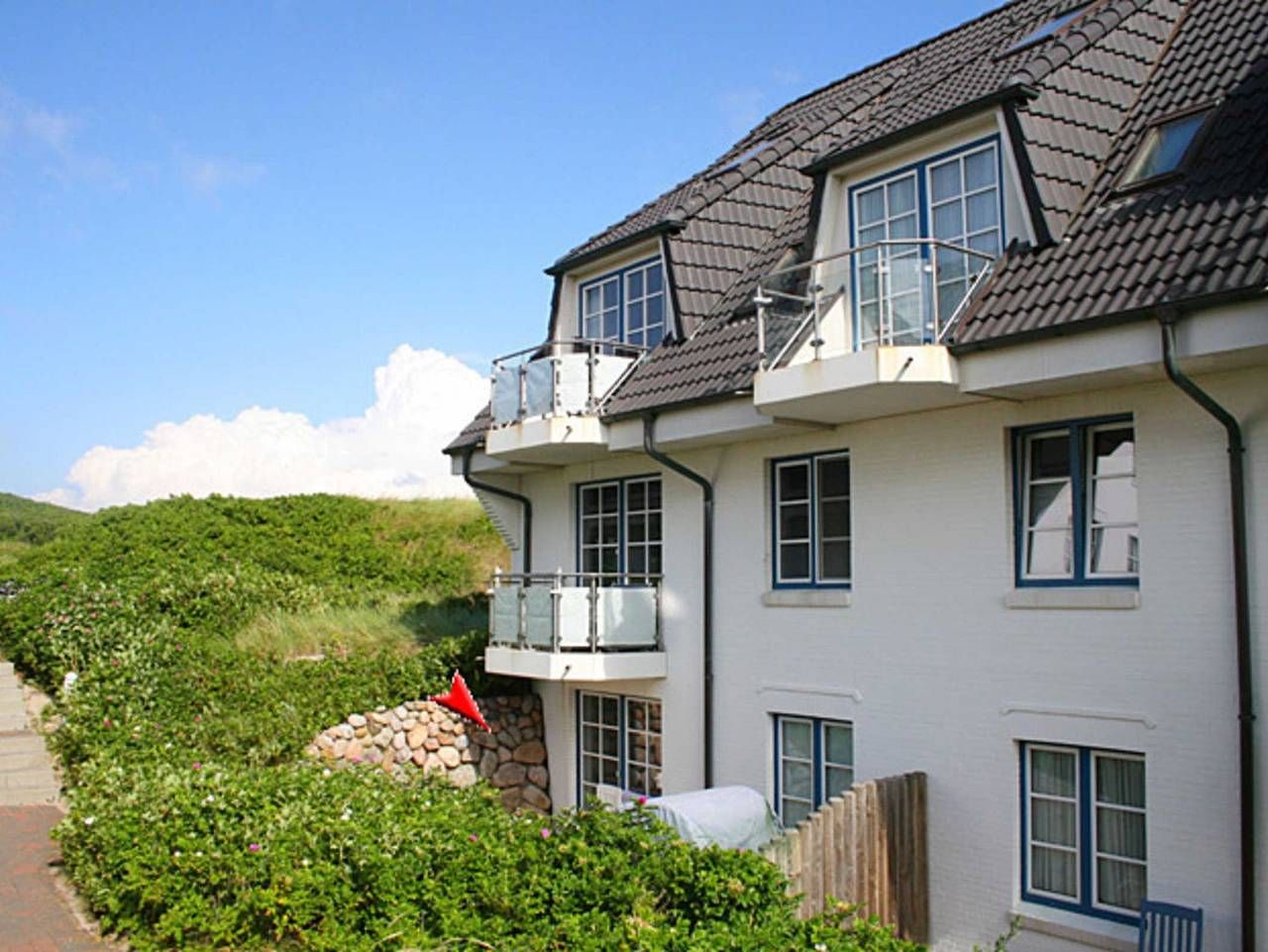Die in 2002 gebaute Anlage befindet sich direkt am Weststrand umgeben von der Dünenlandschaft Hörnums. Absolut ruhig am Ende einer Sackgasse gelegen, haben Sie es nur wenige Meter zum Strand. Sehr liebevoll und persönlich...