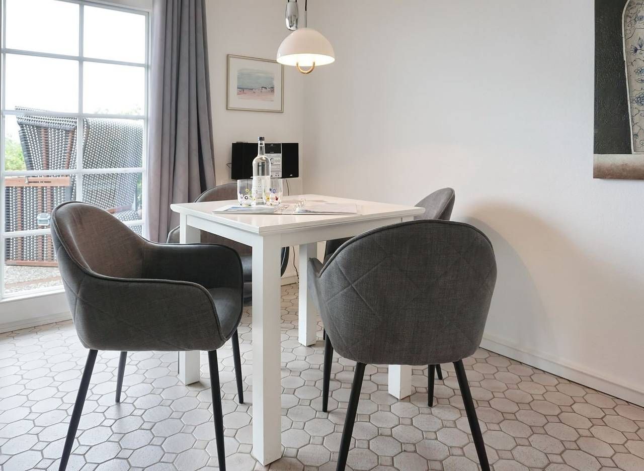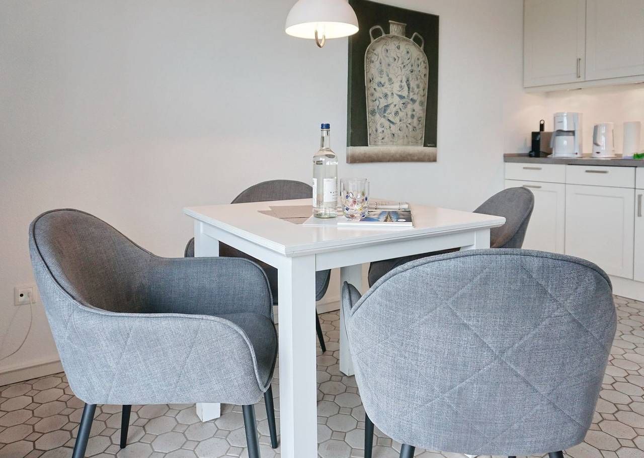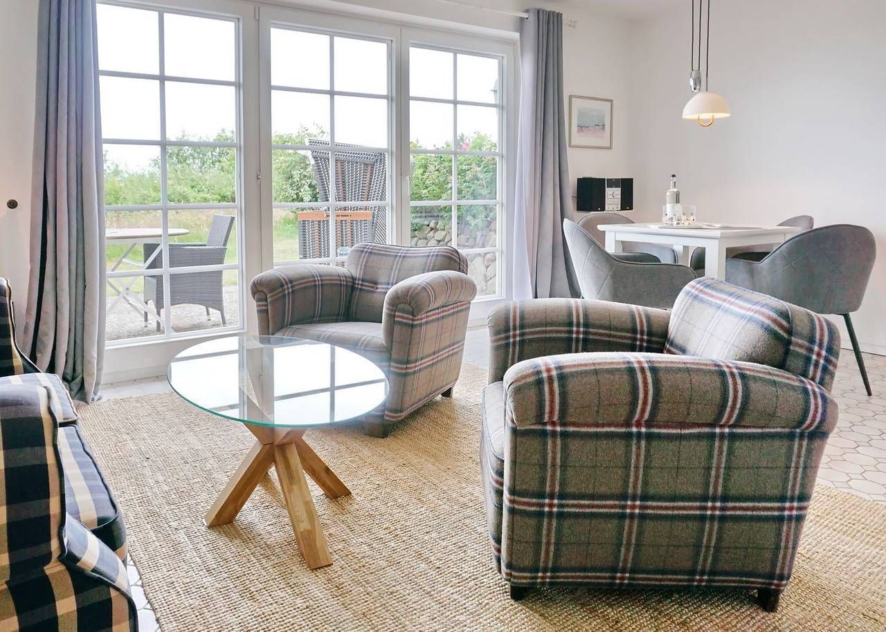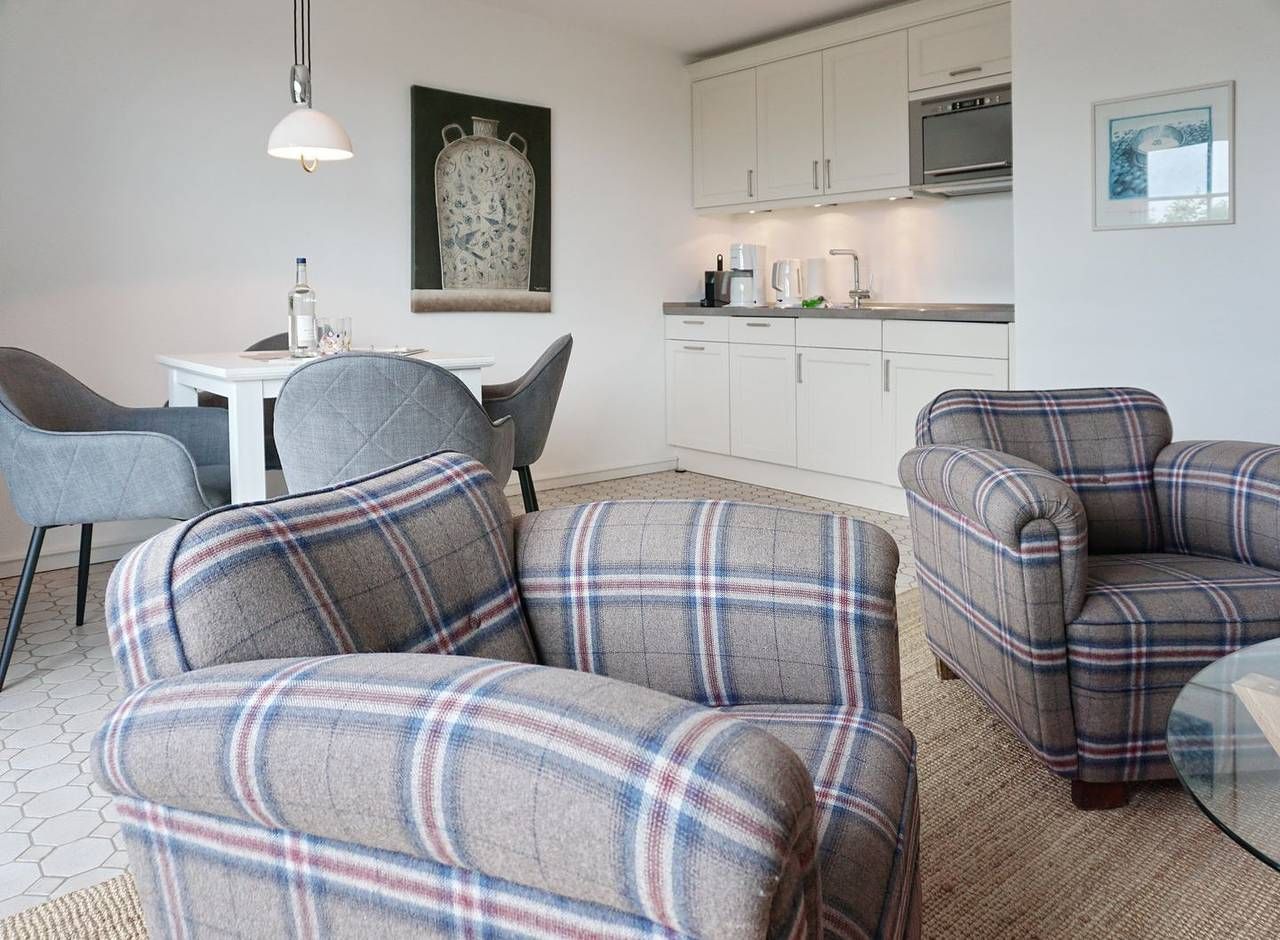 Das hartgedeckte, gepflegte Haus mit sechs Einheiten liegt mit freiem Blick über die Heide zum Wattenmeer bis nach Keitum. Die Einrichtung der Ferienwohnung ist hell und gemütlich, ein Pkw-Stellplatz ist am Haus. An Komfort finden Sie Flat-TV, W-LAN, Radio, Cerankochfeld, Geschirrspüler und Fußbodenheizung. Die Nutzung von Waschmaschinen und Trockner ist über Münzen im Keller des Hauses möglich. Erdgeschoss Flur: kleiner Flur mit Garderobe Wohn-/Essbereich: geräumiges Wohnzimmer mit Couch und Sessel als Sitzgruppe, Essbereich: wunderschöner Blick zum Wattenmeer bis nach Keitum, Essecke mit rundem Esstisch und vier Stühlen Terrasse: mit Strandkorb zum Süden ( ca. April - Oktober ) Küche: offene Küchenzeile im Wohnraum mit Induktionsfeld u. Geschirrspüler Schlafen: Schlafraum mit 2 zusammen stehenden Einzelbetten und eingebauten Kleiderschrank Bad: Duschbad / WC Abstellraum: kleiner Raum unter der Treppe für Koffer etc.