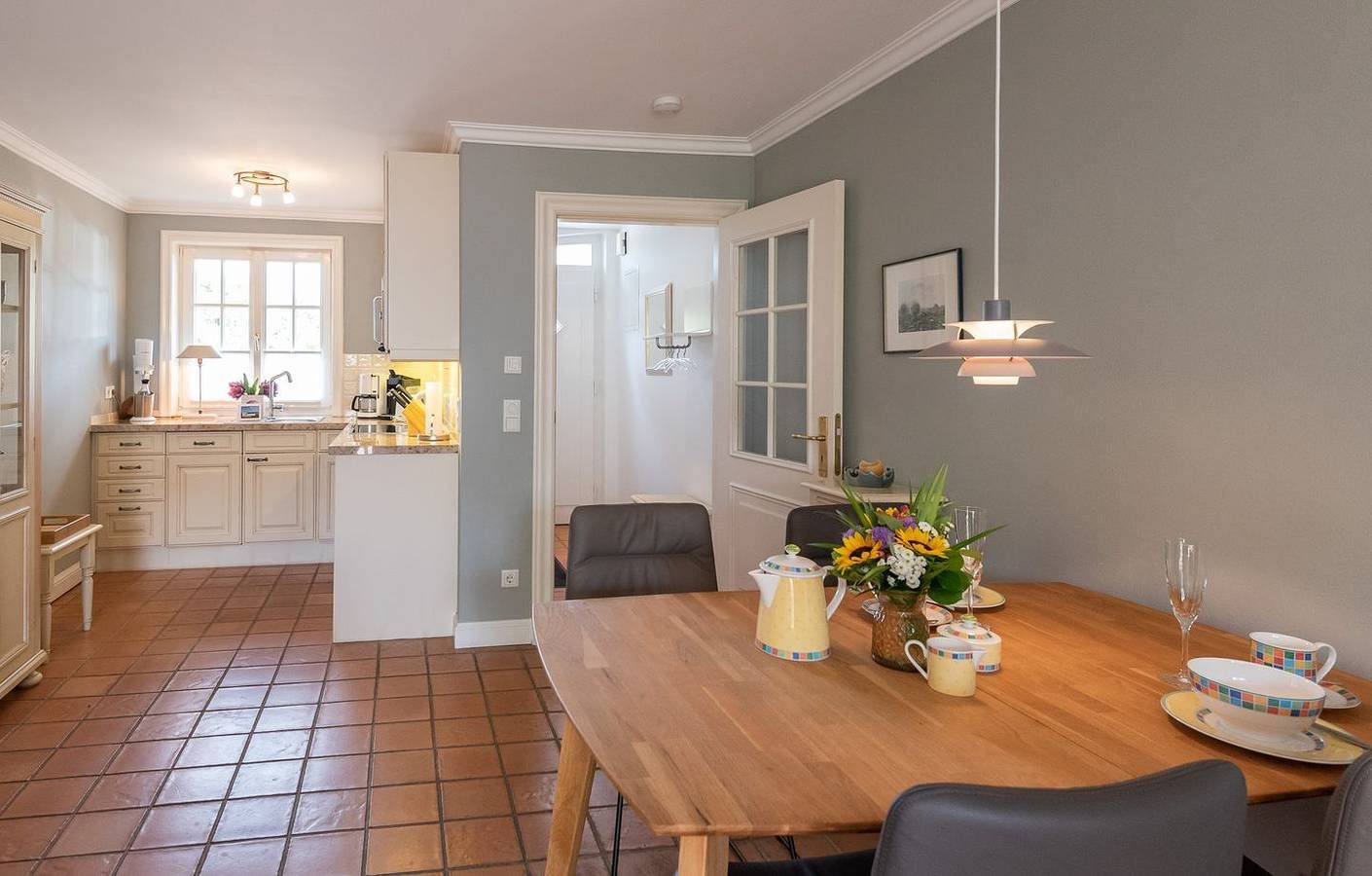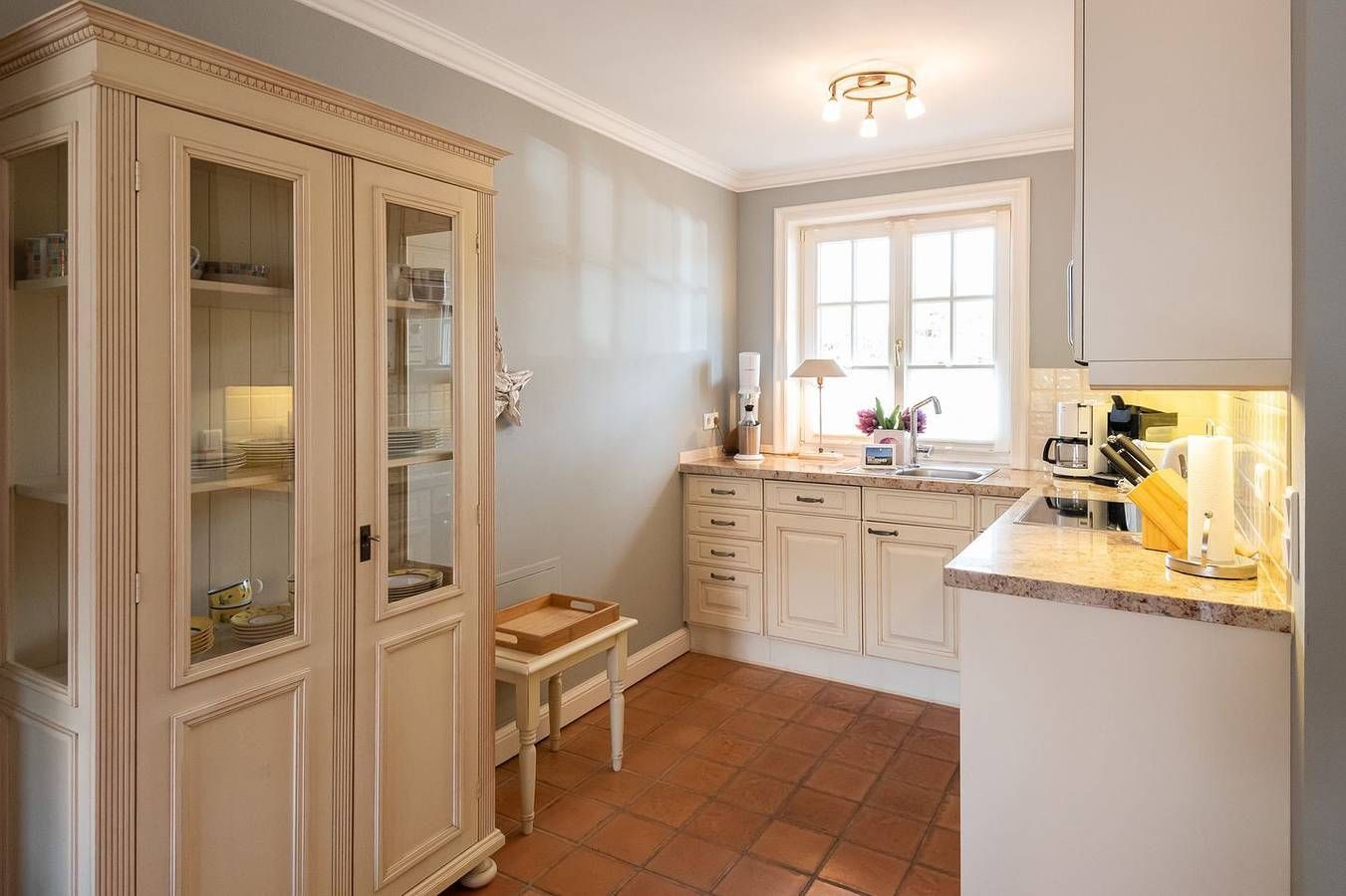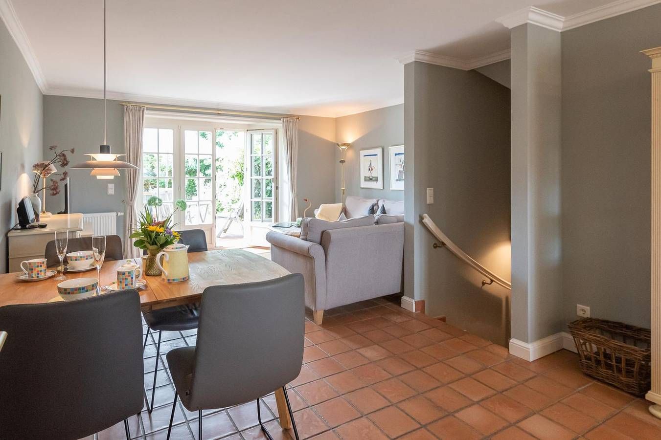 Zauberhafte 2-Zimmerwohnung mit ca. 62 m² Wohnfläche, für max. 2 Personen Dieses Urlaubsdomizil über zwei Ebenen liegt in einem wunderschönen Landhaus auf einem eingewachsenen Grundstück. Im lichtdurchfluteten Erdgeschoss befindet sich: Wohn-/Koch-/Essbereich: Die moderne Landhausküche bietet Ihnen jeglichen Komfort, genau wie die bequeme Essgruppe. Die schöne Wohnlandschaft mit modernen Möbeln und TV laden zum Verweilen ein. Direkt vom Wohnzimmer erreichen Sie die großflächige Terrasse, die mit einem Strandkorb und hochwertigen Gartenmöbeln ausgestattet wurde. Eine Treppe führt in das Untergeschoss: Schlafzimmer: Schlafzimmer mit Doppelbett, Tischlereinbauschränken und Fenster. Badezimmer: Modernes, hell gestaltetes Bad mit Badewanne und Duschfunktion, Handtuchtrockner und WC. Lage: Mit dem Fahrrad oder zu Fuß erreichen Sie in Kürze Feinkost Meyer, einen Bäcker sowie einige Restaurants. Auch der traumhaft breite Sandstrand ist nicht weit entfernt. Haustiere: 1 mittelgroßer Hund bis 50 cm Rückenhöhe erlaubt. (kostenpflichtig) Nichtraucherwohnung Parkplatz: Ja