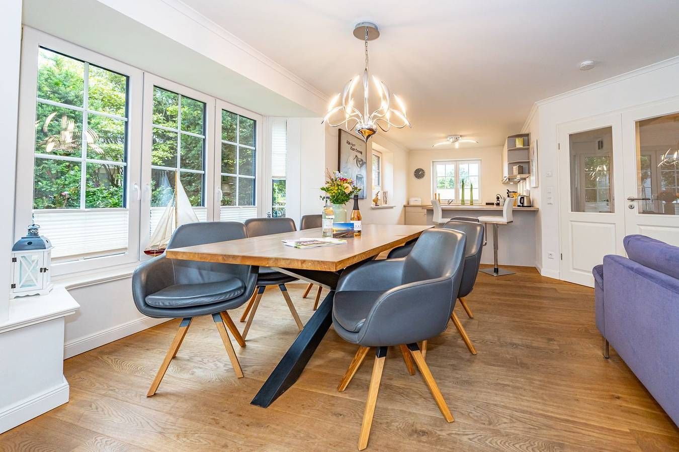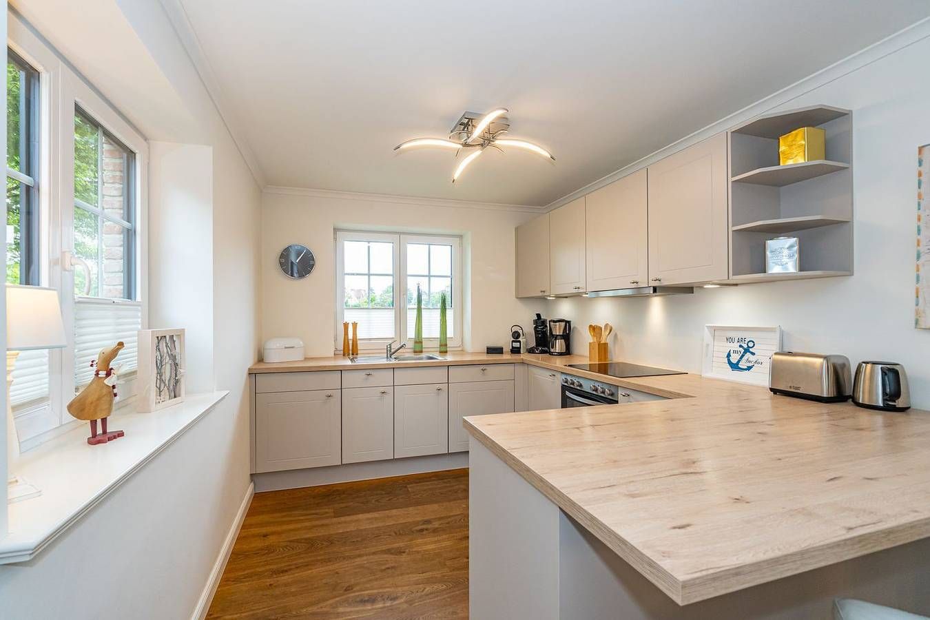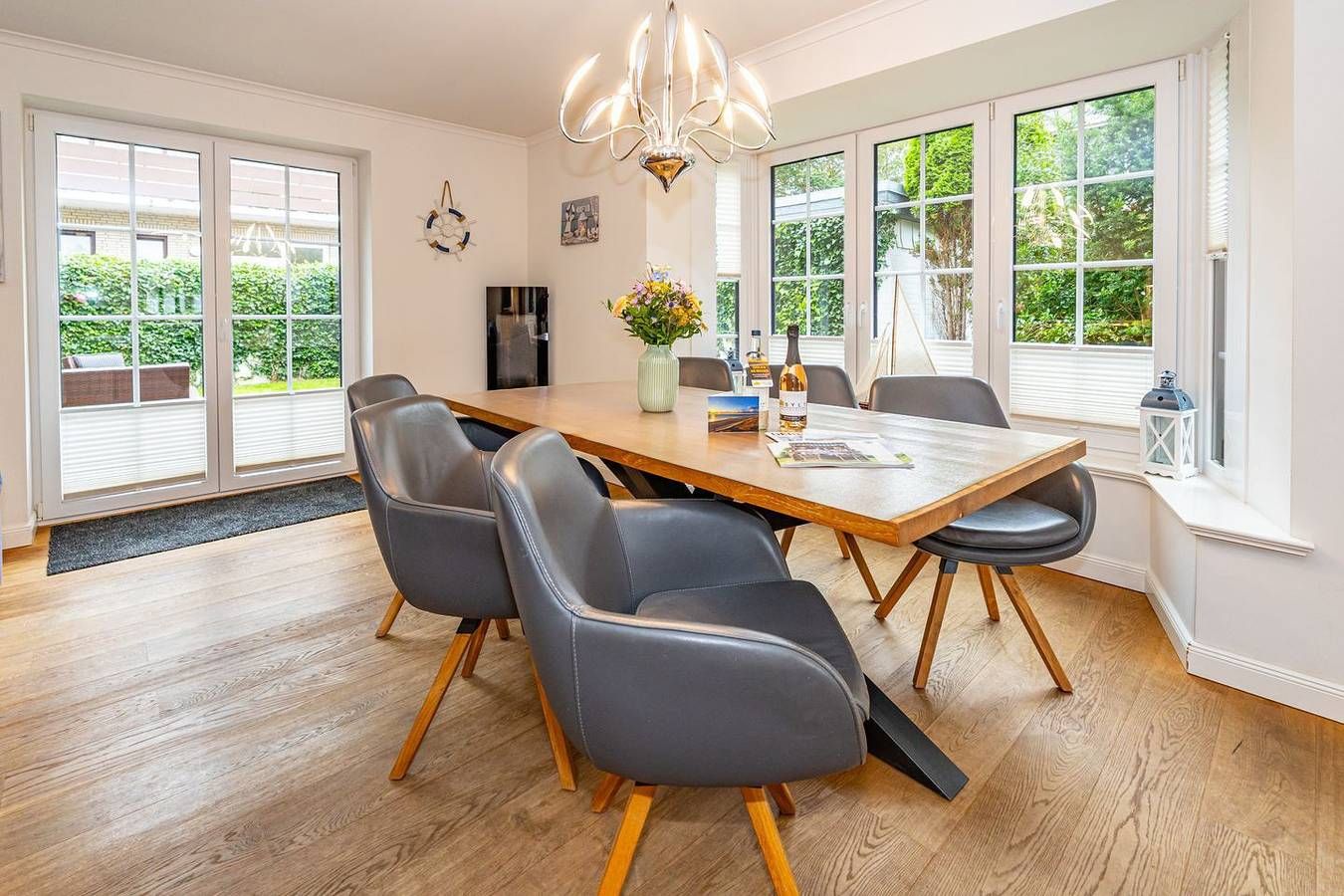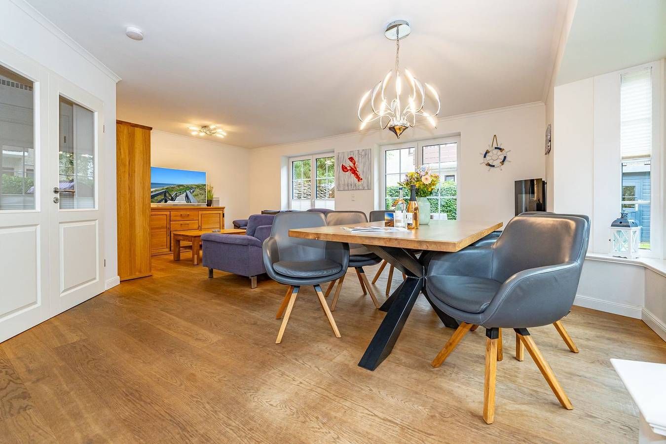 Durch die zentrale Lage der "Gode Stuv" haben Sie alle Möglichkeiten, die Insel Sylt zu erkunden. Schnell sind Sie auch fußläufig in der Westerländer Innenstadt und natürlich am wunderschönen Sandstrand. Eine gemütliche Sofalandschaft mit Elektrokamin und Blick in Ihren eigenen Garten mit Südwestterrasse, sind nur einige Höhepunkte der "Gode Stuv". Den Garten werden Sie schnell lieben lernen: Lädt Sie doch die eigene Blockhaussauna mitten im Garten zum entspannen ein. Genießen Sie auch den Strandkorb (saisonal) und die hochwertigen Lounge-Möbel. Die helle, offene Küche mit coolen Barhockern, lädt genauso wie der große Esstisch zu lauschigen Nachmittagen mit der ganzen Familie oder Freunden ein. Im Obergeschoss finden Sie zwei gleichgroße Schlafzimmer mit Boxspringbetten (180m x 200 cm), sowie das Badezimmer mit ebenerdiger Dusche. Im Dachgeschoss befindet sich das dritte Schlafzimmer mit einem Boxspringbett (160 x 200 cm). Alle Schlafzimmer verfügen über ein TV-Gerät. Auch eine Gästetoilette mit ebenerdiger Dusche, sowie eine Waschmaschine im Erdgeschoss, gehört mit zur Ausstattung. Ein Stellplatz, für Ihr Auto ist selbstverständlich direkt am Ferienhaus für Sie reserviert. Haustiere sind nach vorheriger Anmeldung und gegen Gebühr erlaubt (10,- € pro Tier/Tag). Die Betten sind immer bezogen und zwei Duschtücher, zwei Handtücher, eine Duschmatte, ein Küchentuch pro Person vorhanden. Jedes weitere Wäschepaket können Sie bei uns im Büro leihen für 30,- € pro Stück auch ist es möglich einzelne Teile wie Handtücher oder Kopfkissen zu leihen. Das Ferienhaus nimmt am Partner Programm Sylt Go Mobility teil, das heißt Sie erhalten die Busfahrkarten gratis dazu. Sie können damit während Ihres Aufenthaltes über die gesamte Insel fahren.