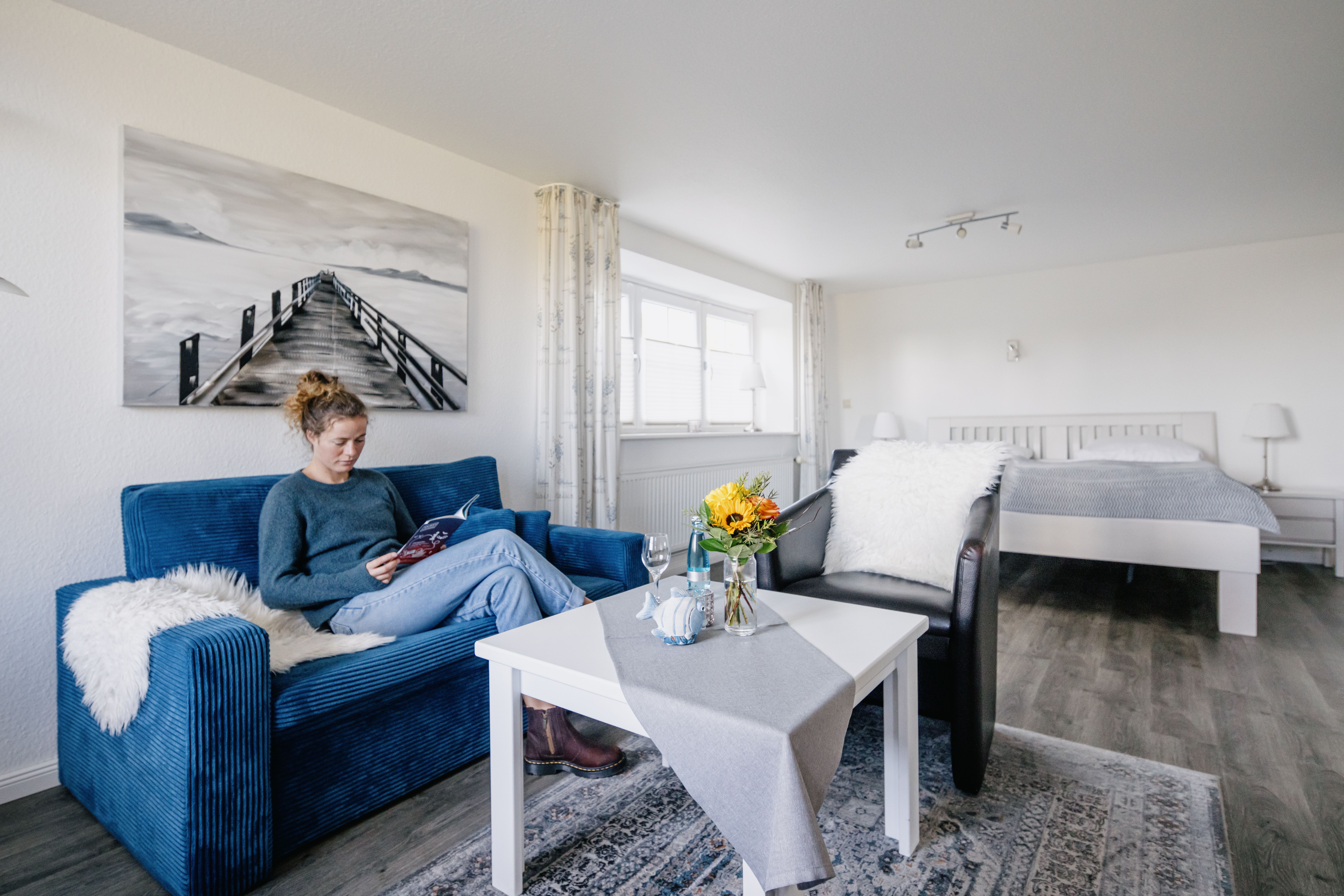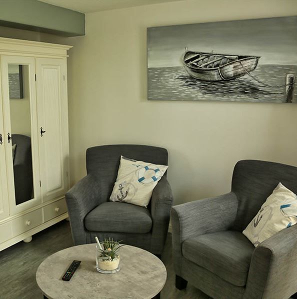 Die Zimmer sind hell und freundlich eingerichtet. Für Familien stehen in der Nähe Spielmöglichkeiten für Kinder bereit, zudem lädt eine große Liegewiese direkt am Deich zum Verweilen ein. Hunde sind auf Anfrage willkommen.